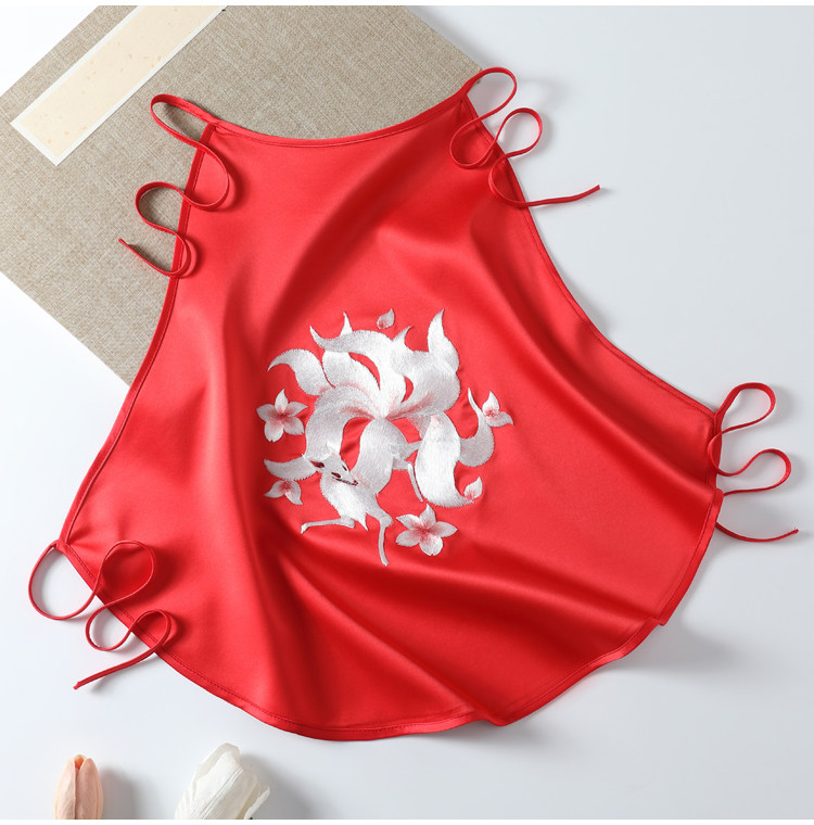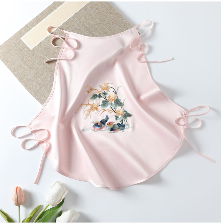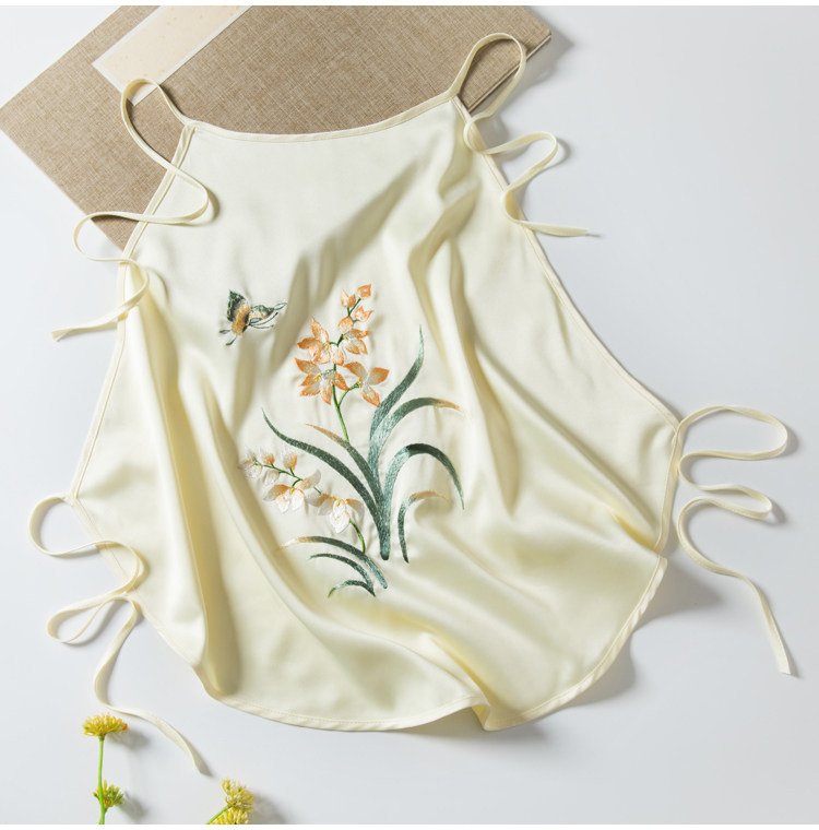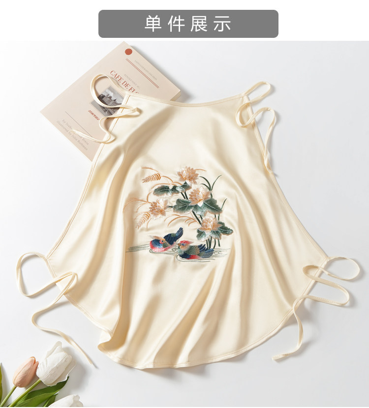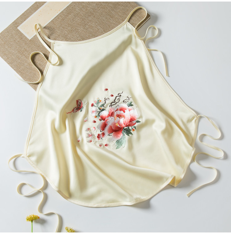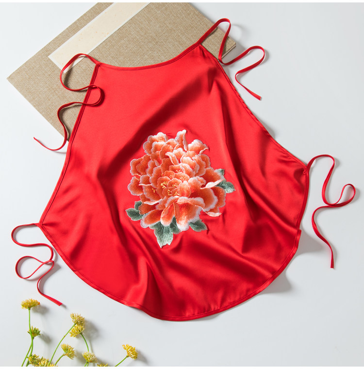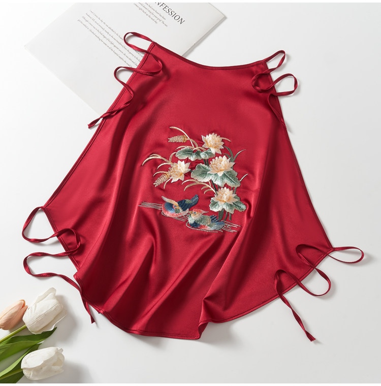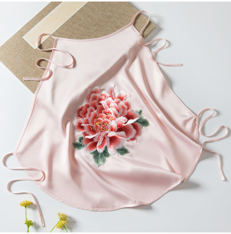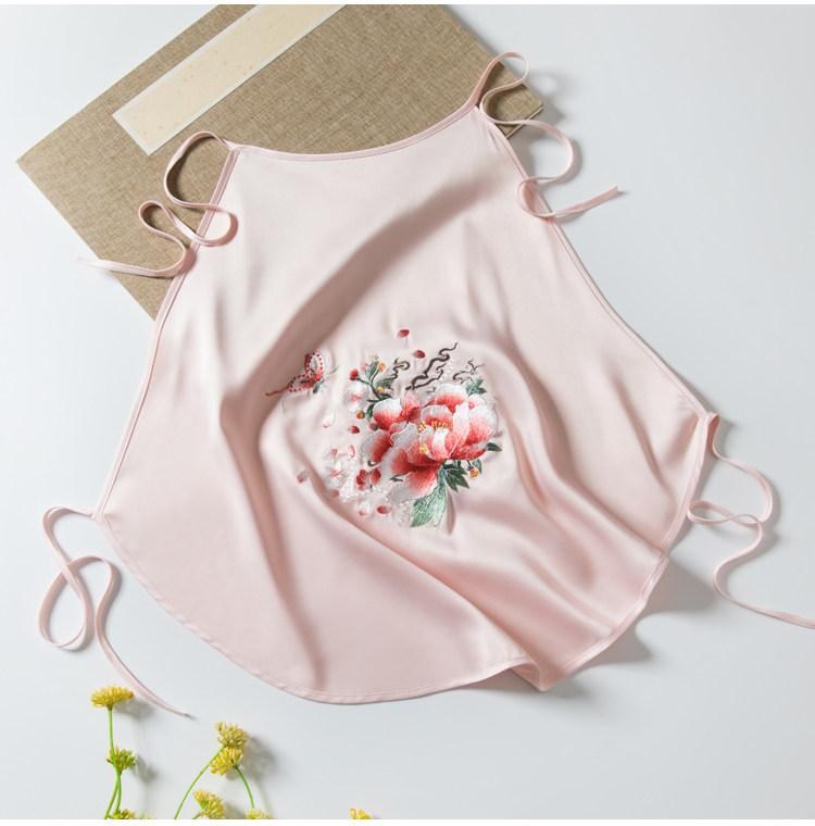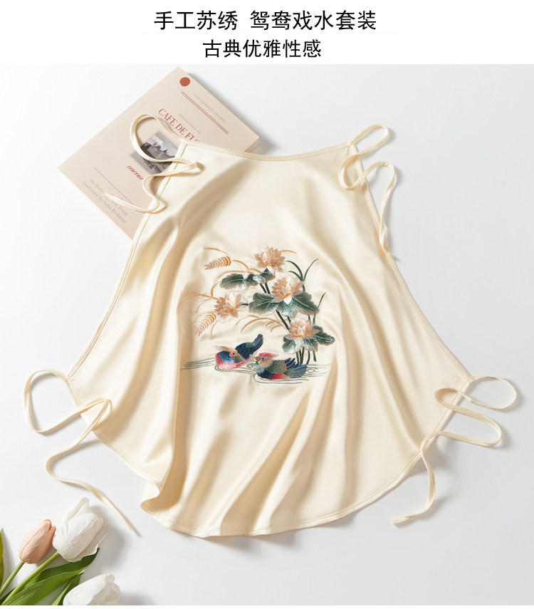 Suzhou Embroidery Sexy Bellyband Women's Embroidered Camisole Sleepwear Loungewear Handmade Double-Layer Imitation Silk Lingerie Women's Set