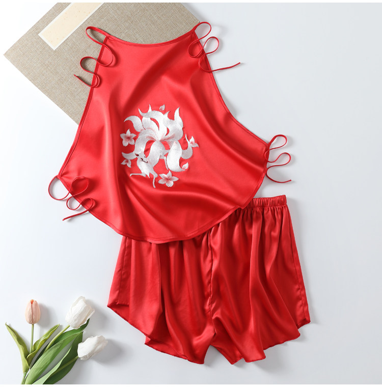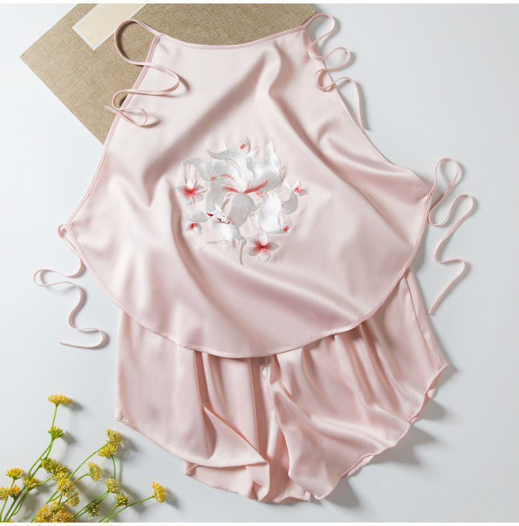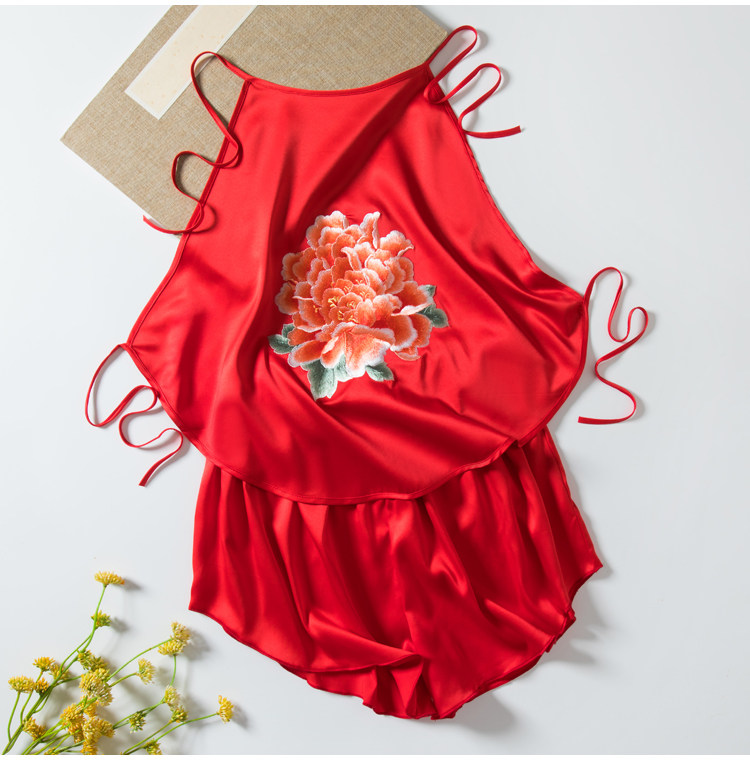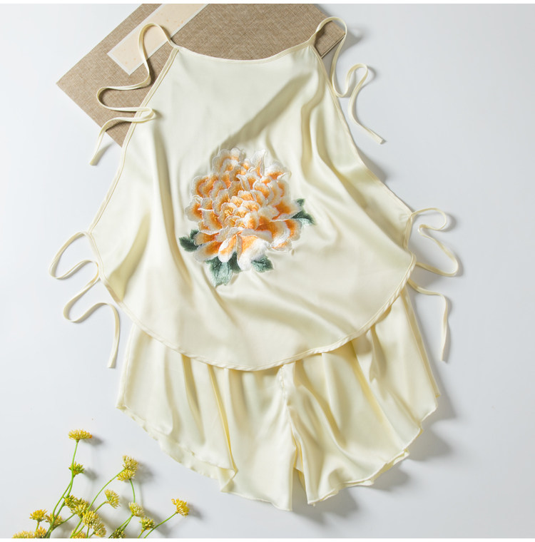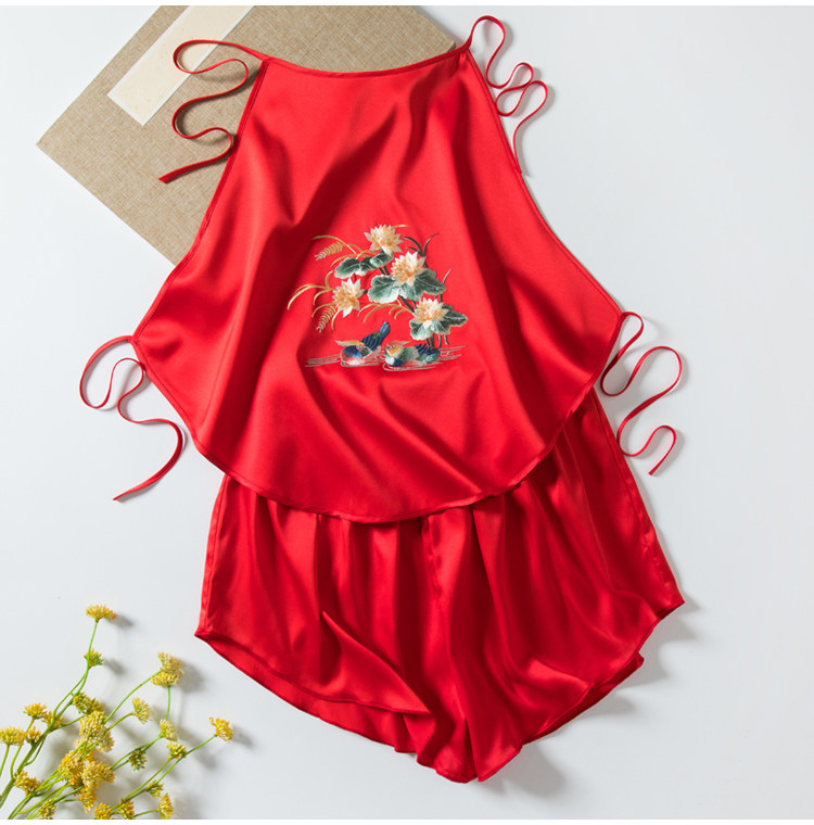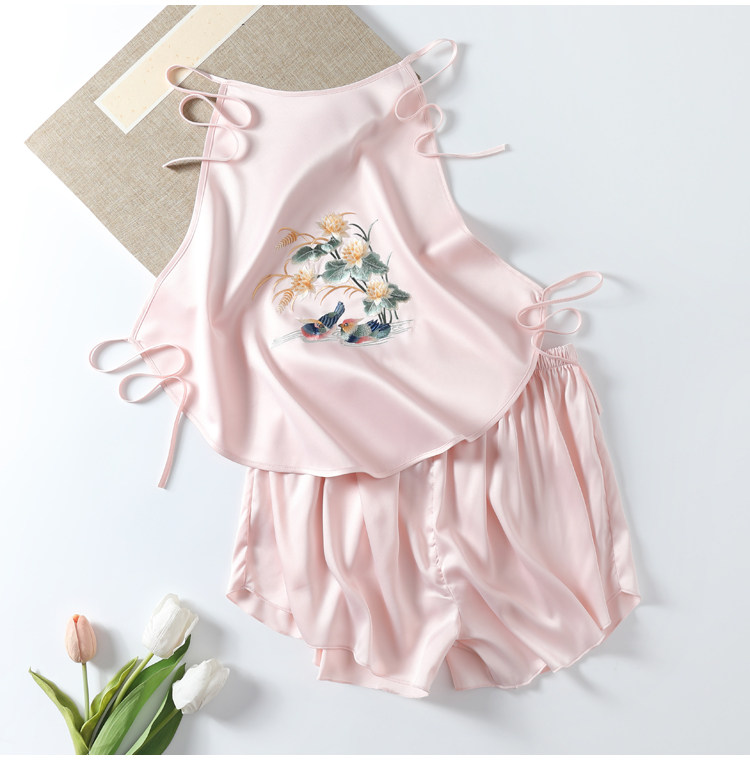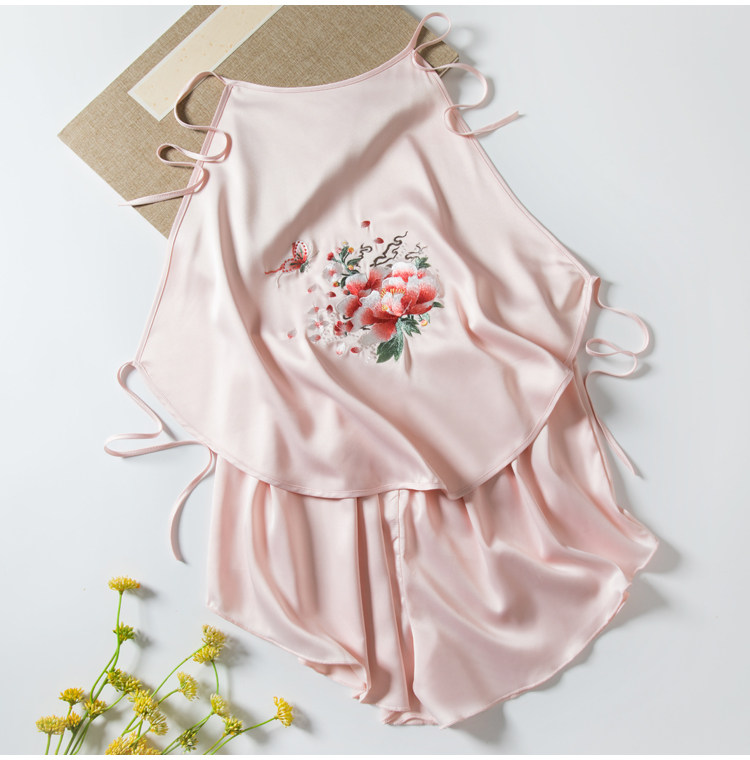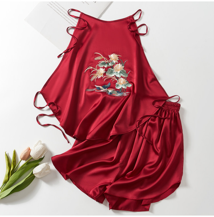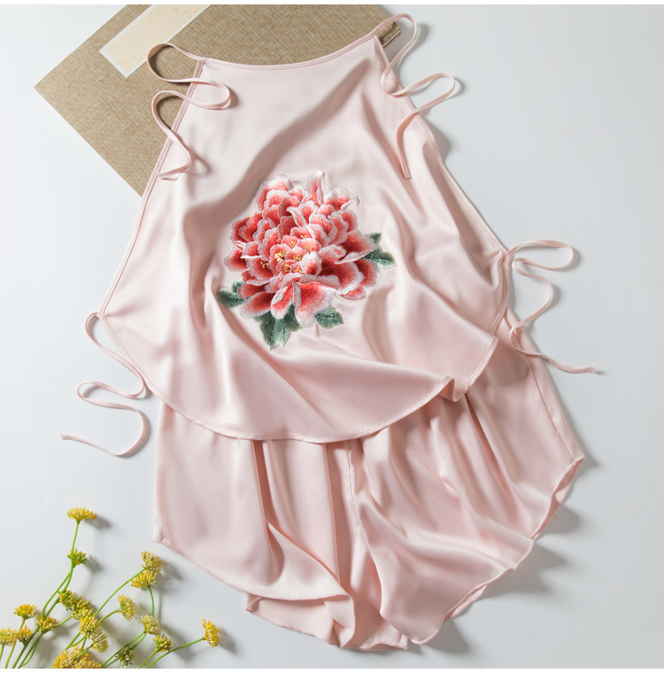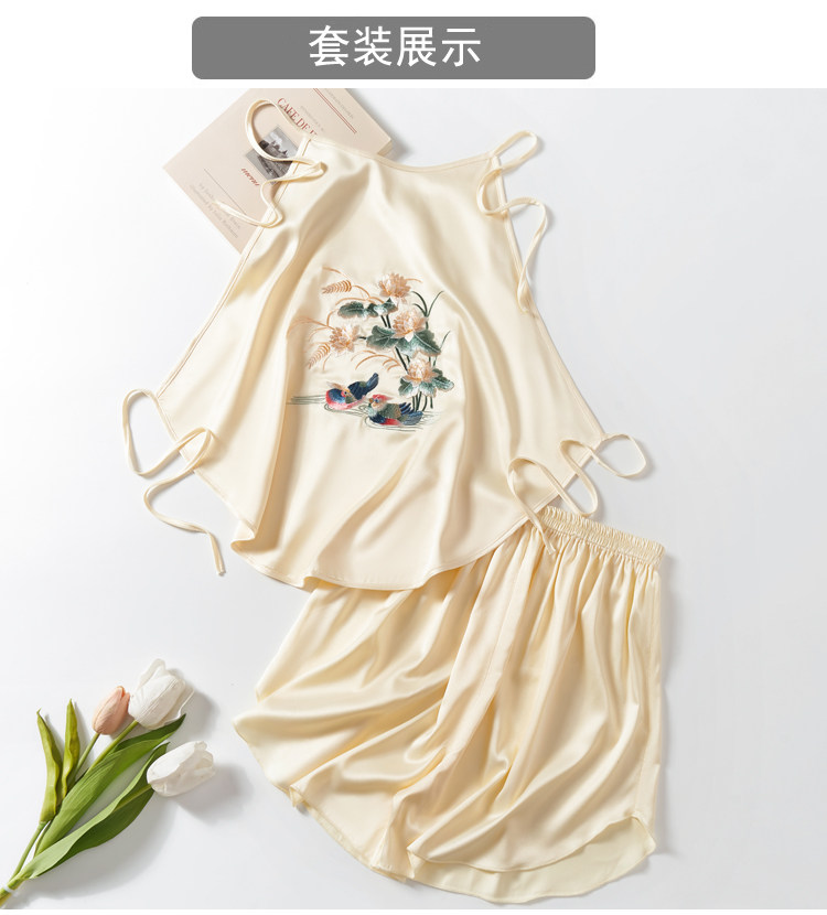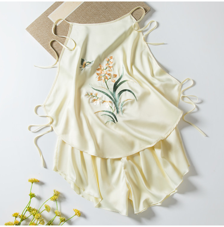 Suzhou Embroidery Sexy Bellyband Women's Embroidered Camisole Sleepwear Loungewear Handmade Double-Layer Imitation Silk Lingerie Women's Set