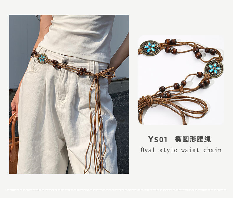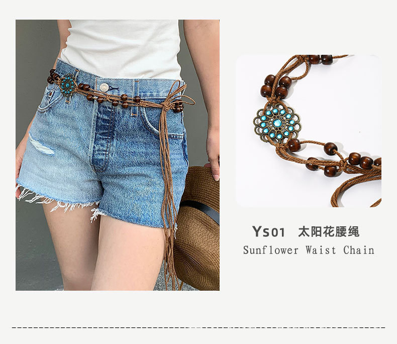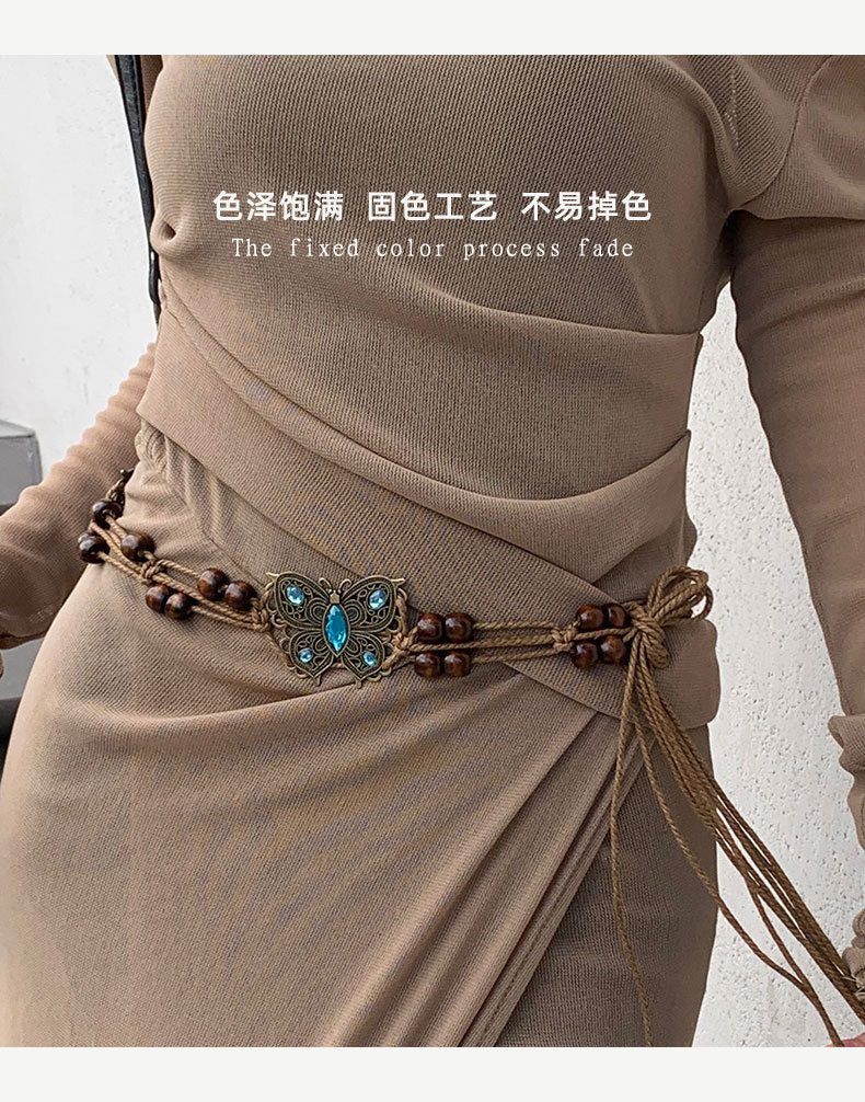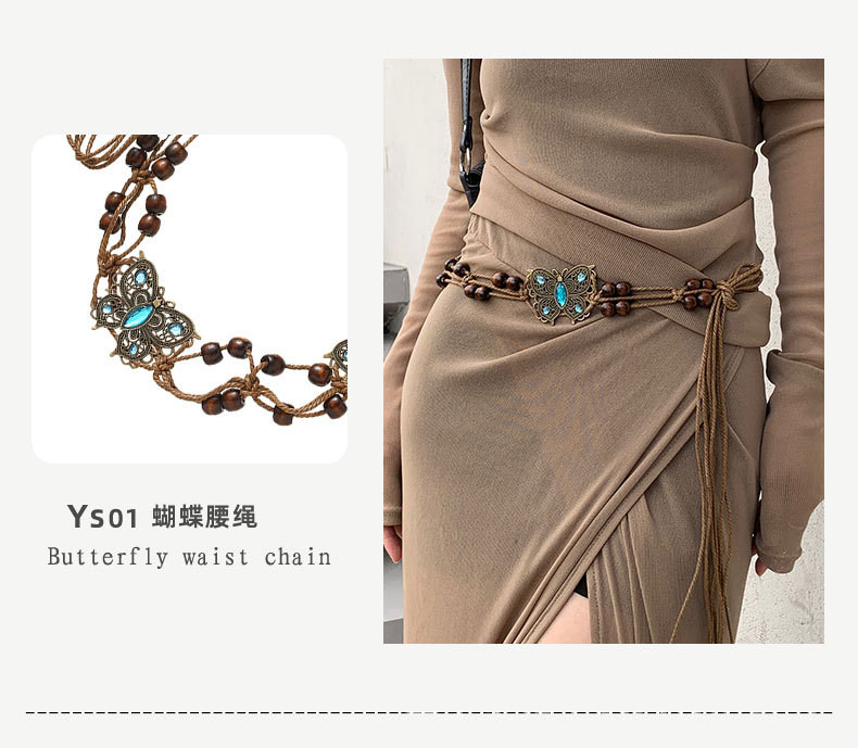 Cordón de cintura de mariposa trenzado de estilo étnico bohemio, con accesorios, cadena decorativa, cinturón, vestido, cintura