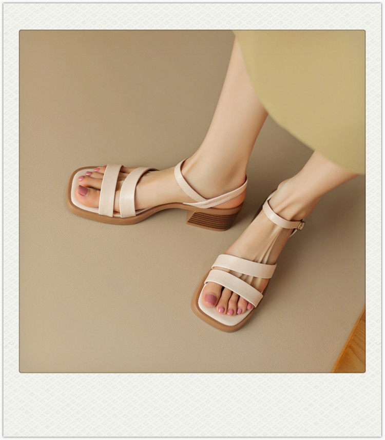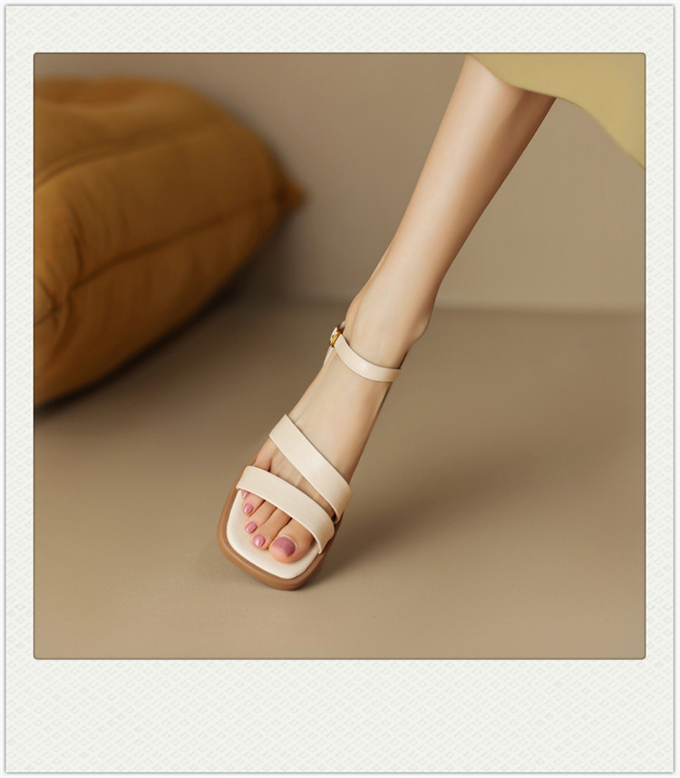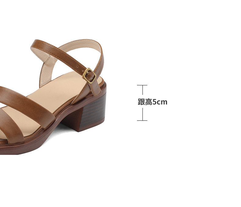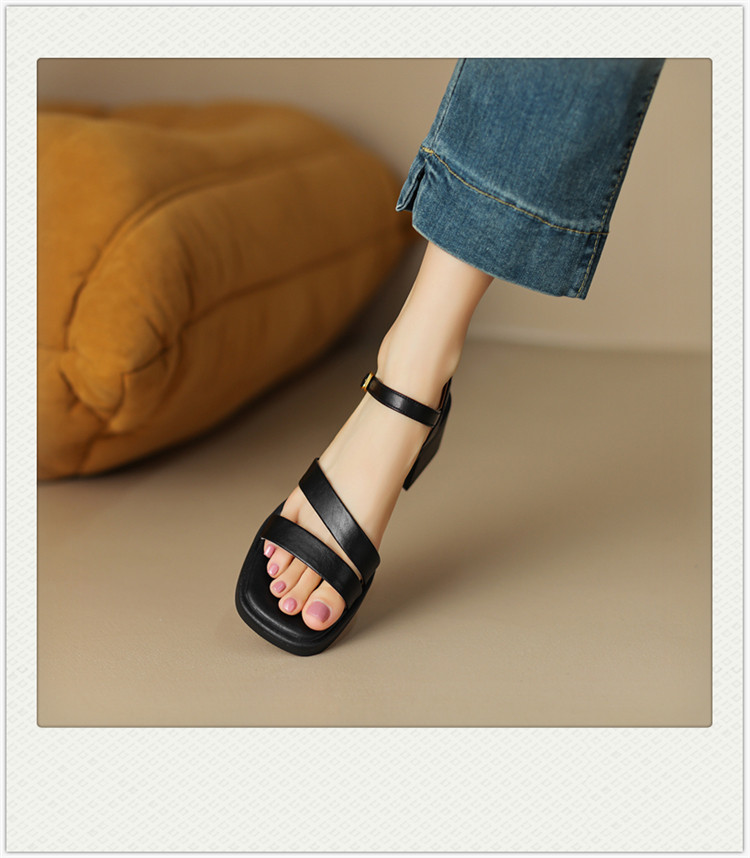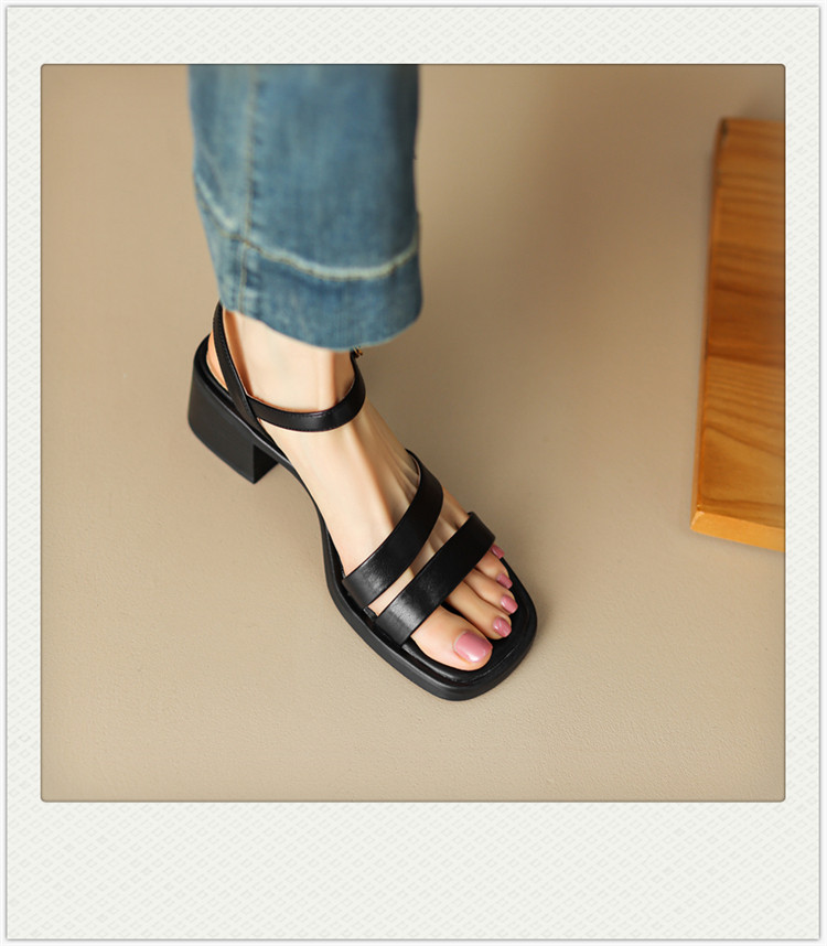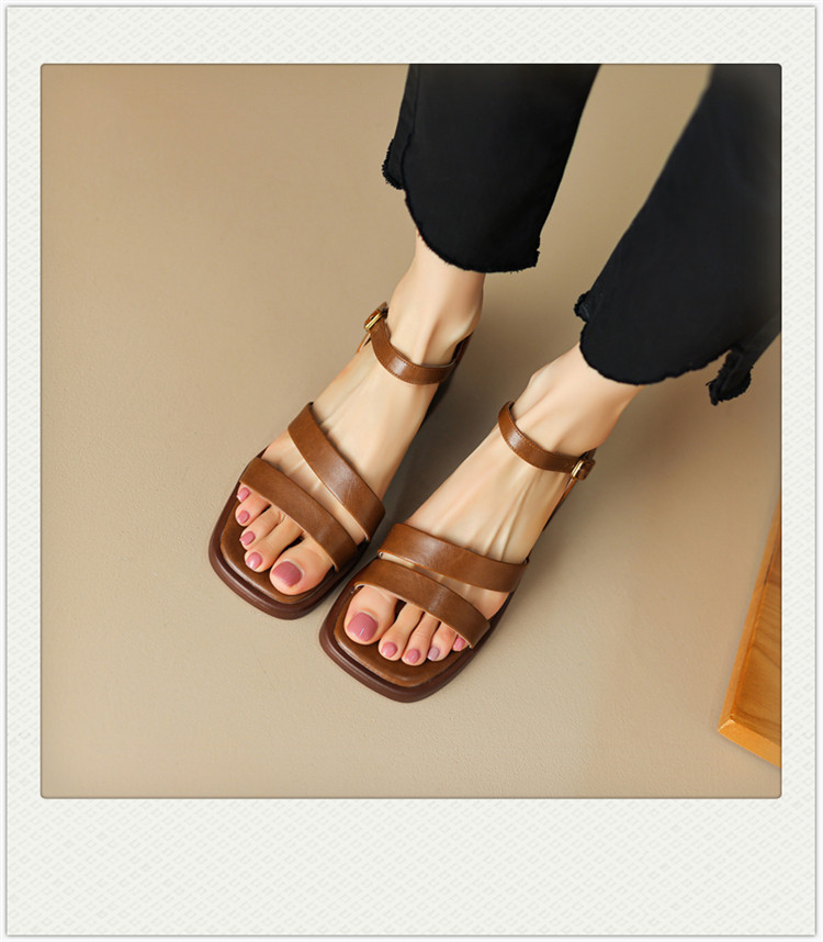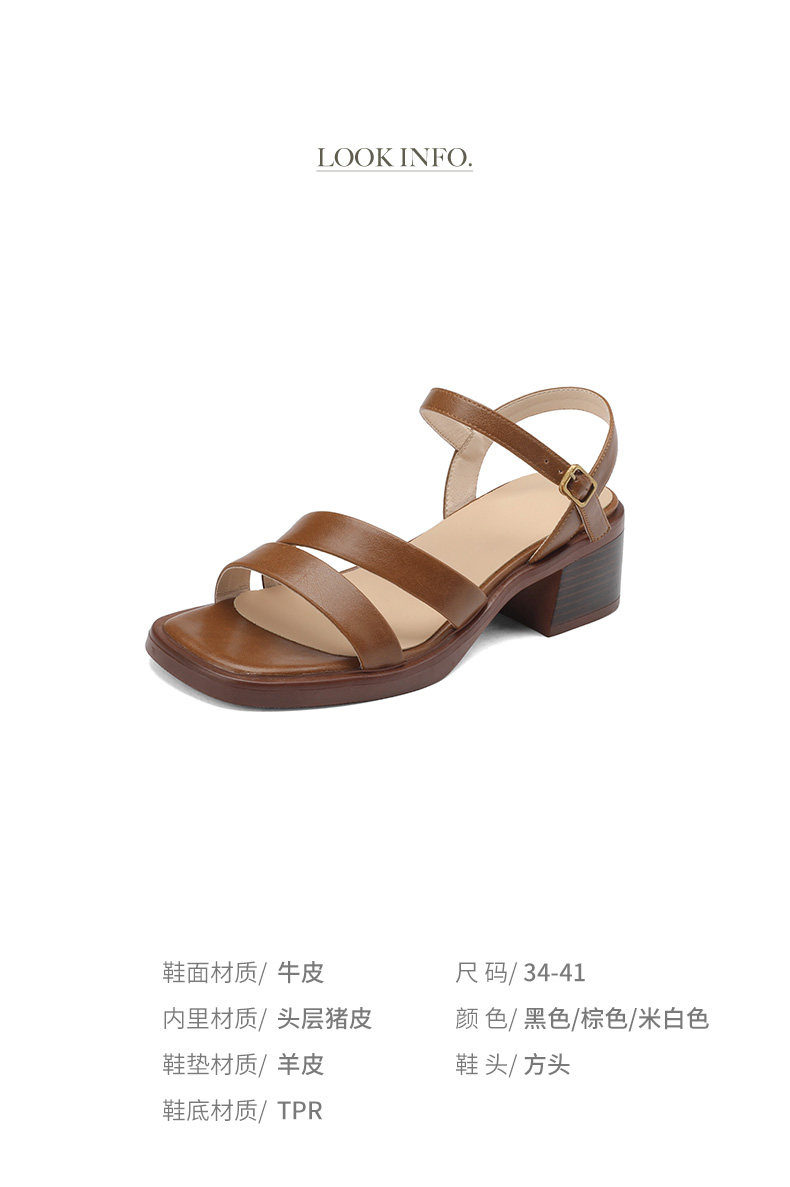 Genuine leather strappy sandals for women 2025 new summer women's shoes square toe thick heel brown handmade temperament shoes for women summer