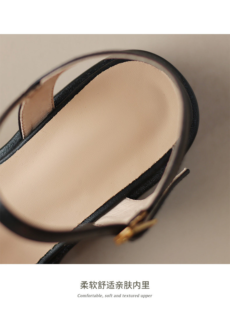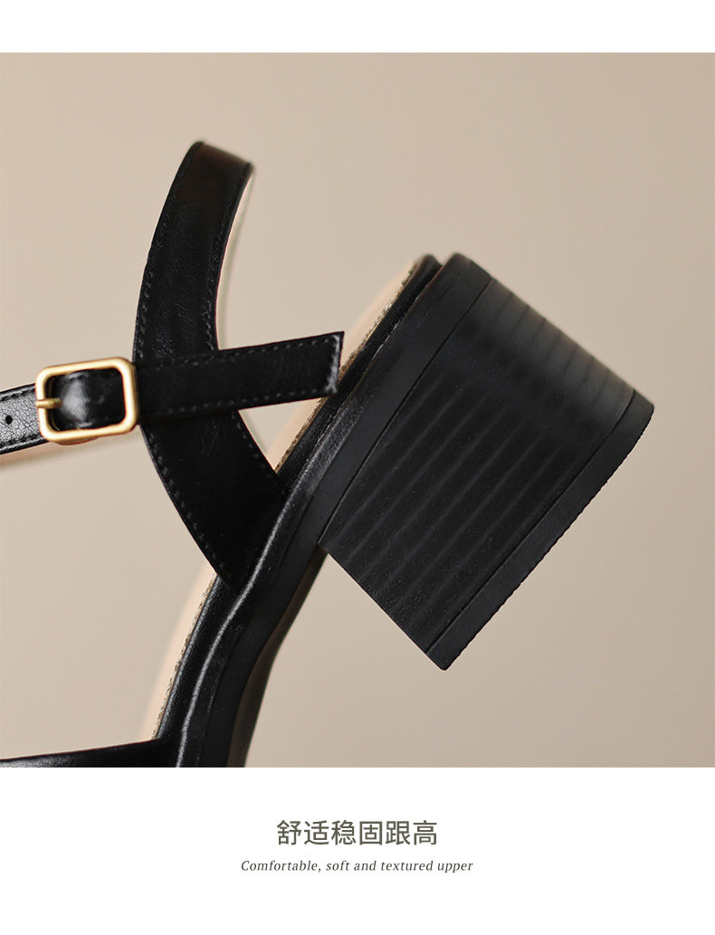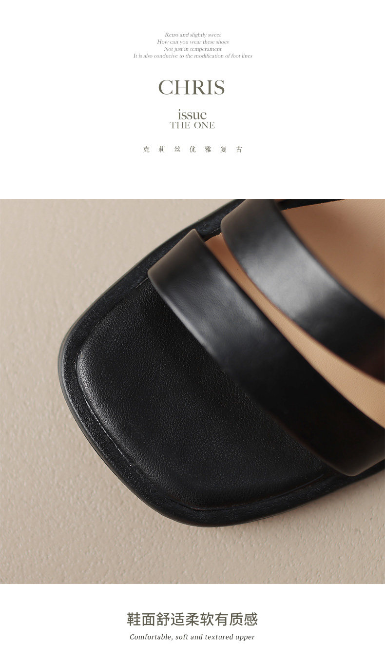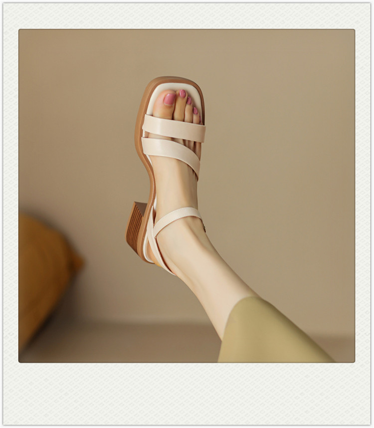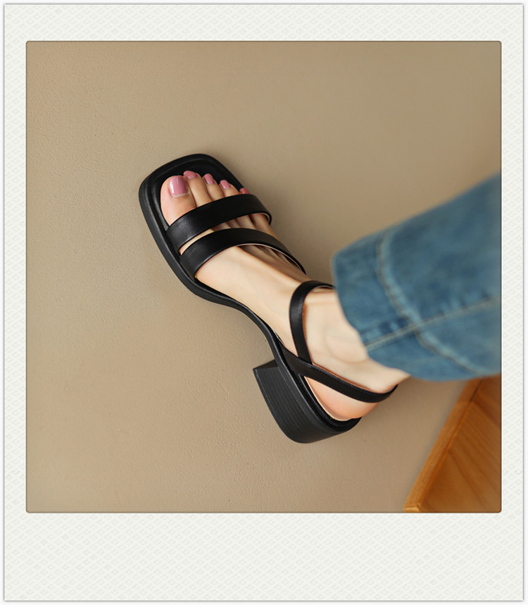 Genuine leather strappy sandals for women 2025 new summer women's shoes square toe thick heel brown handmade temperament shoes for women summer