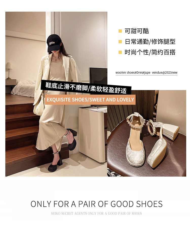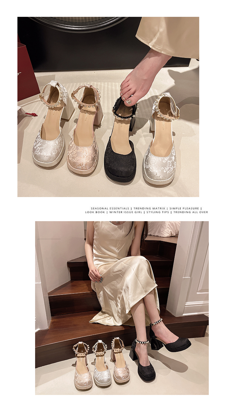 Light chinese style thick heel high heels for women 2025 new spring and autumn new chinese style cheongsam shoes with skirt mary jane shoes