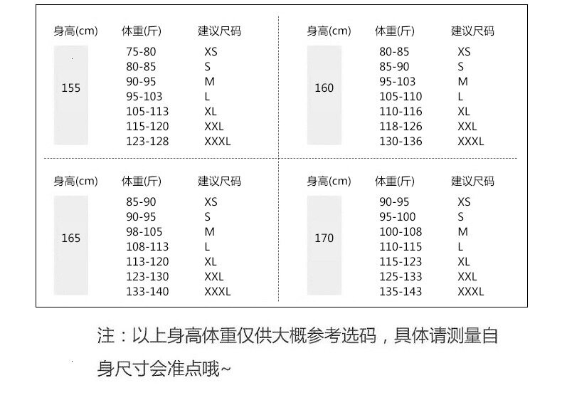 China (cm) 160-165/84-86 165-170 / 88-90 167-172 / 92-96 168-173 / 98-102 170-176 / 106-110