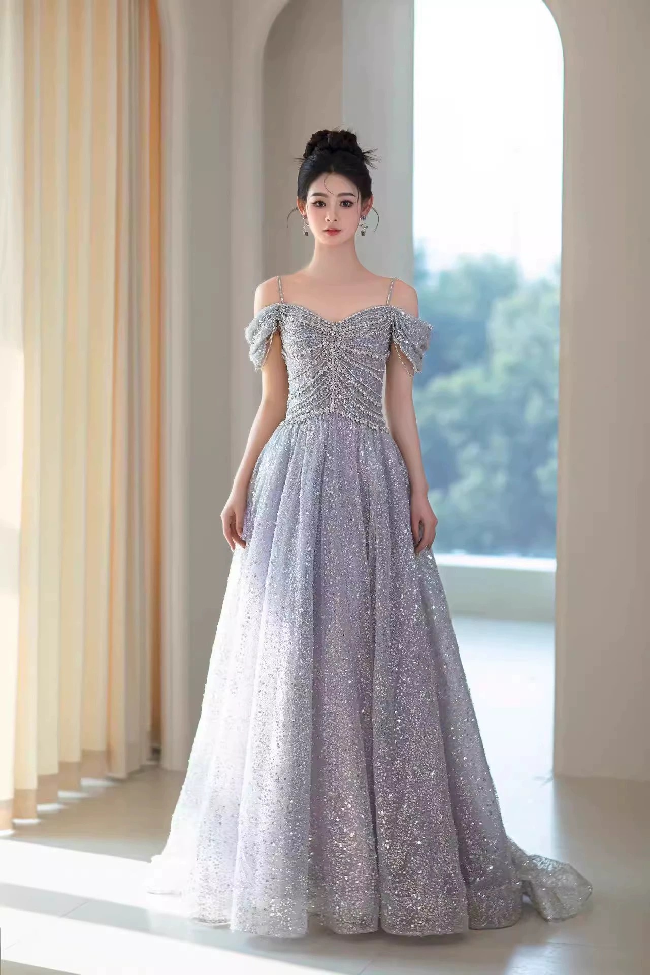 高级质感轻奢晚礼服2025新款气质重工主持人艺考比赛生日宴会长裙