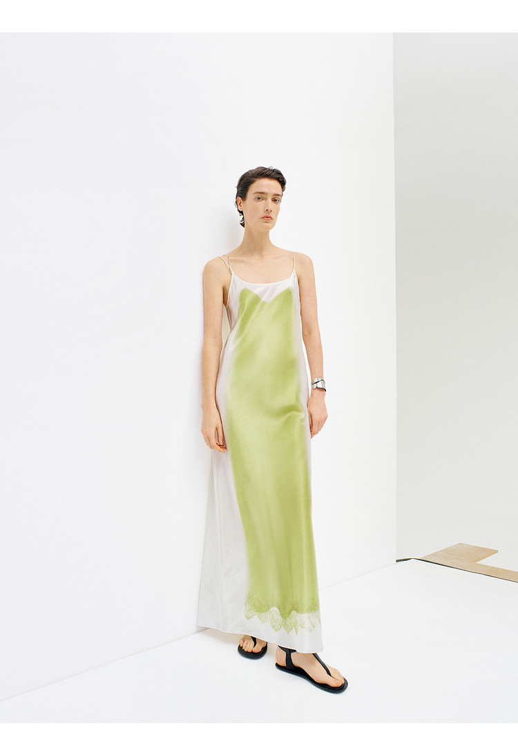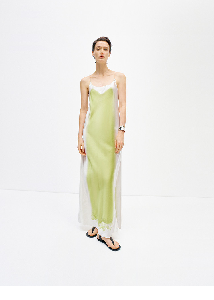 Edition suspender skirt women's summer new art print slit acetate dress EBD2DRS060