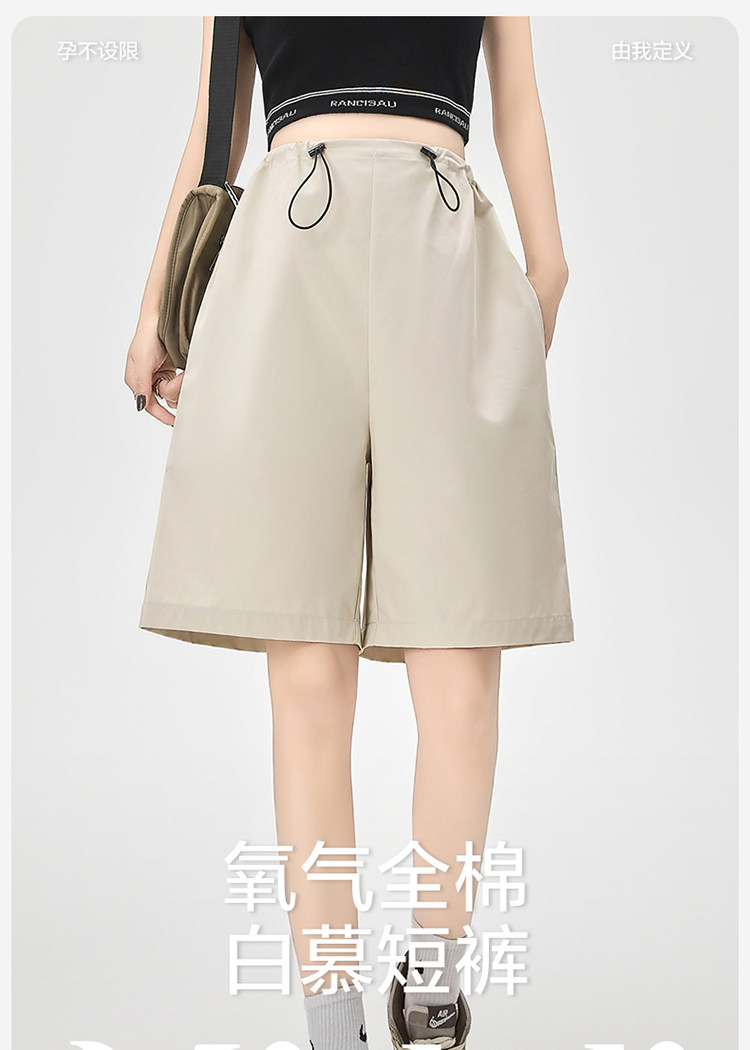 Maternity Shorts Summer Thin Outer Wear Five-Point Wide-Leg Pants Spring and Summer No Belly-Supporting Bottoming Pants for Small Women Plus Size
