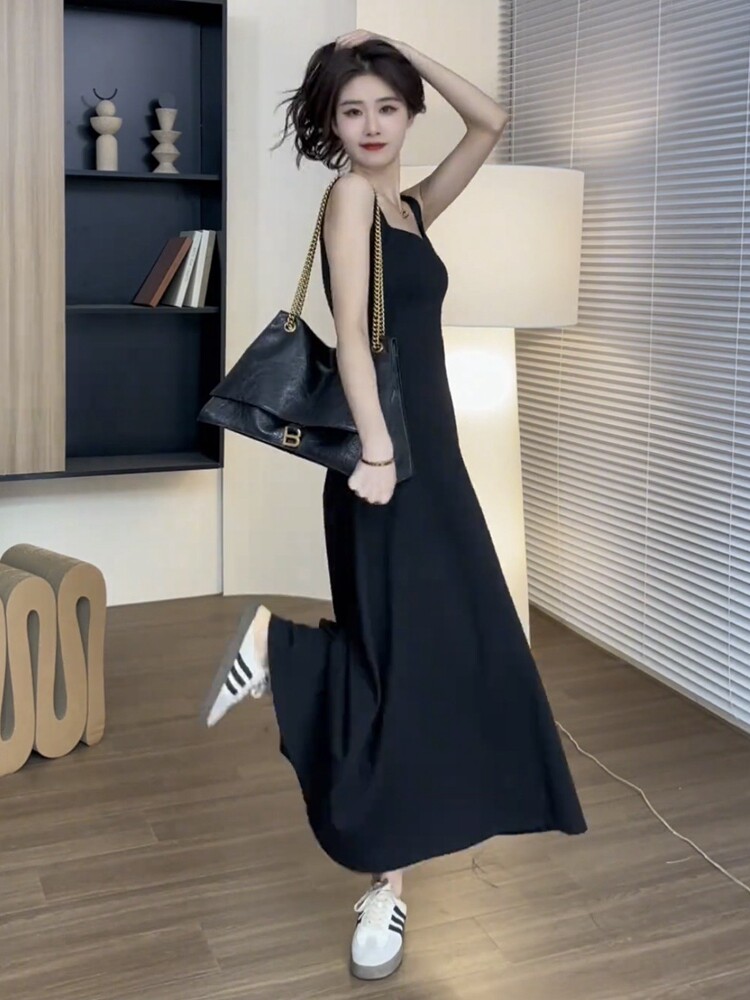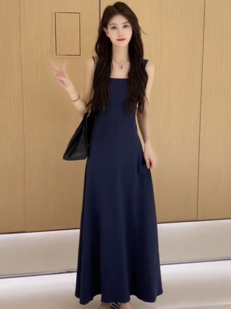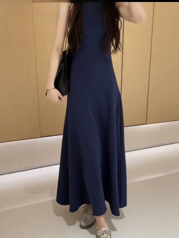 2025 new spring and autumn French style high-end temperament vest long skirt waist slimming sleeveless suspender dress for women