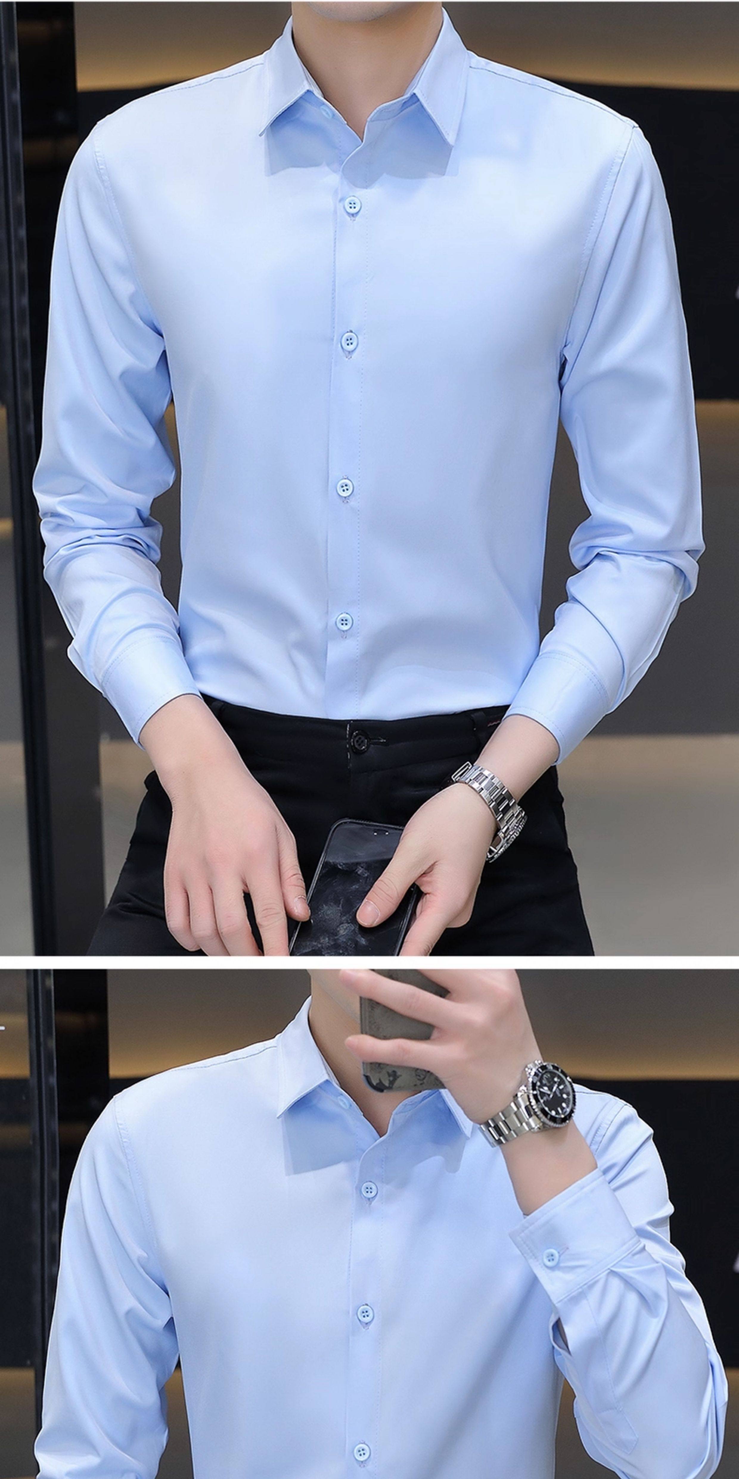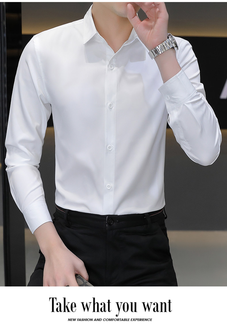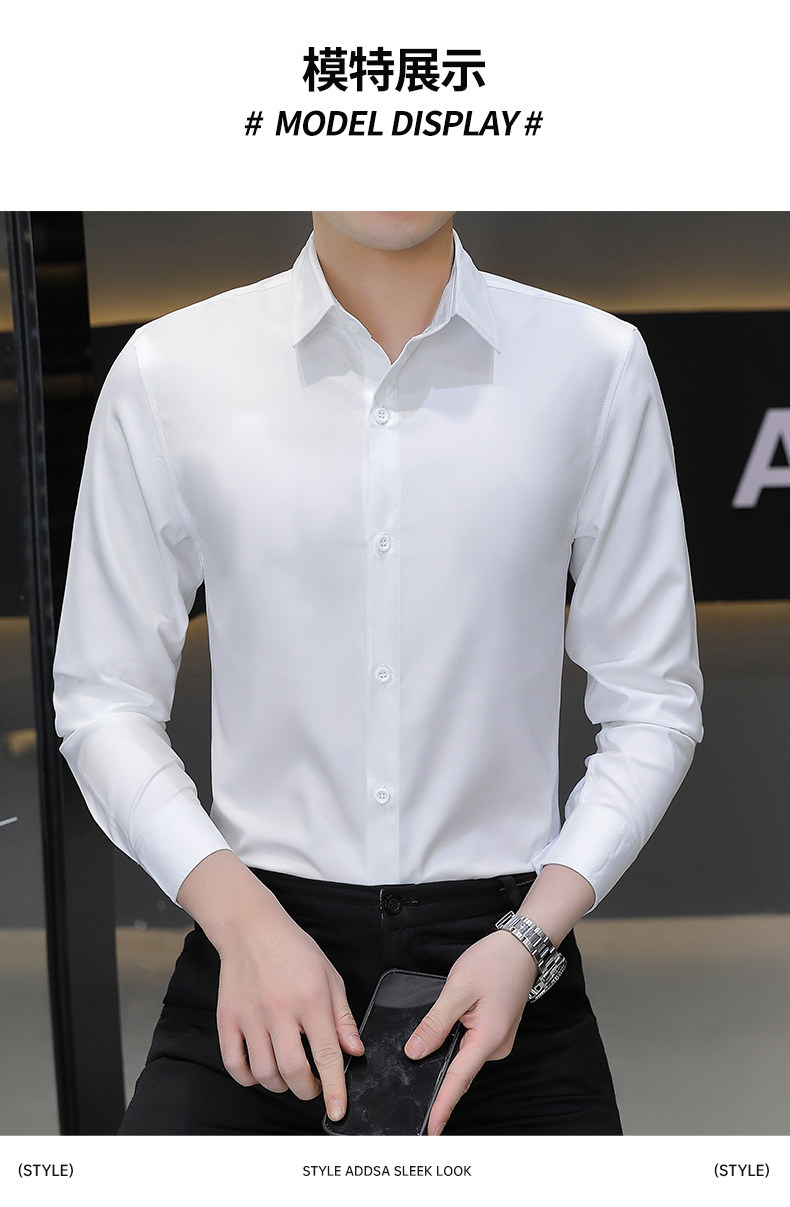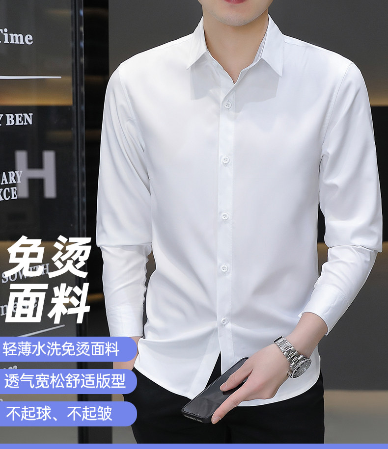 Camisa blanca Woodpecker de manga larga para hombre, otoño e invierno, camisa blanca nueva, antiarrugas, sin hierro, más camisa de manga larga de terciopelo