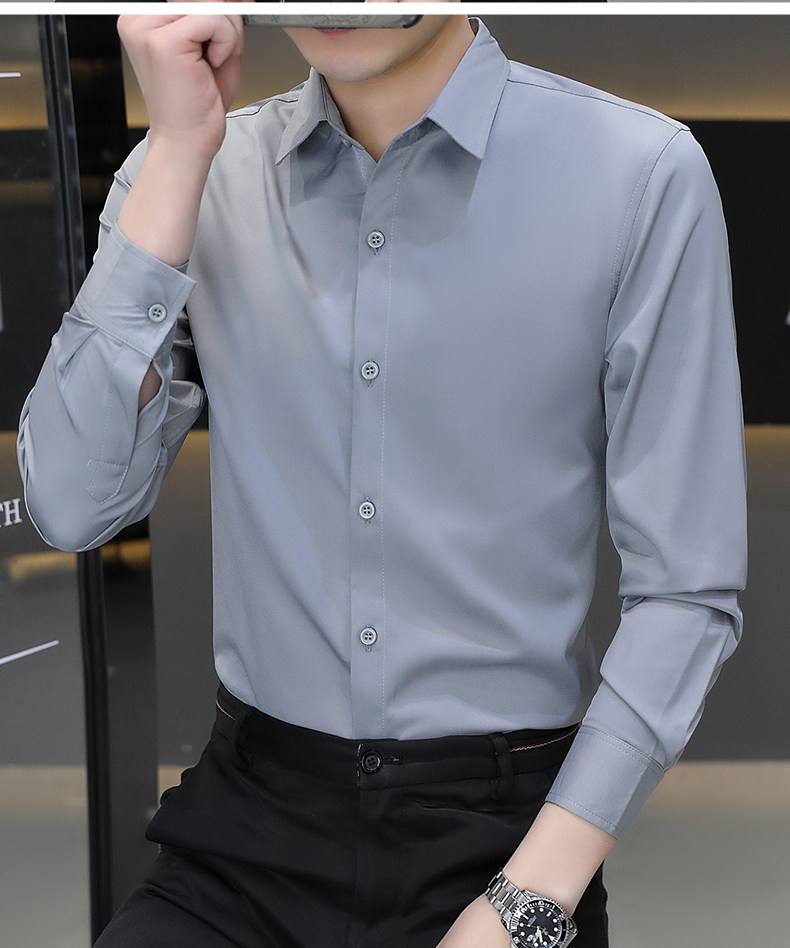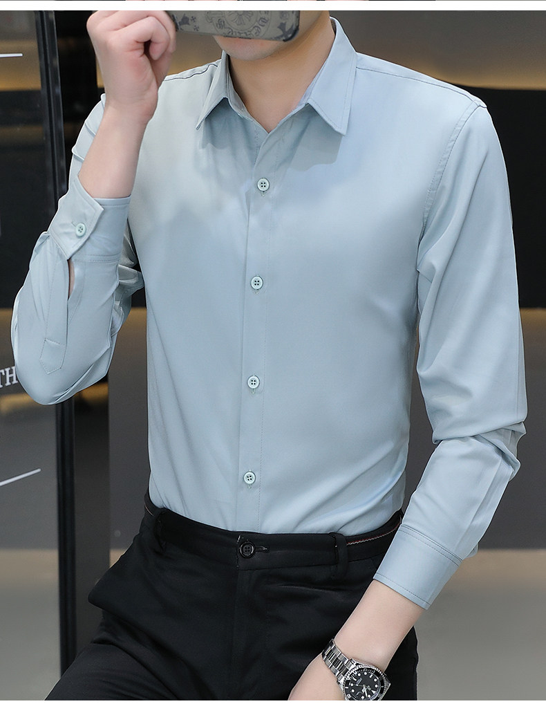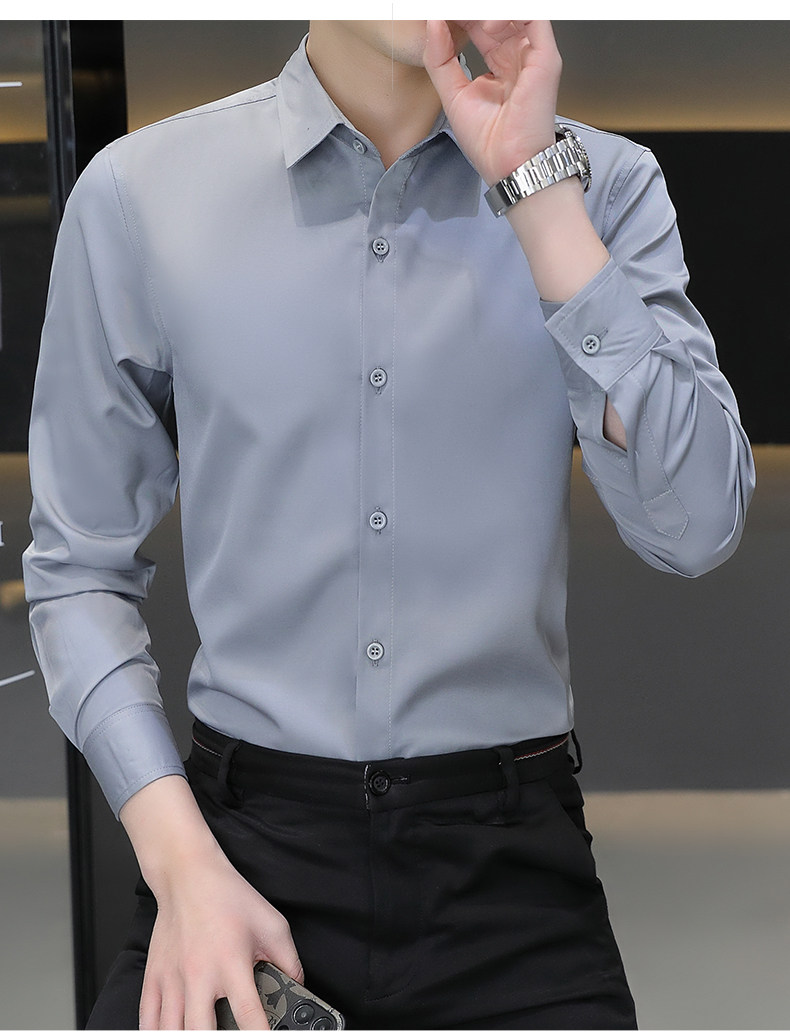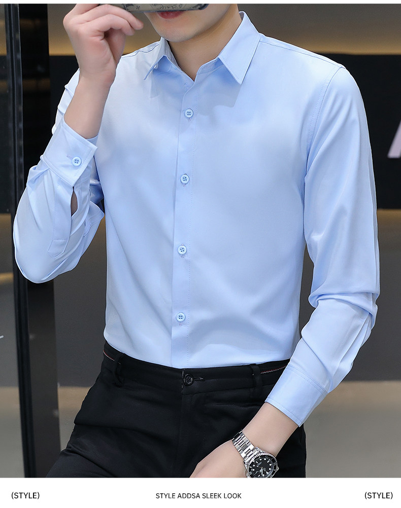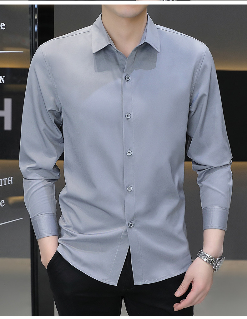 Camisa blanca Woodpecker de manga larga para hombre, otoño e invierno, camisa blanca nueva, antiarrugas, sin hierro, más camisa de manga larga de terciopelo