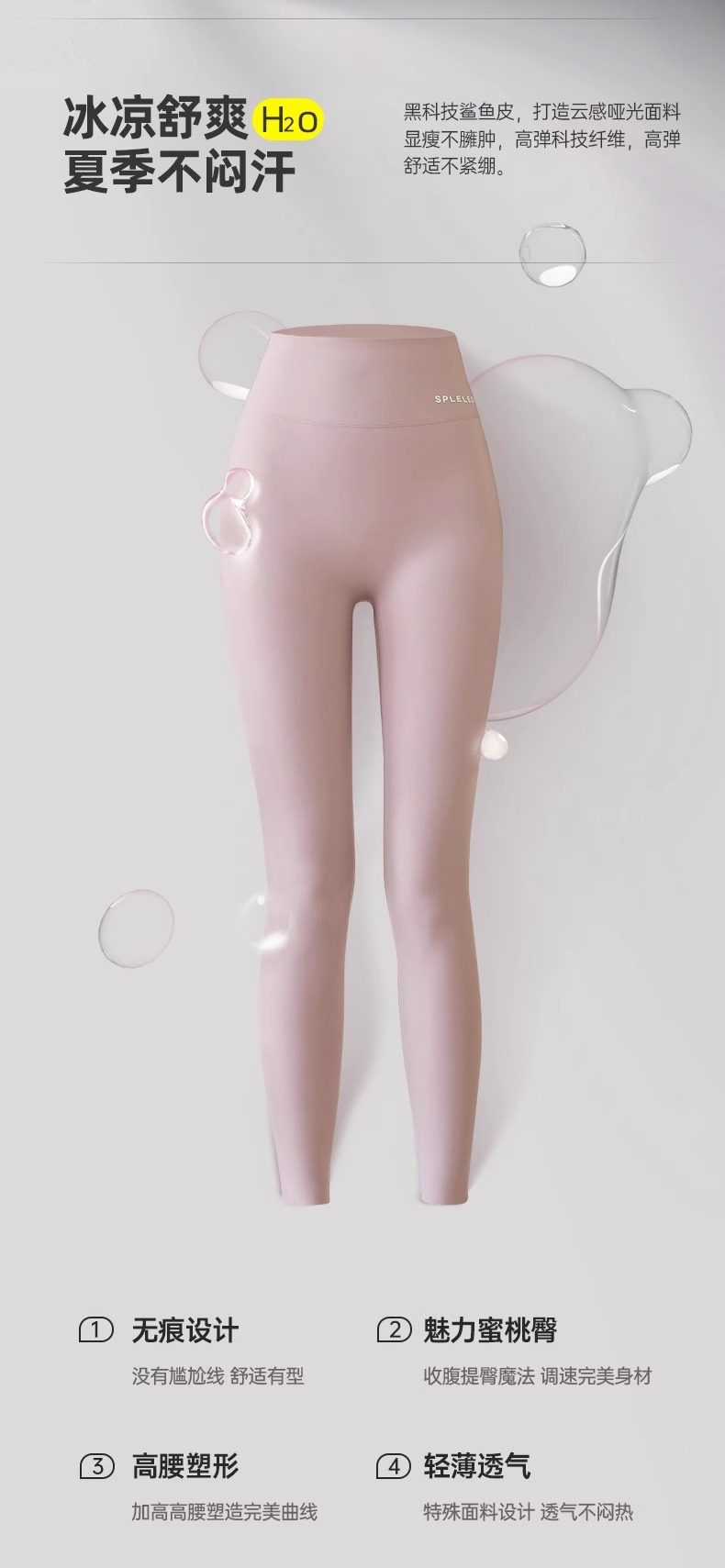 Fashionable Ice Silk Shark Pants for Women, Suitable for Wearing Outside in Summer, Thin Style, 2024 New Model, Tummy Control, Butt-Lifting, Fitness Yoga Leggings