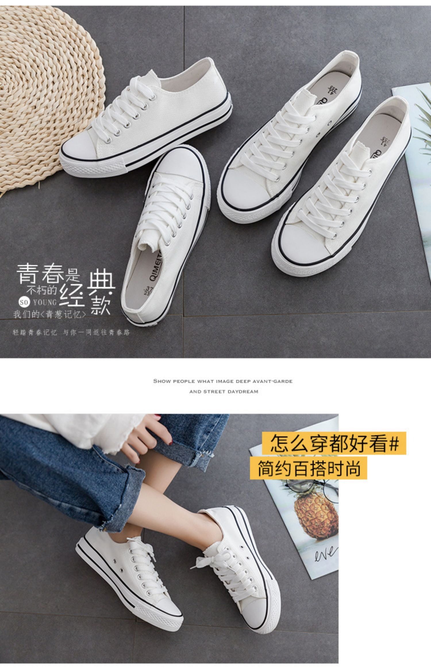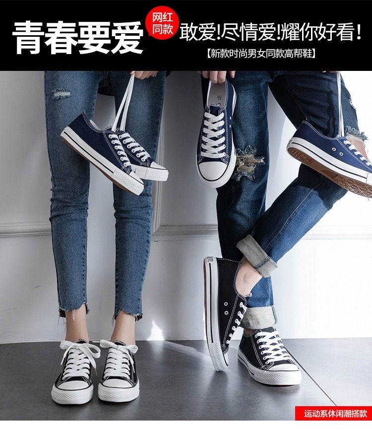 小白鞋学生男女情侣夏季帆布鞋休闲新款百搭板鞋系带低高帮球鞋子