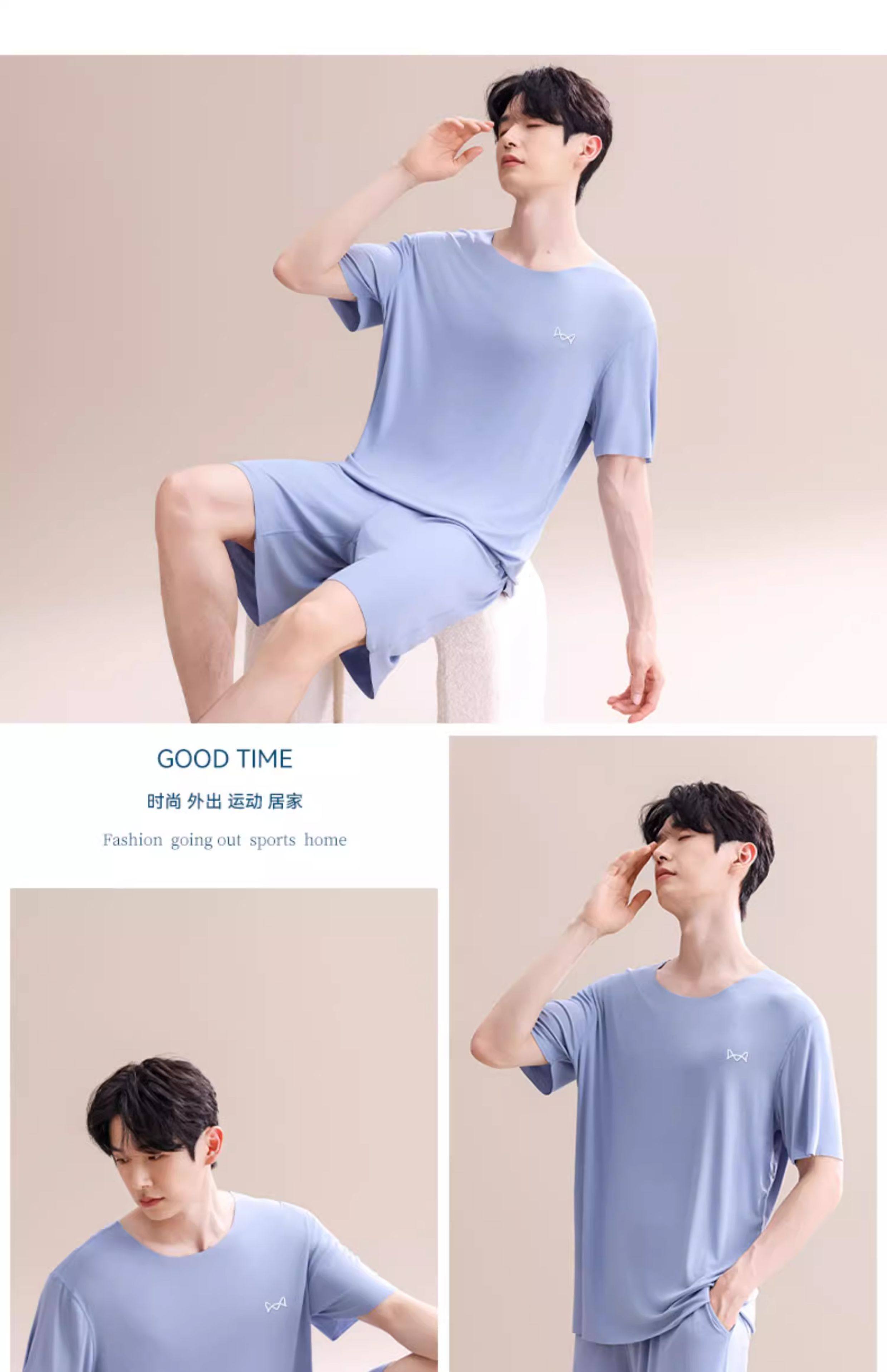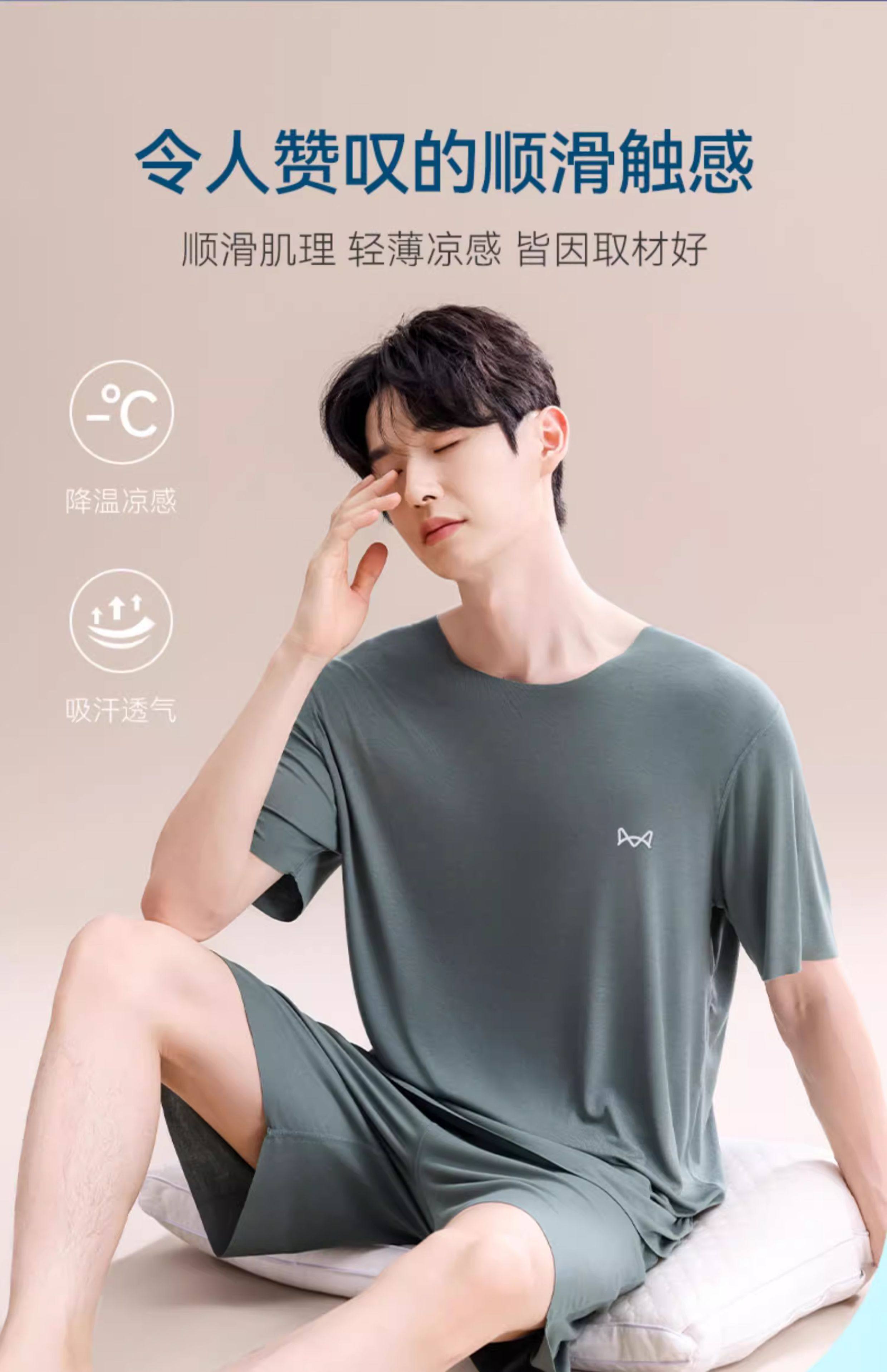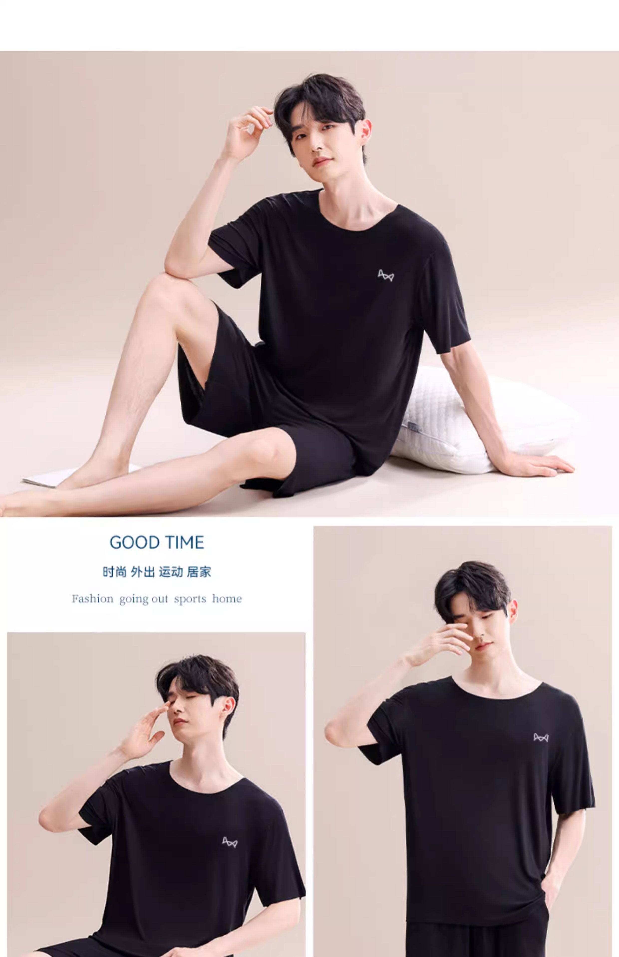 Pijamas Catman de seda helada para hombre, novedad de verano 2025, nuevo traje de manga corta sin costuras, talla grande, se puede usar fuera de la ropa de casa