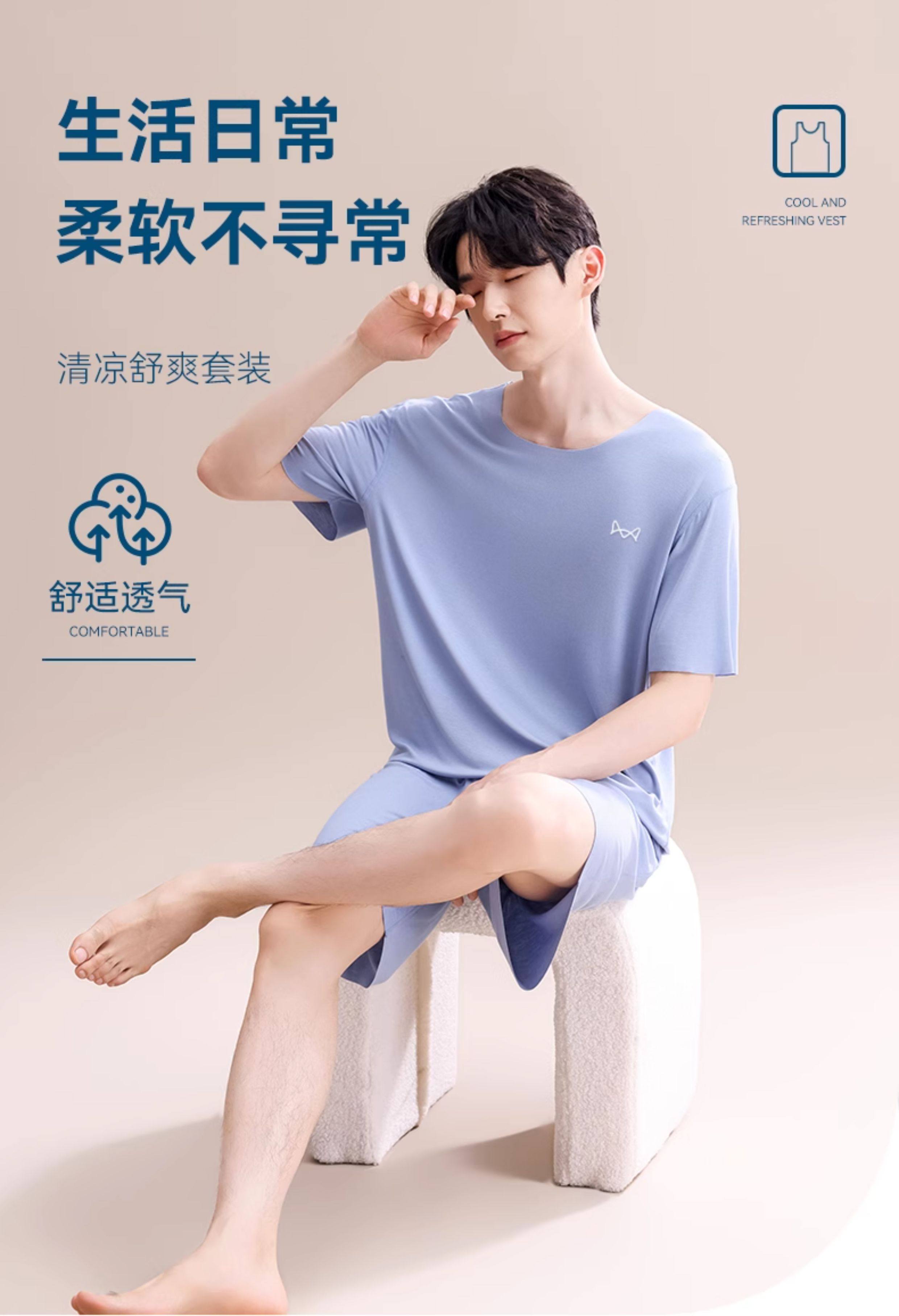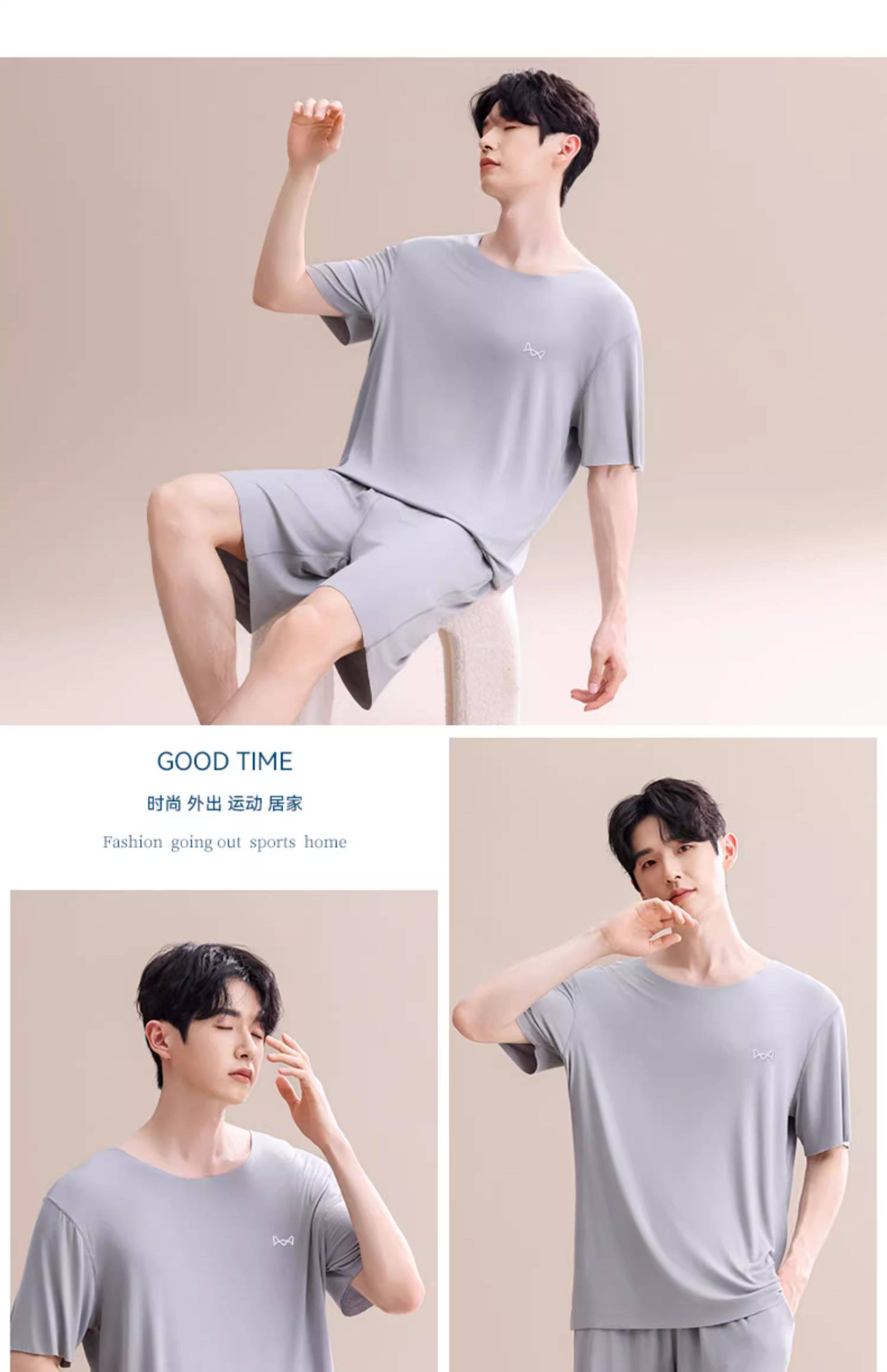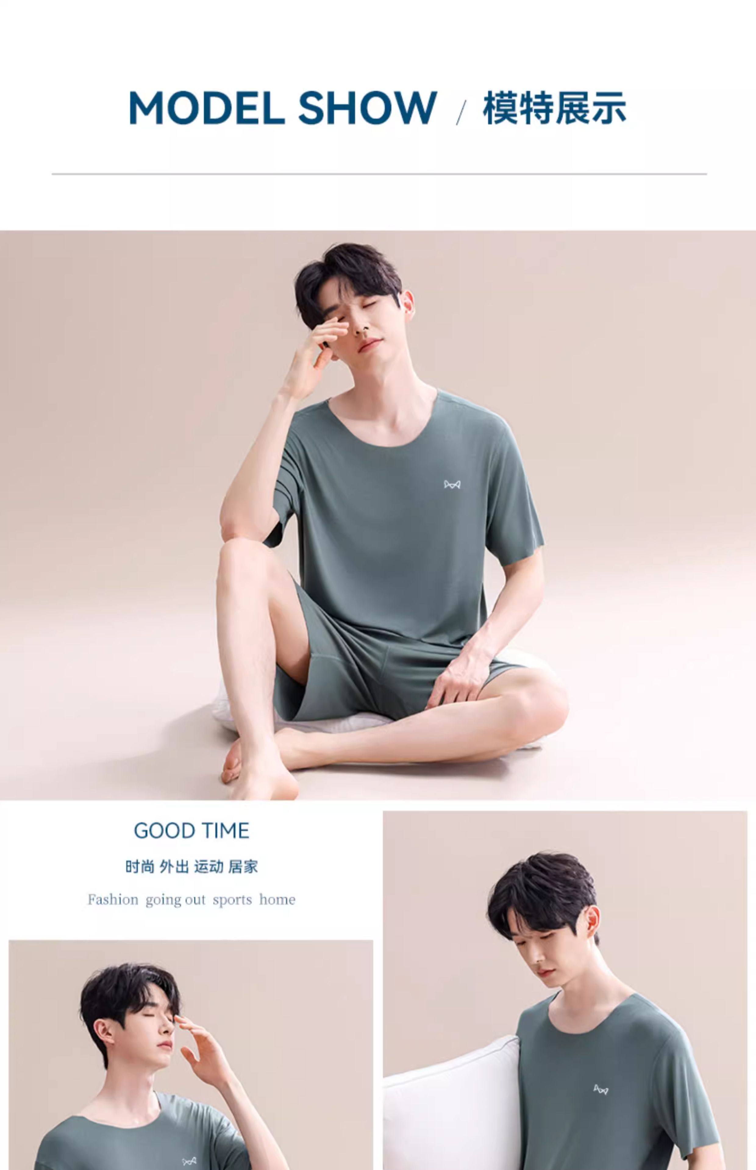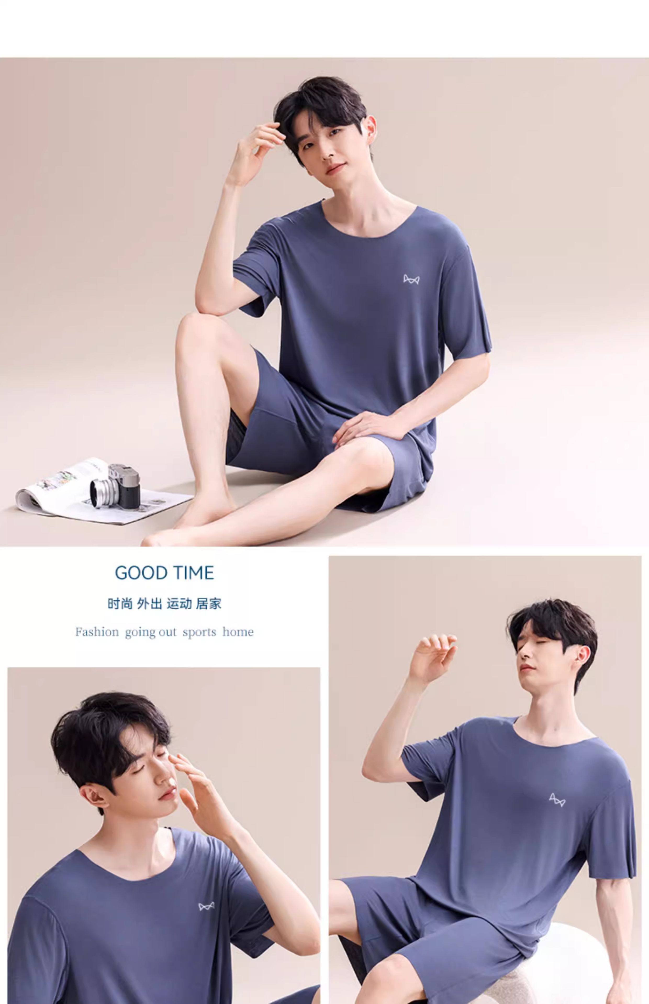 Pijamas Catman de seda helada para hombre, novedad de verano 2025, nuevo traje de manga corta sin costuras, talla grande, se puede usar fuera de la ropa de casa