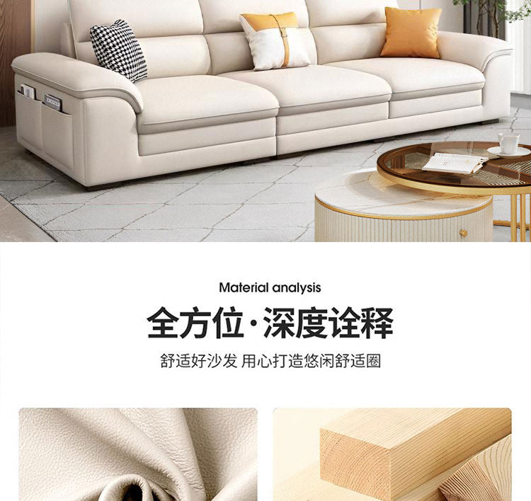 Italian-Style Minimalist Small Apartment Tech Fabric Sofa for Living Room, Modern Simple Straight-Row Three-Seater, Light Luxury 2025 New Model