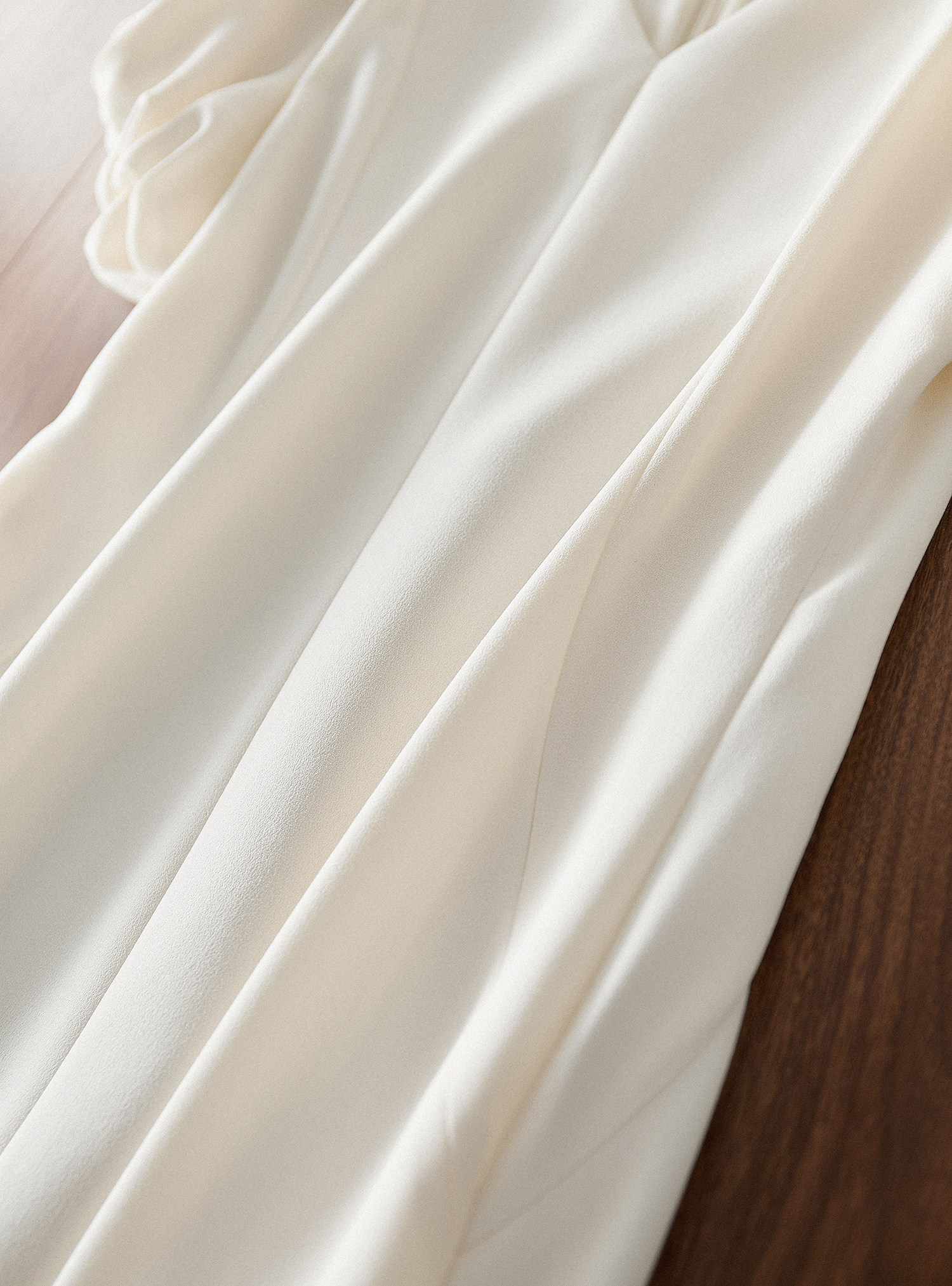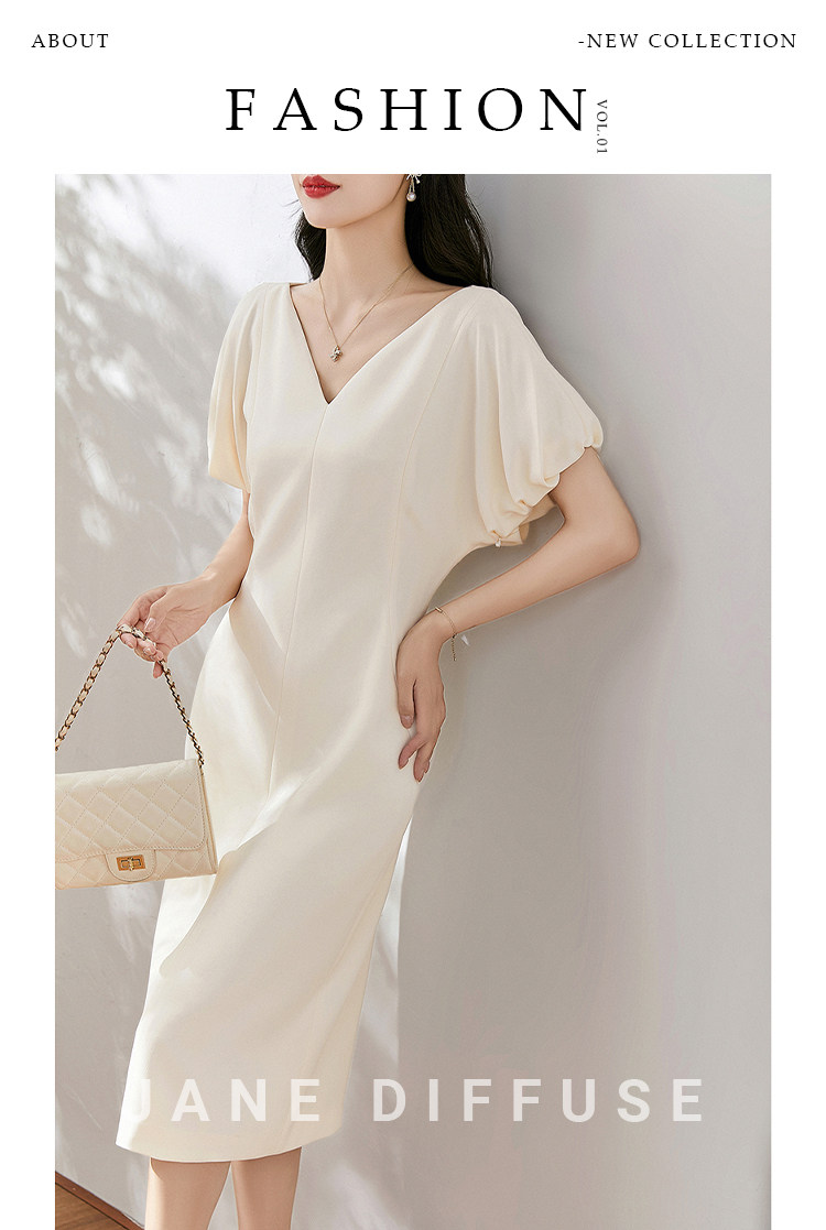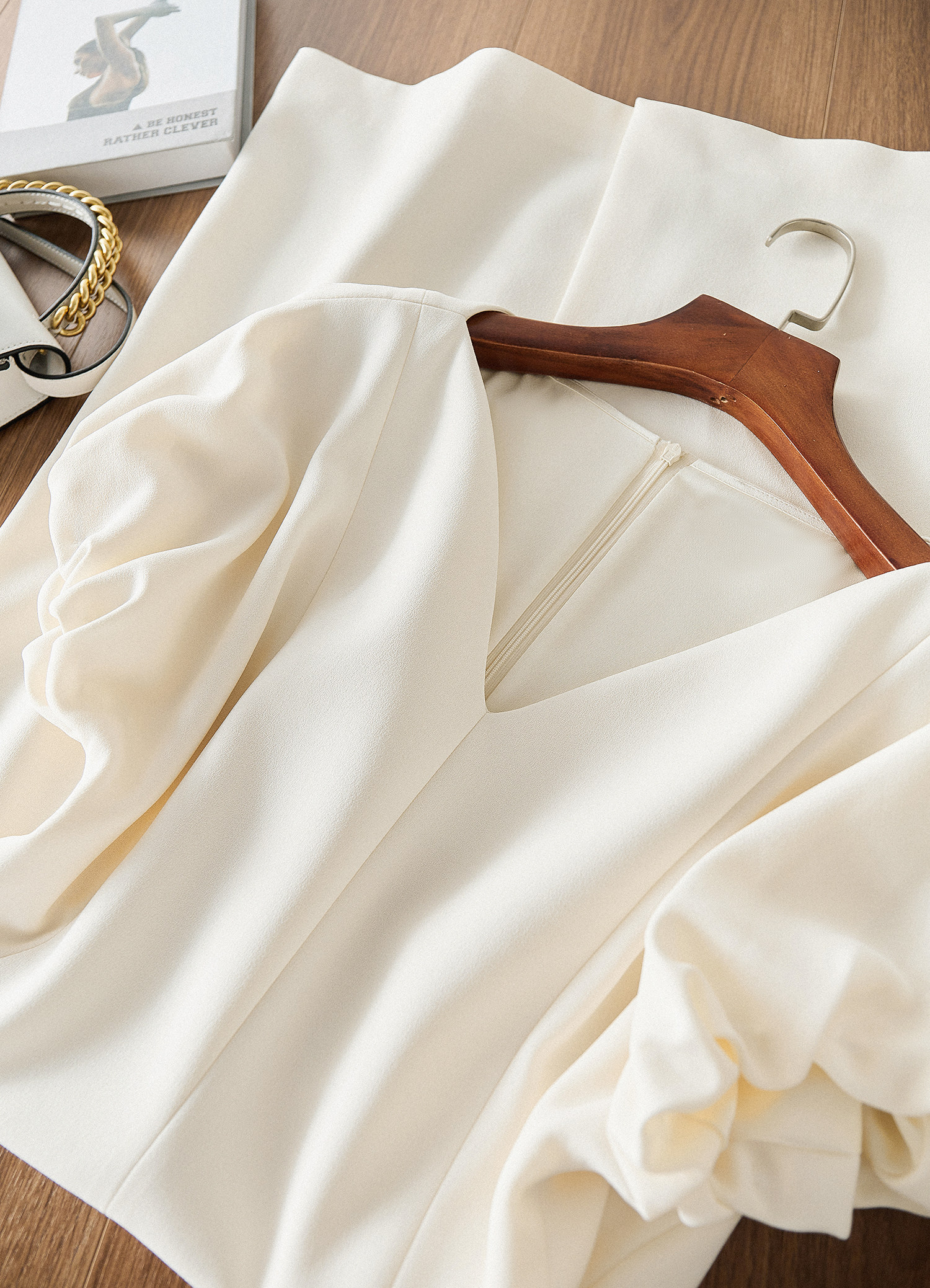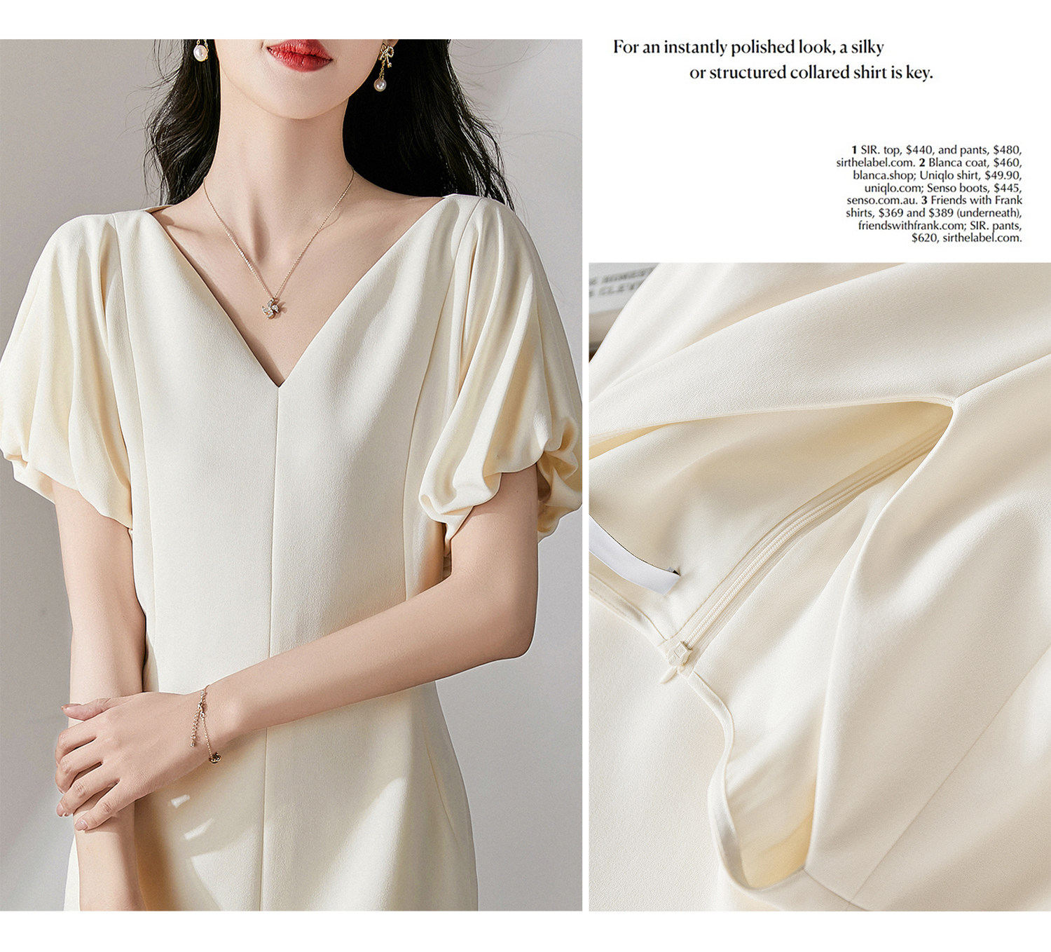 乄Imported acetic acid, stylish daily dress, designer waist skirt, lantern sleeve temperament dress