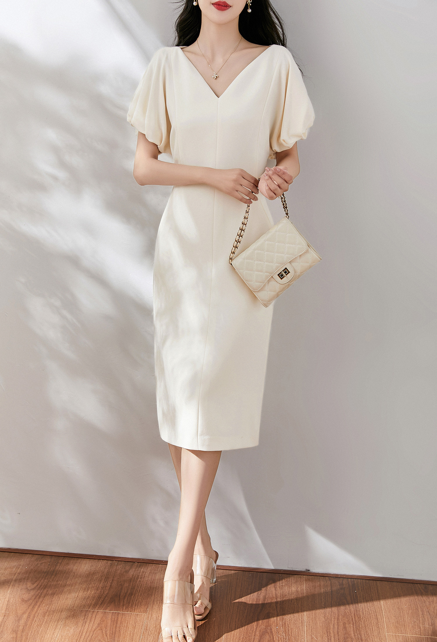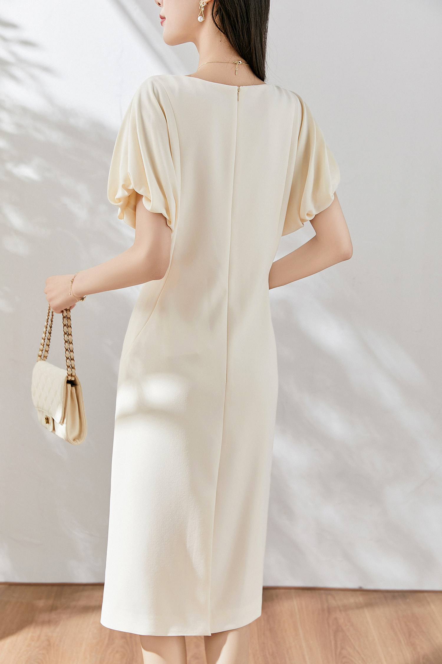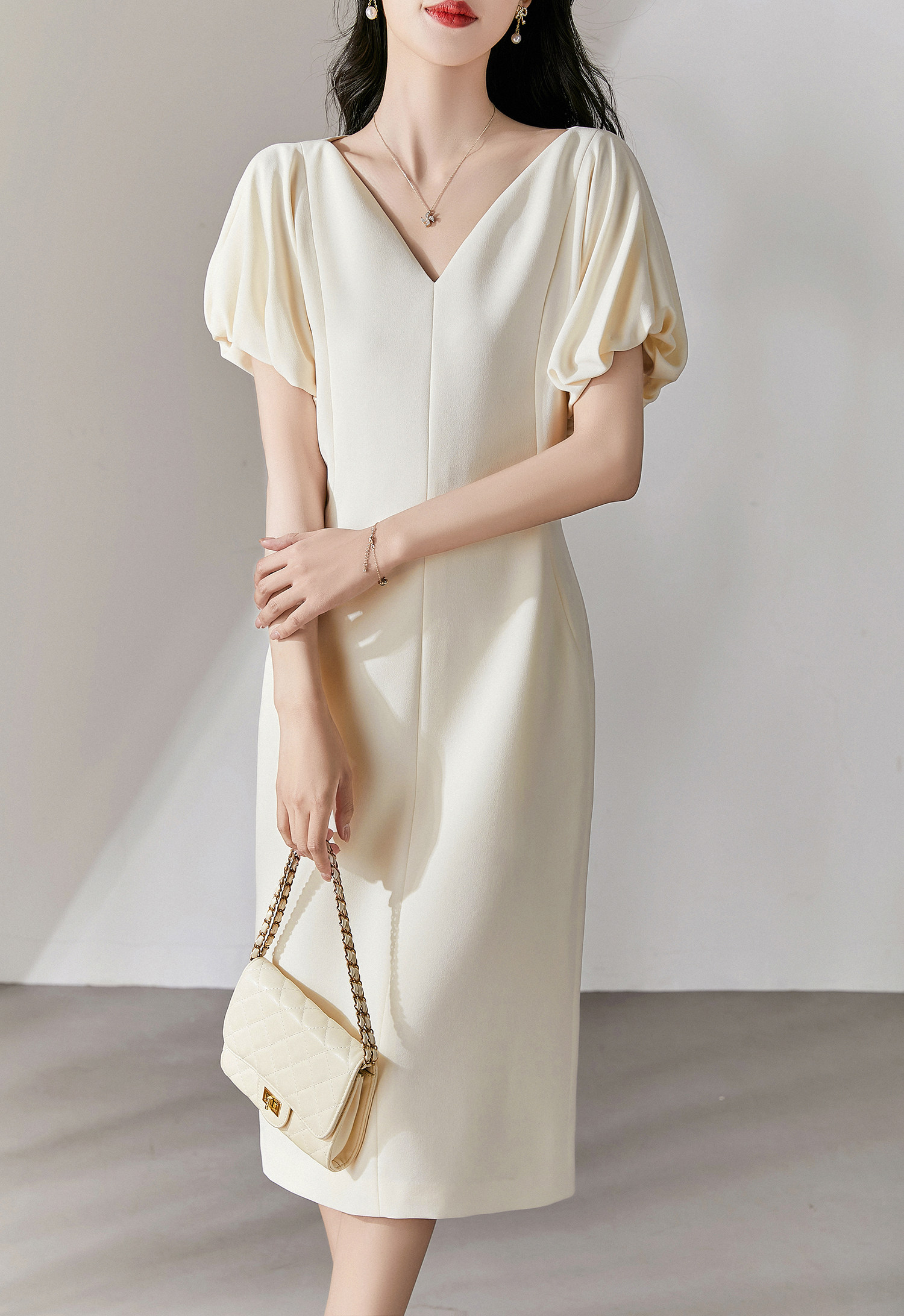 乄Imported acetic acid, stylish daily dress, designer waist skirt, lantern sleeve temperament dress