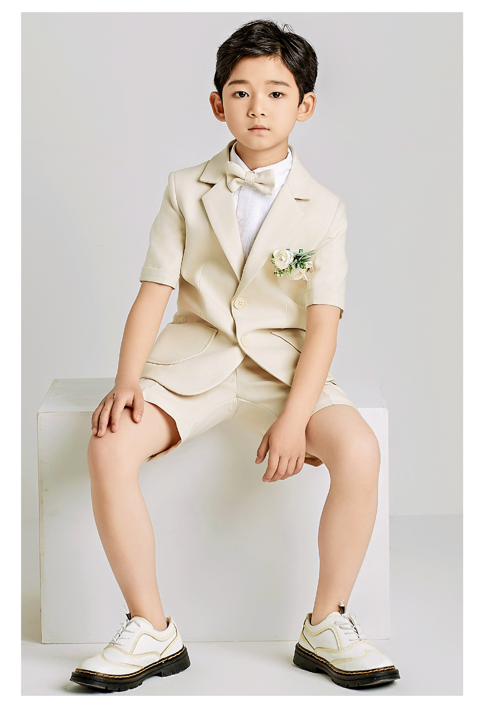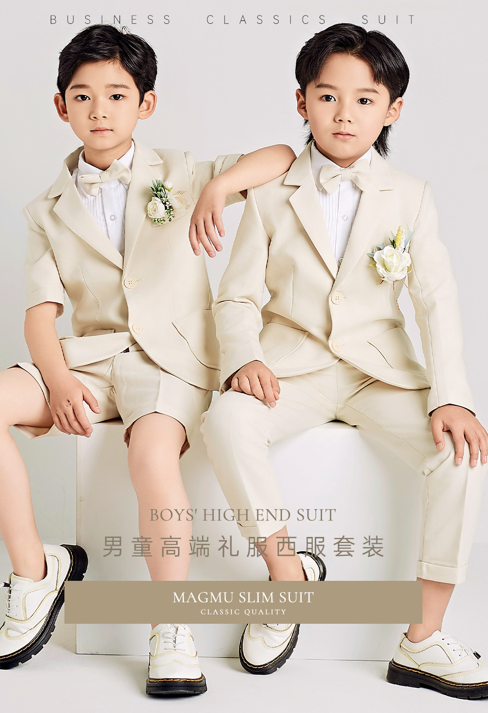 儿童西装套装男童主持人帅气花童白色小西服男孩演讲钢琴演出礼服