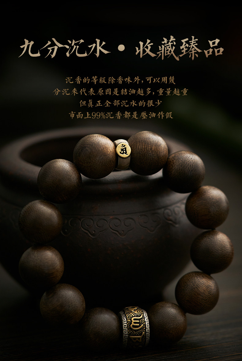 Authentic Submersible-Grade Qinan Agarwood Bracelet for Men, Wooden Cultural Artifact, Prayer Beads, Sandalwood Bracelet for Women, Amulet