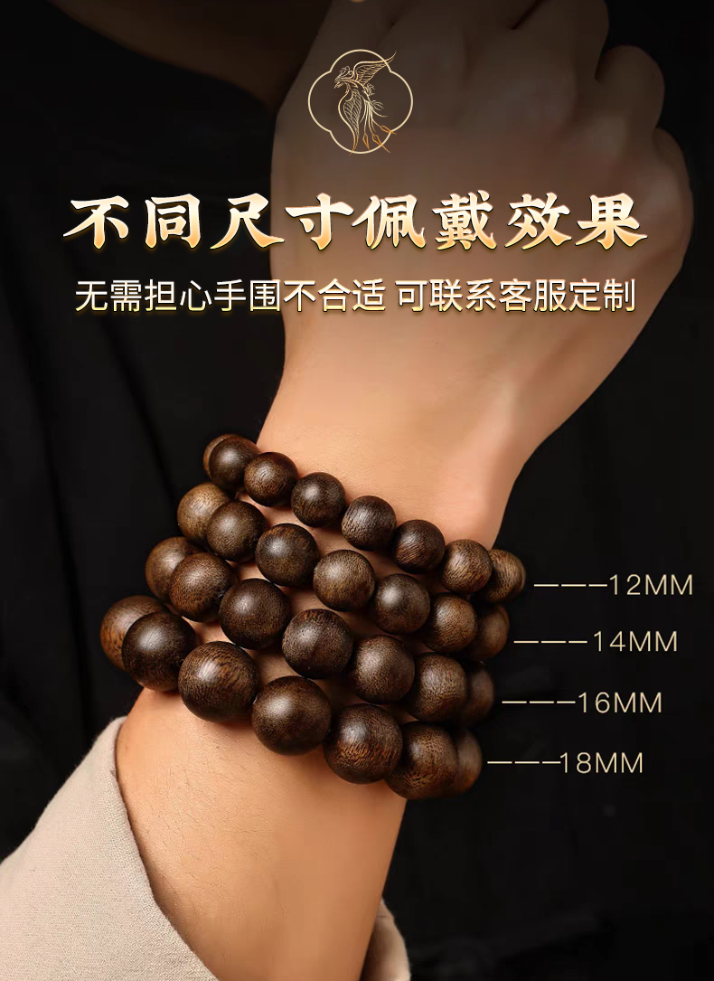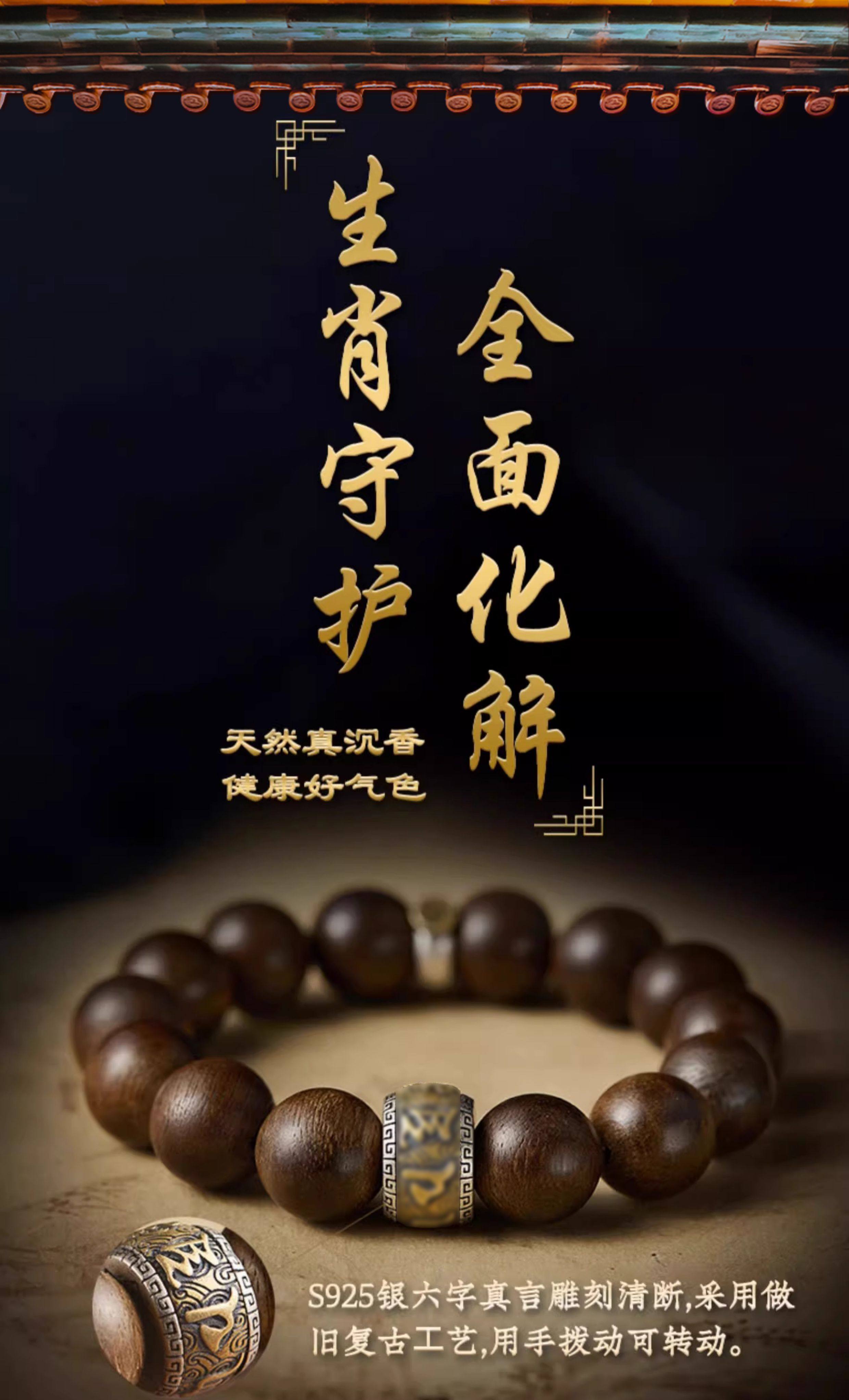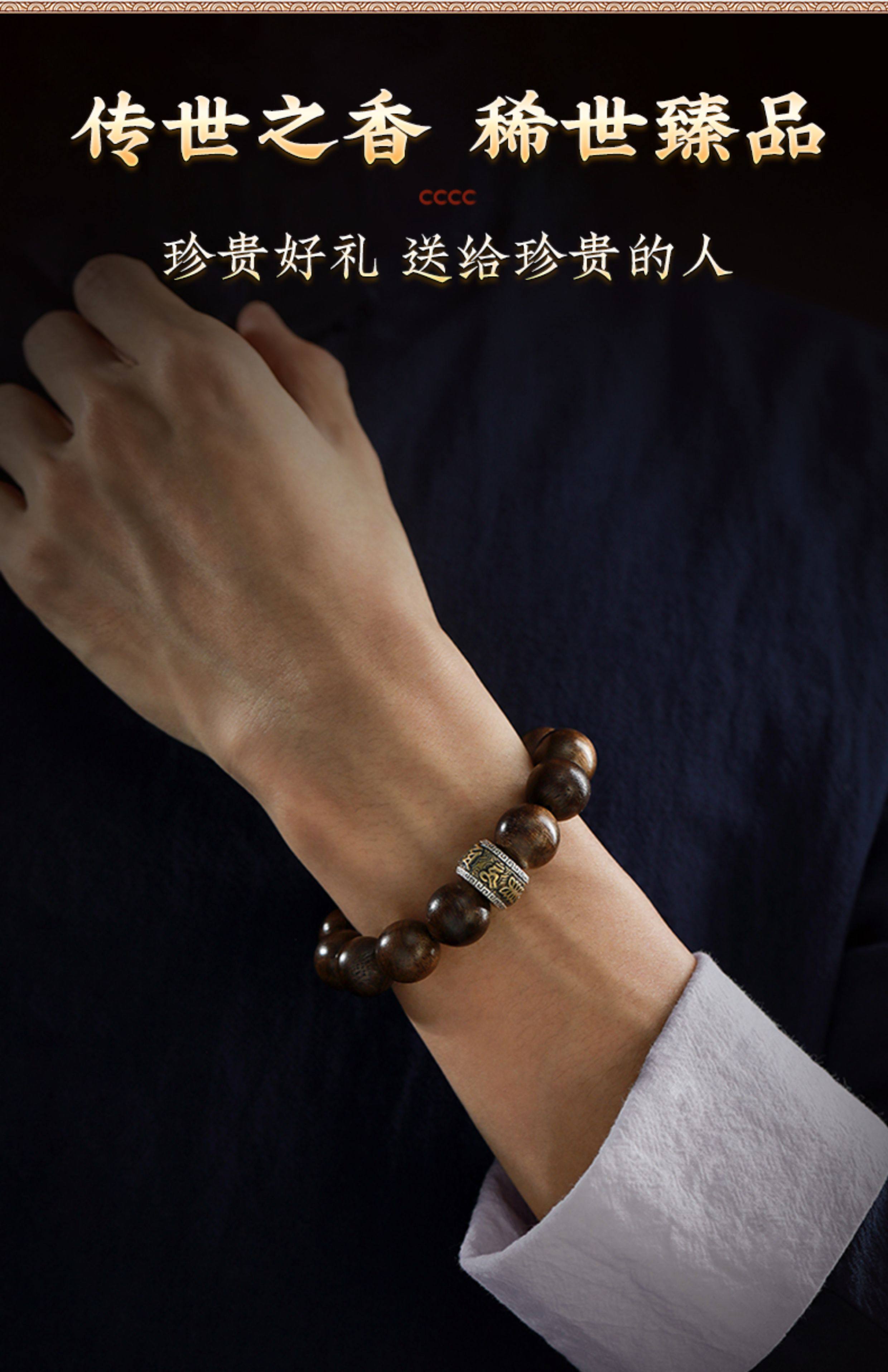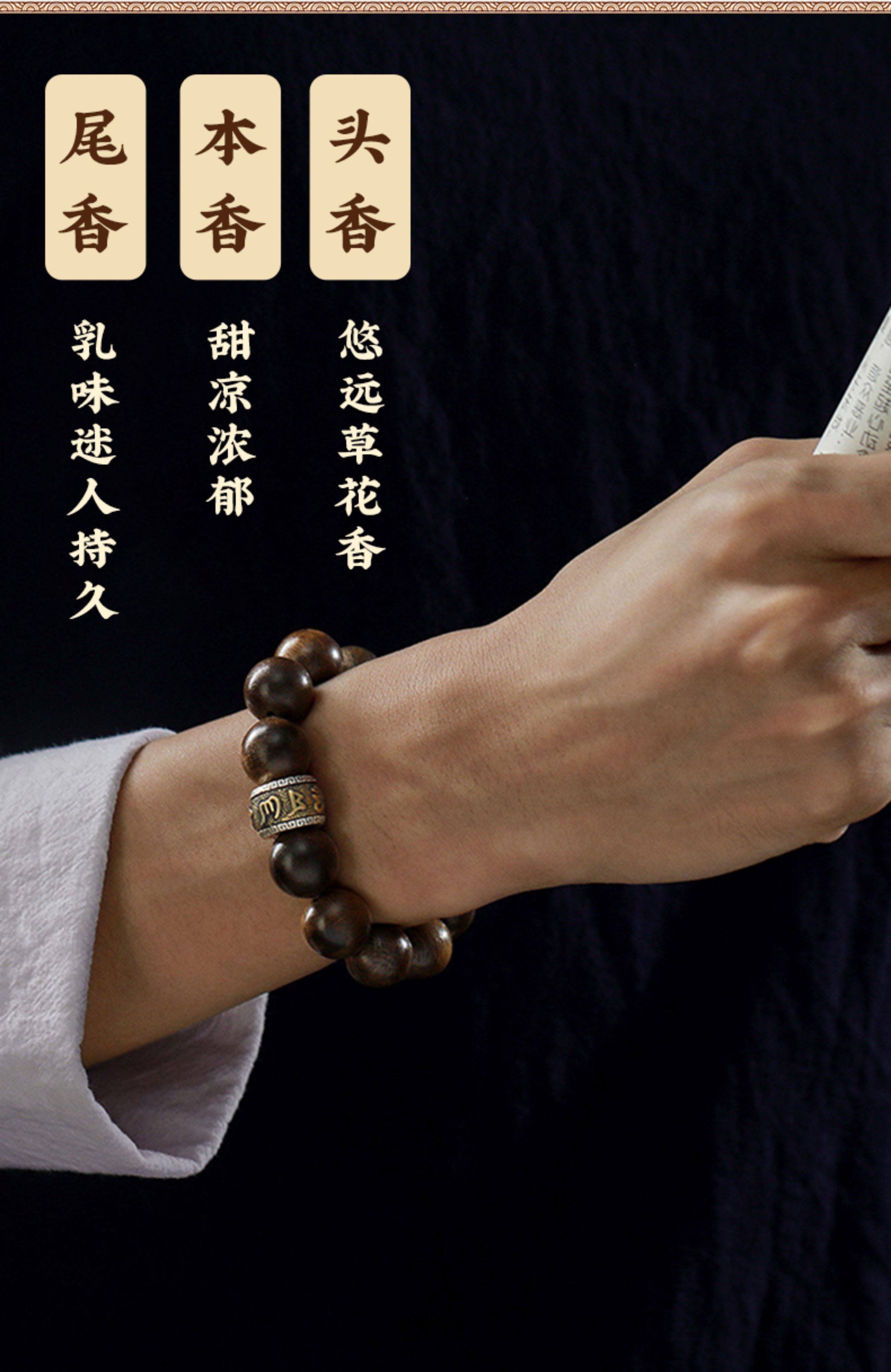 Agarwood Bracelet for Men with Six-Character Mantra, Fortune Beads, Twelve Zodiac Signs, Birth Year Buddha Beads, Wooden Bracelet for Birth Year