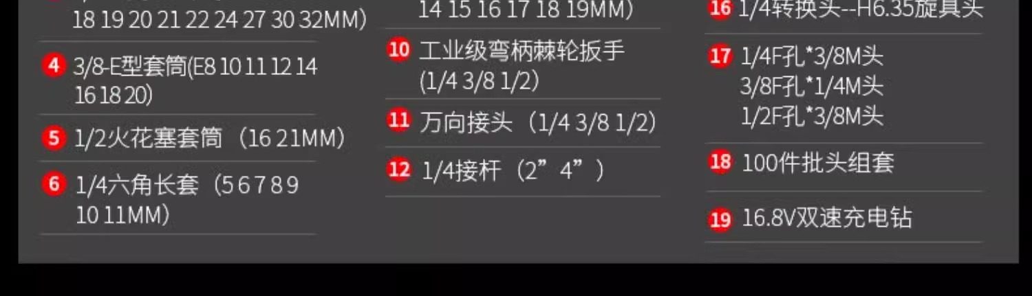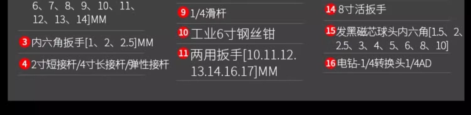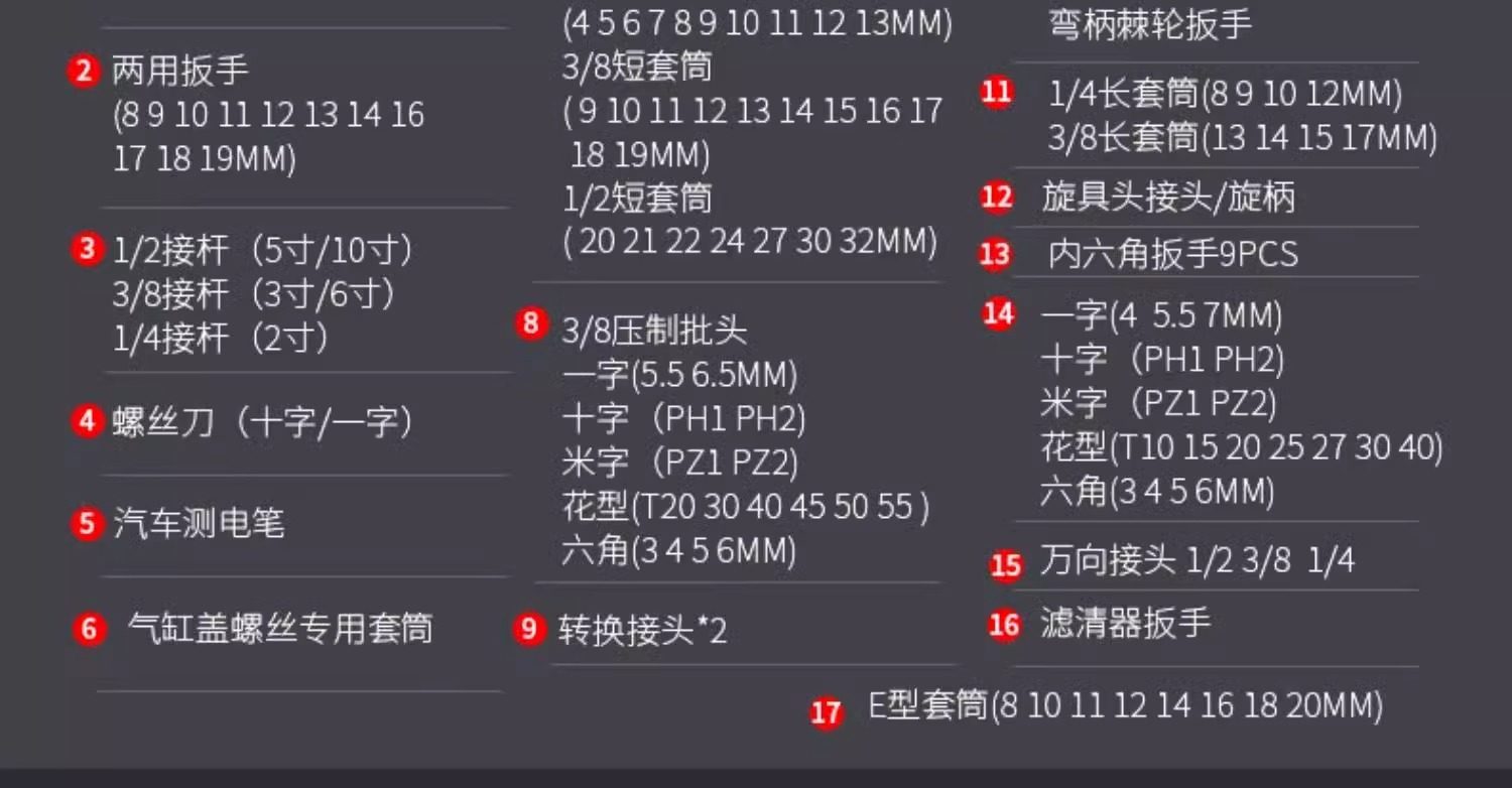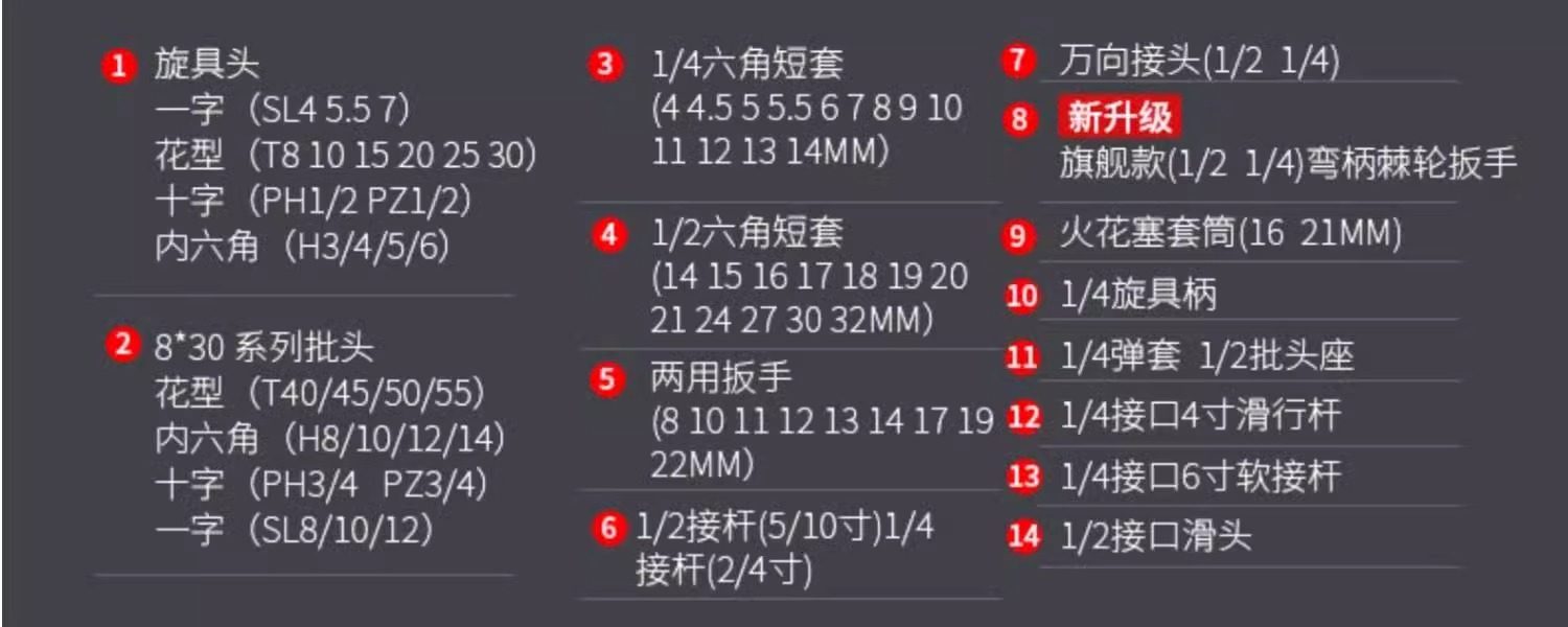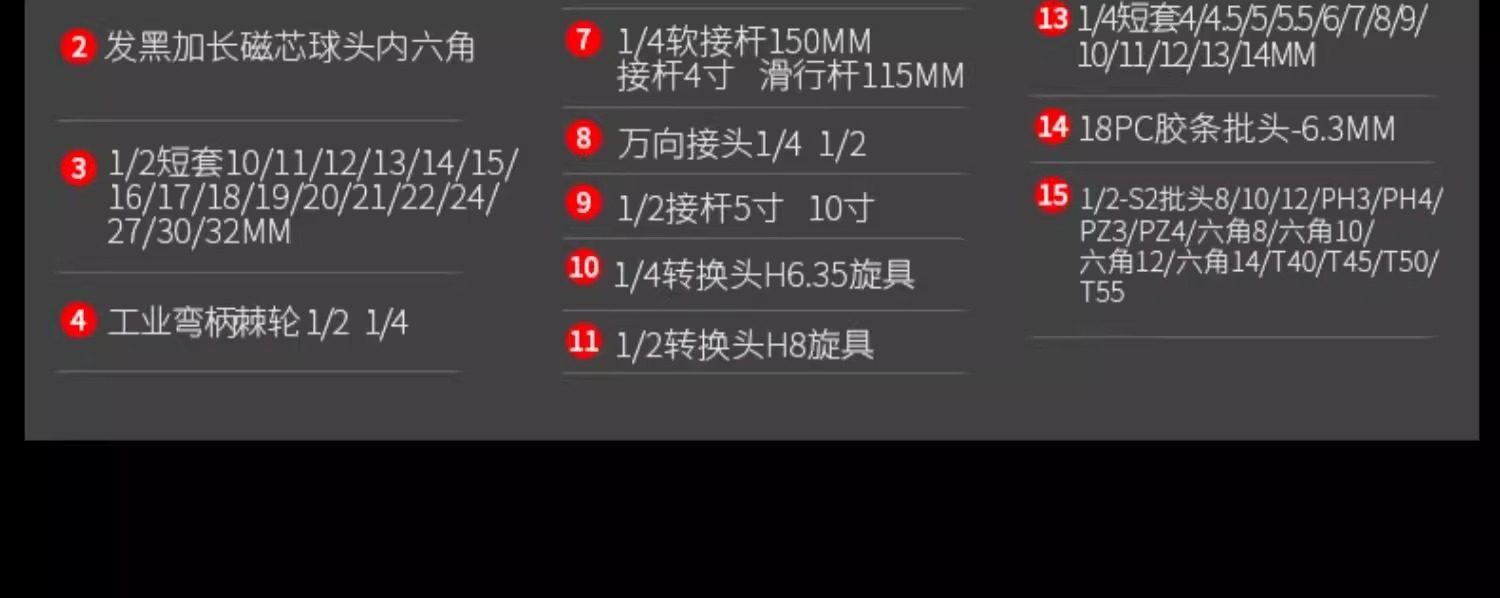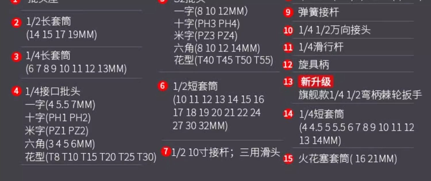 颜色分类 【德国品质⭐质量保障⭐用坏包退】,活动款直柄46件套,加强款直柄46件套,⭐【24款升级】直柄48件套,⭐【S2款】直柄46件套,加强款直柄56件套,加强款直柄62件套,升级72齿弯柄汽修46件套,升级72齿弯柄汽修47件套,升级72齿弯柄汽修53件套,升级72齿弯柄汽修32件套,升级72齿弯柄汽修37件套,⭐【升级棘轮款】72齿弯柄汽修37件套,升级72齿弯柄汽修44件套,升级72齿弯柄汽修61件套,升级72齿弯柄汽修82件套,升级72齿弯柄汽修94件套,升级72齿弯柄汽修108件套,升级72齿弯柄汽修121件套,升级72齿弯柄汽修150件套,【旗舰款】72齿弯柄汽修46件套,【旗舰款】72齿弯柄汽修47件套,【旗舰款】72齿弯柄汽修53件套,【旗舰款】72齿弯柄汽修32件套,【旗舰款】72齿弯柄汽修37件套,【旗舰款】72齿弯柄汽修44件套,【旗舰款】72齿弯柄汽修61件套,【旗舰款】72齿弯柄汽修82件套,【旗舰款】72齿弯柄汽修94件套,【旗舰款】72齿弯柄汽修108件套,【旗舰款】72齿弯柄汽修121件套,【旗舰款】72齿弯柄汽修150件套,【4S款防掉】72齿弯柄40件套,【4S款防掉】72齿弯柄98件套,【4S款防掉】72齿弯柄121件套,【4S款防掉】72齿弯柄128件套,【4S款防掉】72齿弯柄192件套,【4S款防掉】192件+电钻套装,【4S款防掉】72齿弯柄210件套,【4S款防掉】210件+电钻套装,【4S款防掉】128件+⭐扭力扳手,【4S款防掉】210件+⭐扭力扳手,【4S款防掉】72齿弯柄255件套