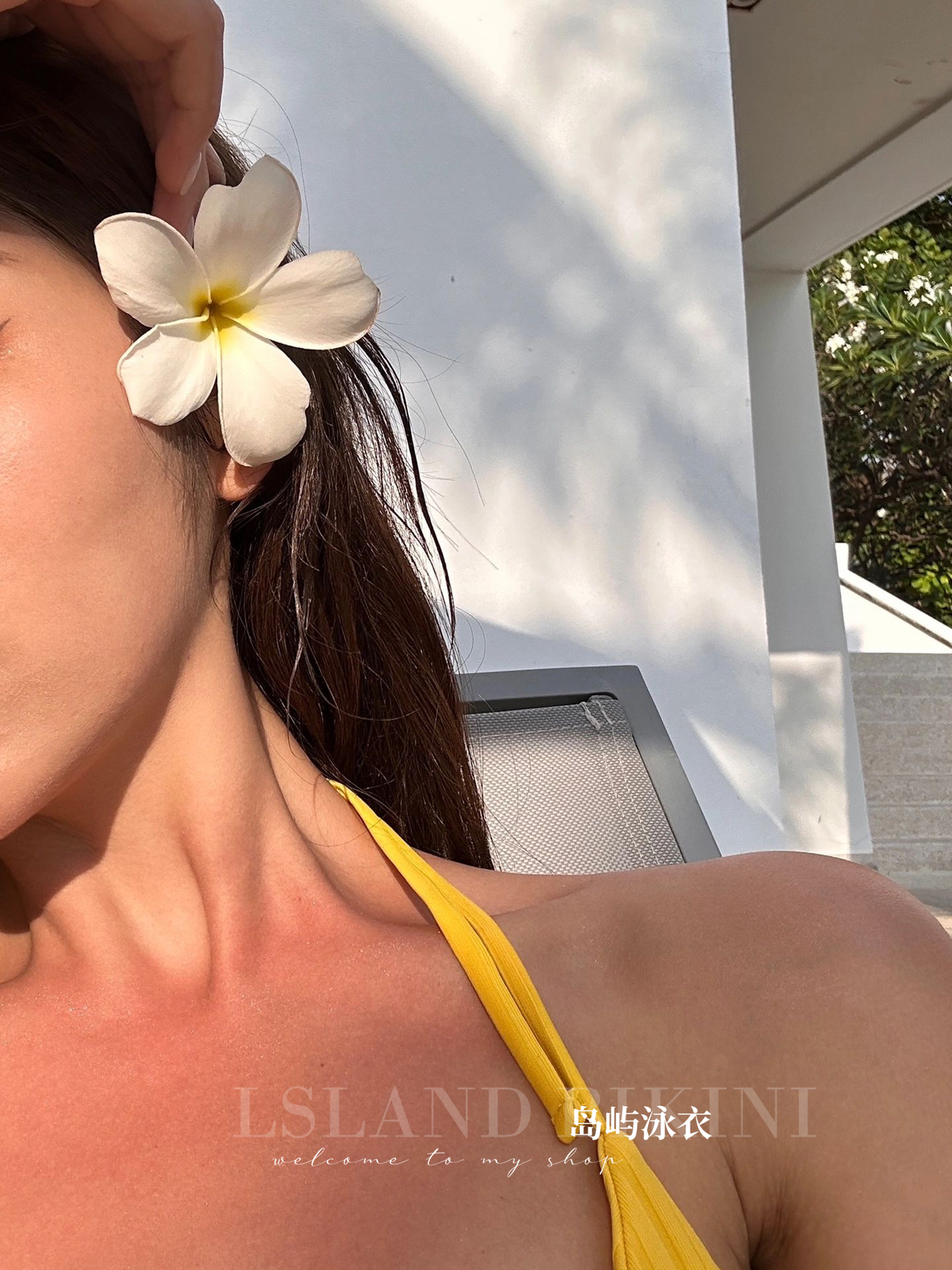 Island Swimwear for Women 2025 Summer New Sexy Ribbed Bikini Small Bust Push-Up Two-Piece Beach Vacation Swimwear