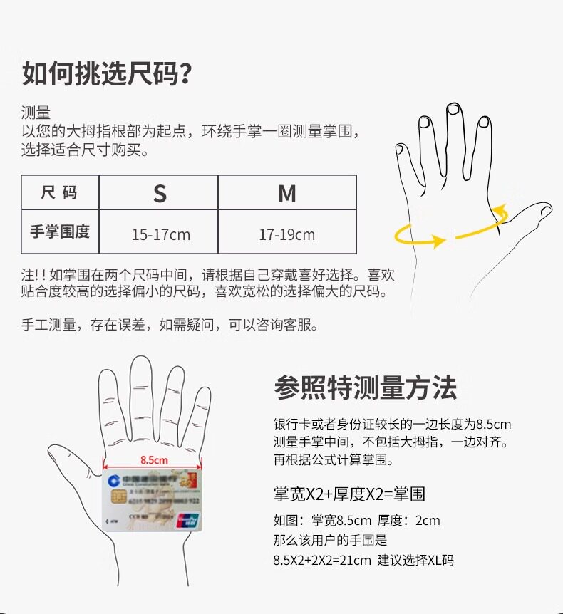 Размер S (подходит для окружности ладони 15-17 см),М (подходит для окружности ладони 17-19 см)