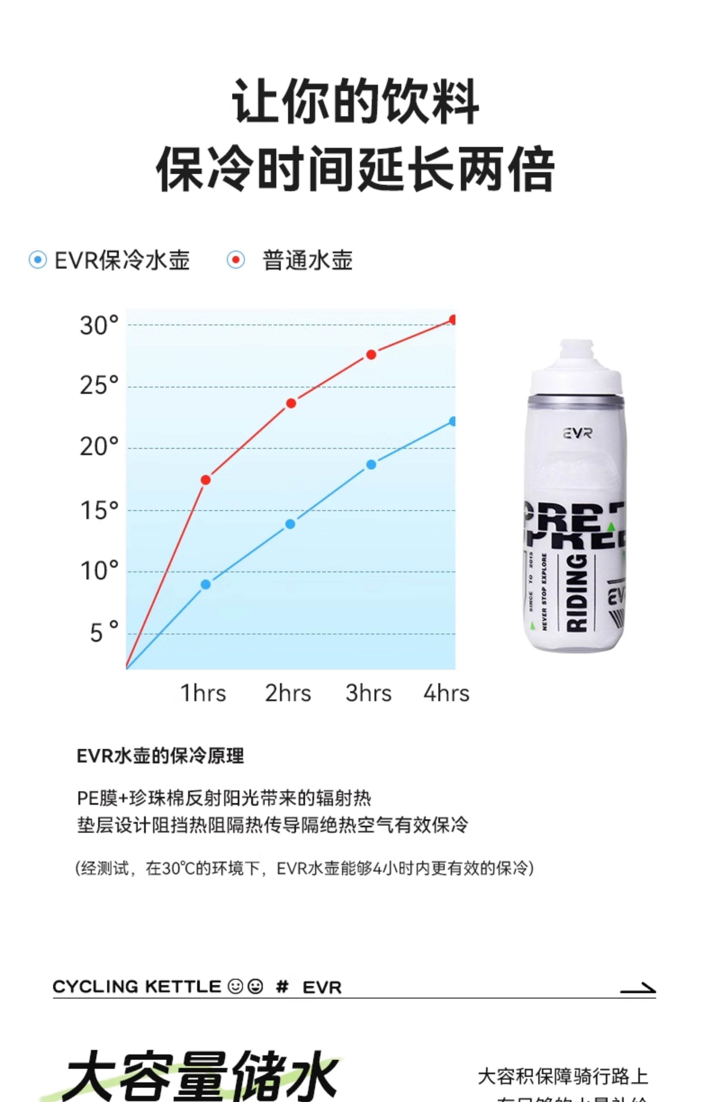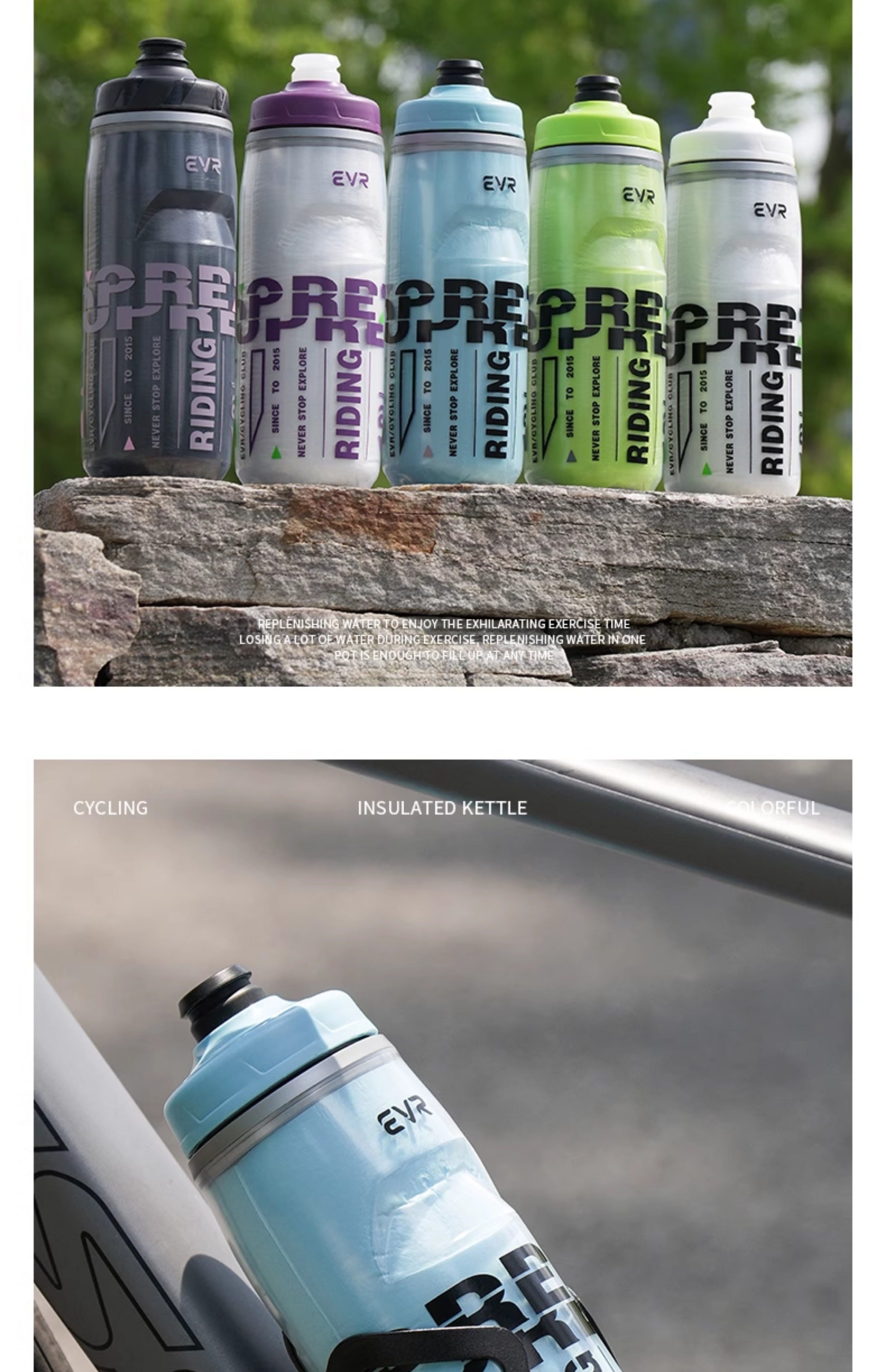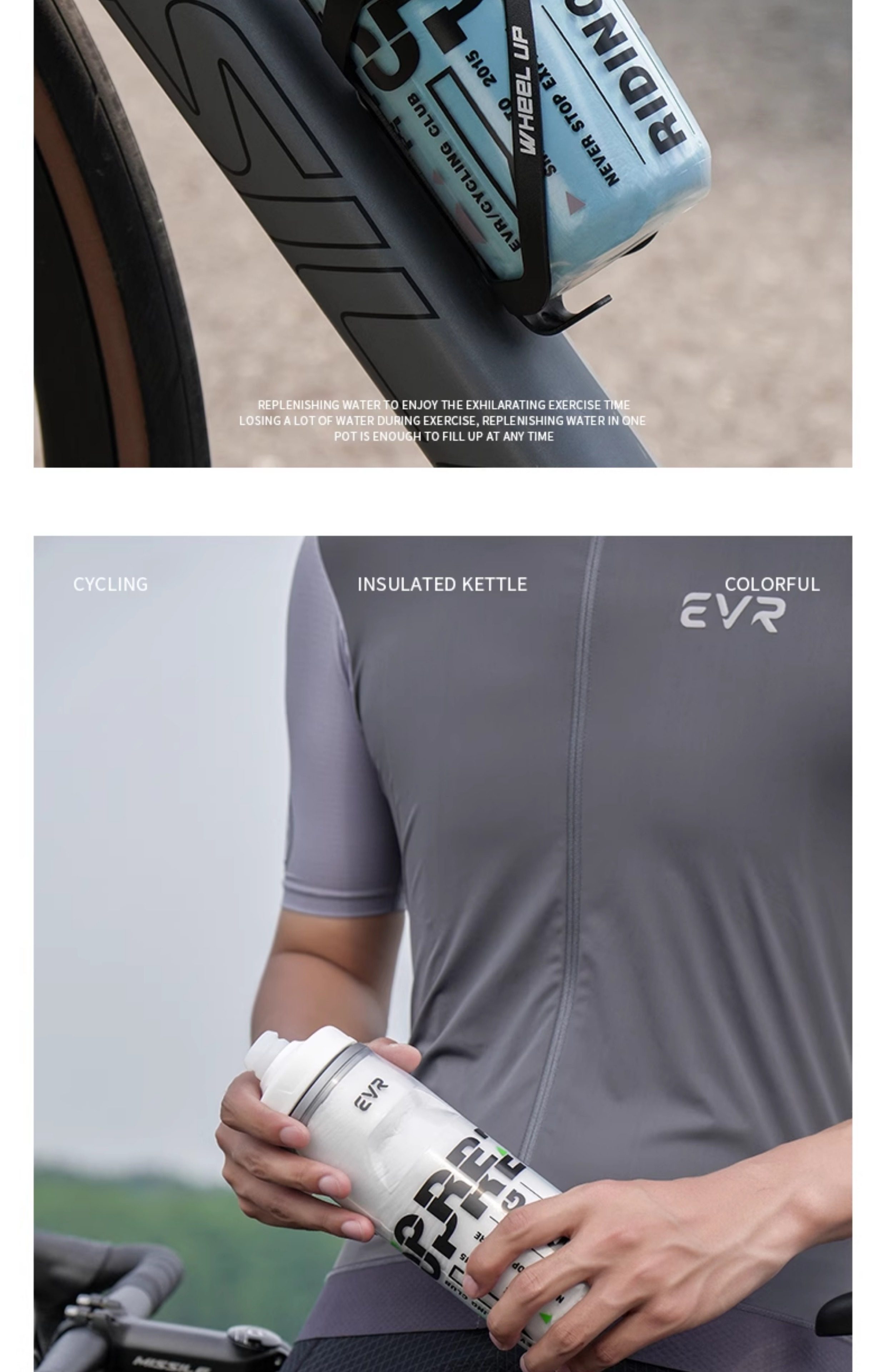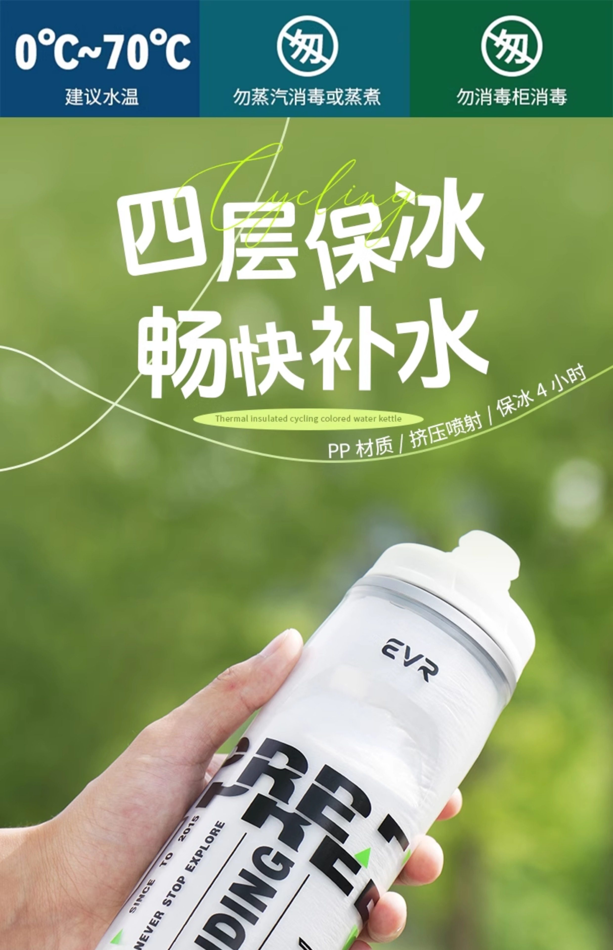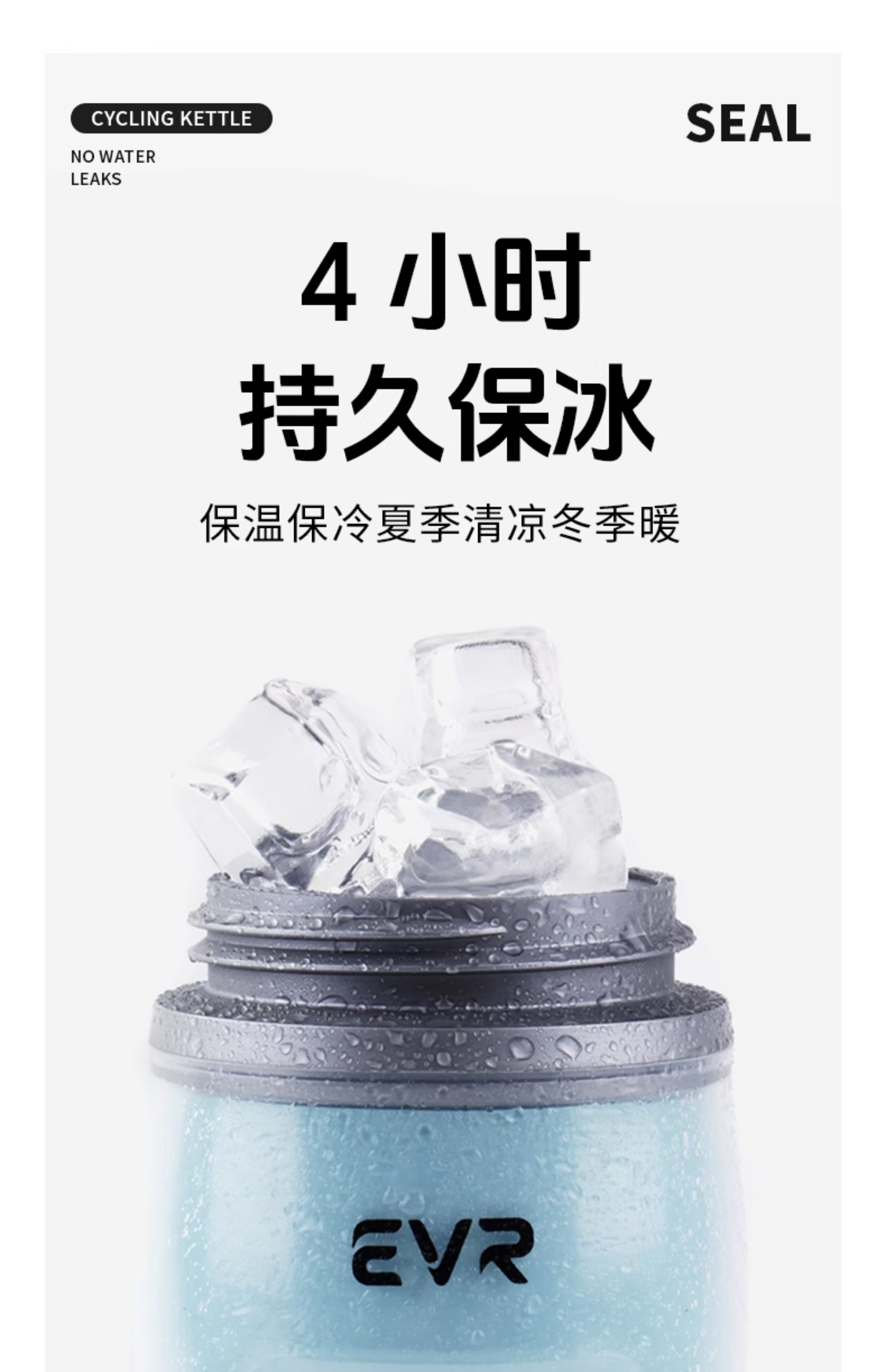 Evr Insulated Bicycle Water Bottle, Cold-Keeping Road Bike Sports Water Cup, Summer Men's and Women's Ice Squeeze Large Capacity
