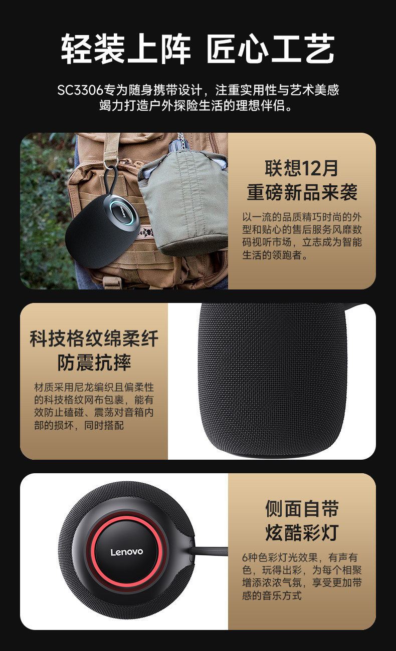 Lenovo sc3306 high-quality bluetooth audio subwoofer small speaker portable outdoor birthday gift for boys