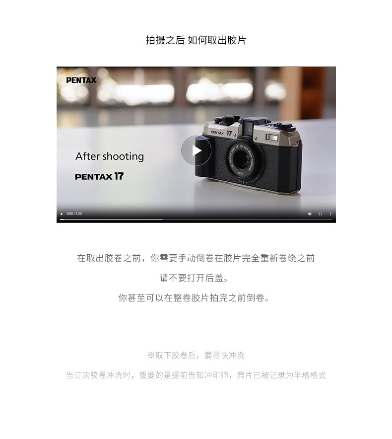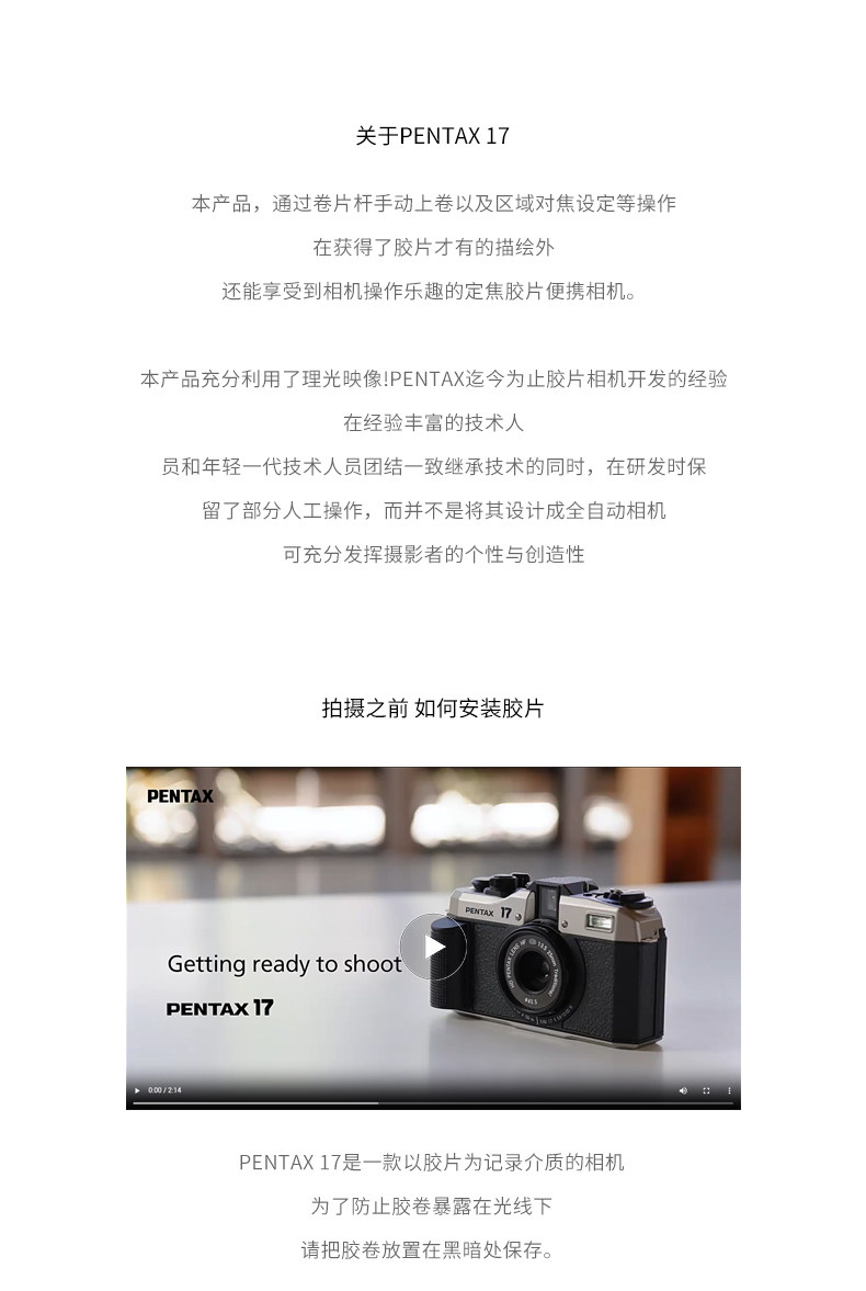 宾得 PENTAX 17 胶片相机 全新半格胶卷相机 复古老式手动卷片机
