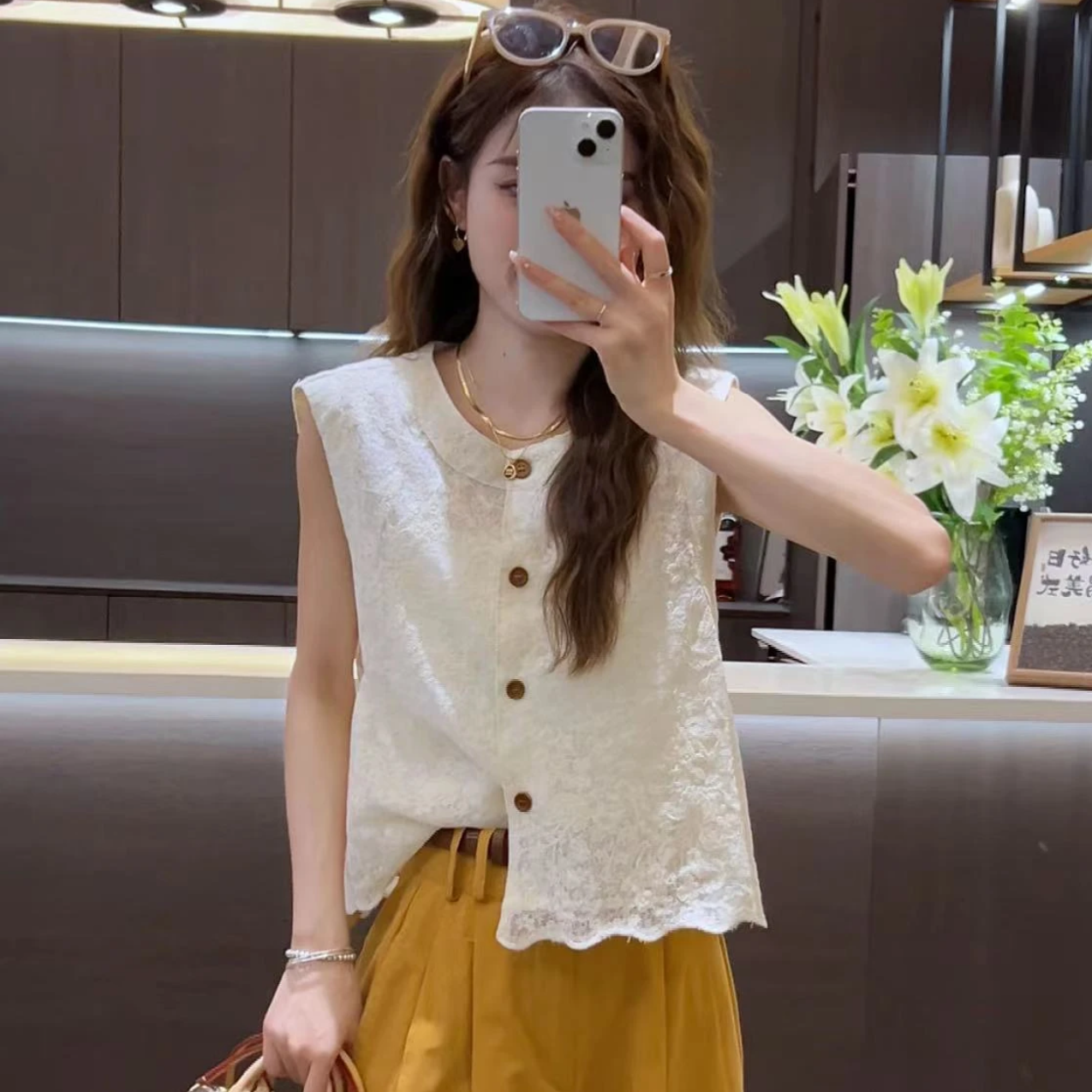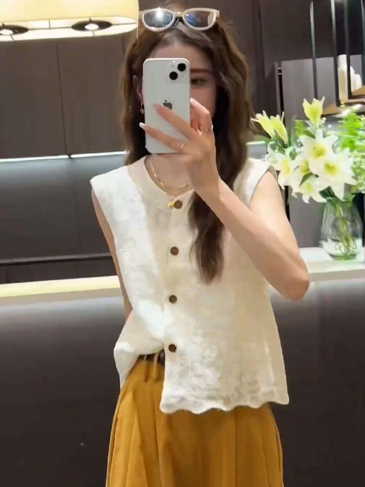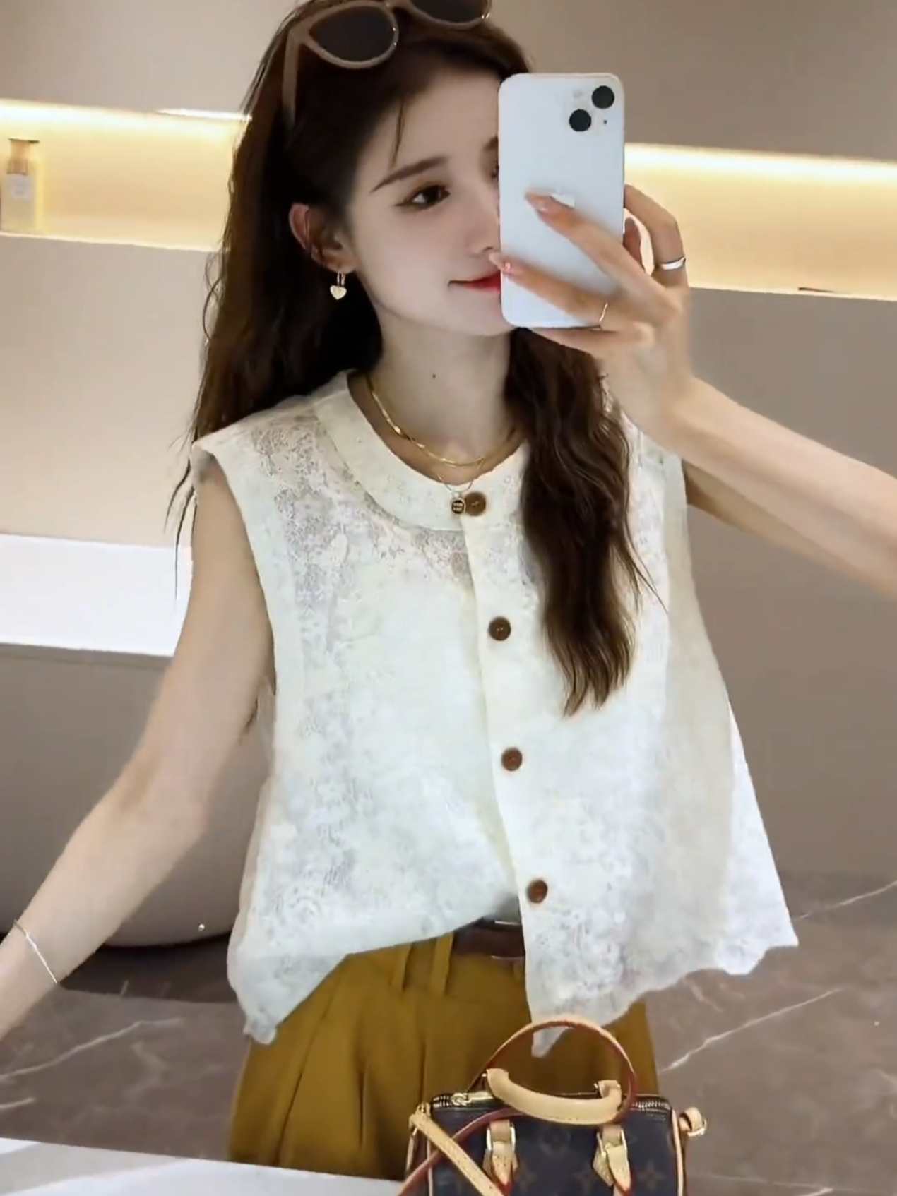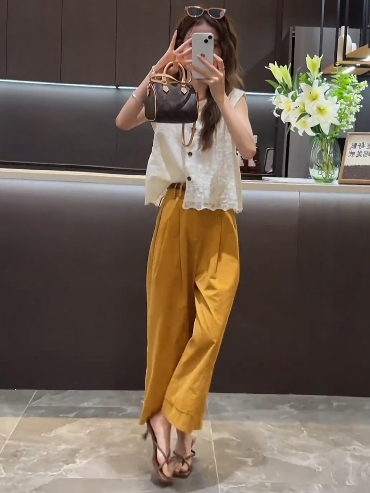 今年流行的夏装套装镂空无袖上衣阔腿裤小个子显高时尚减龄两件套