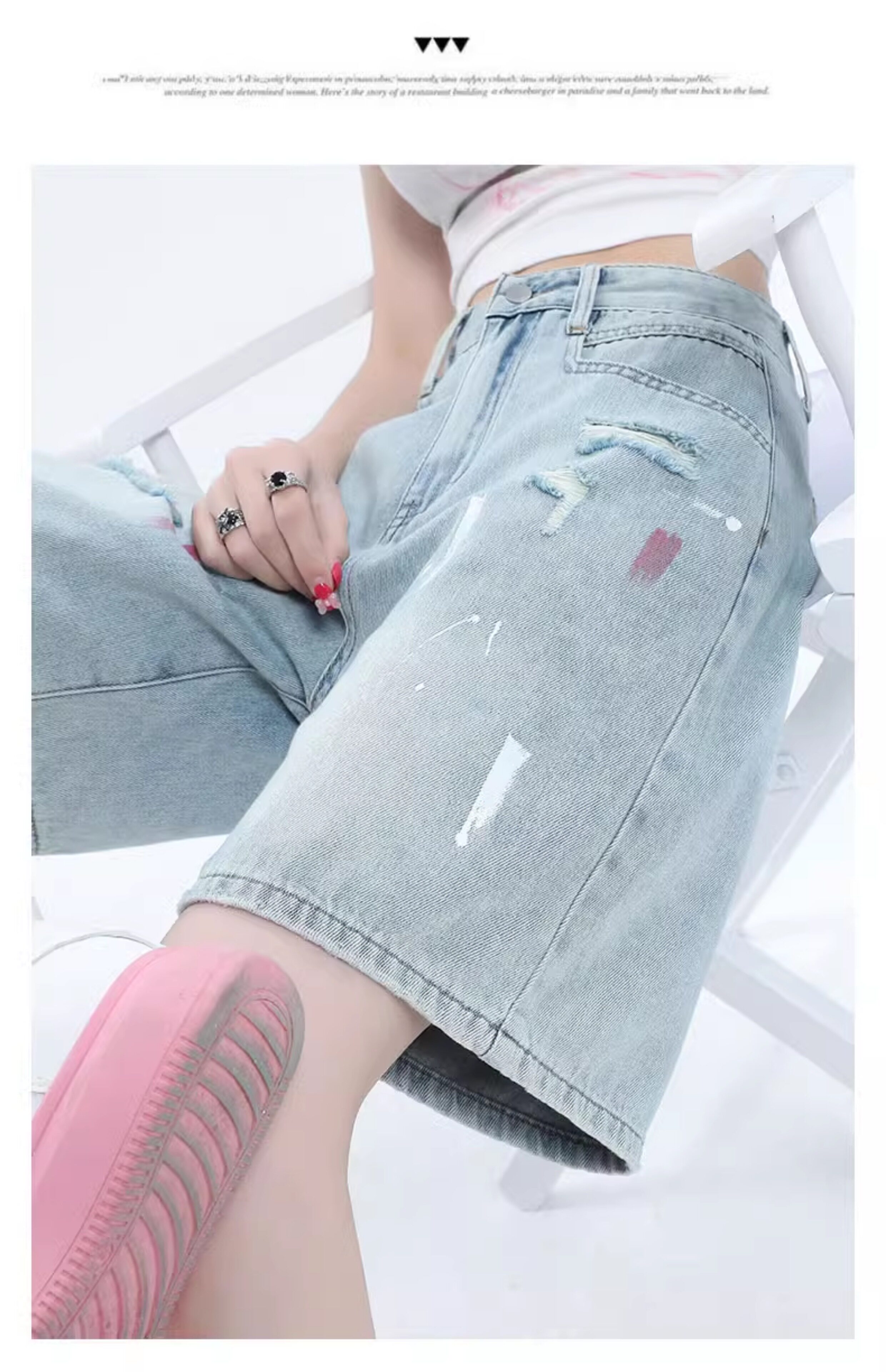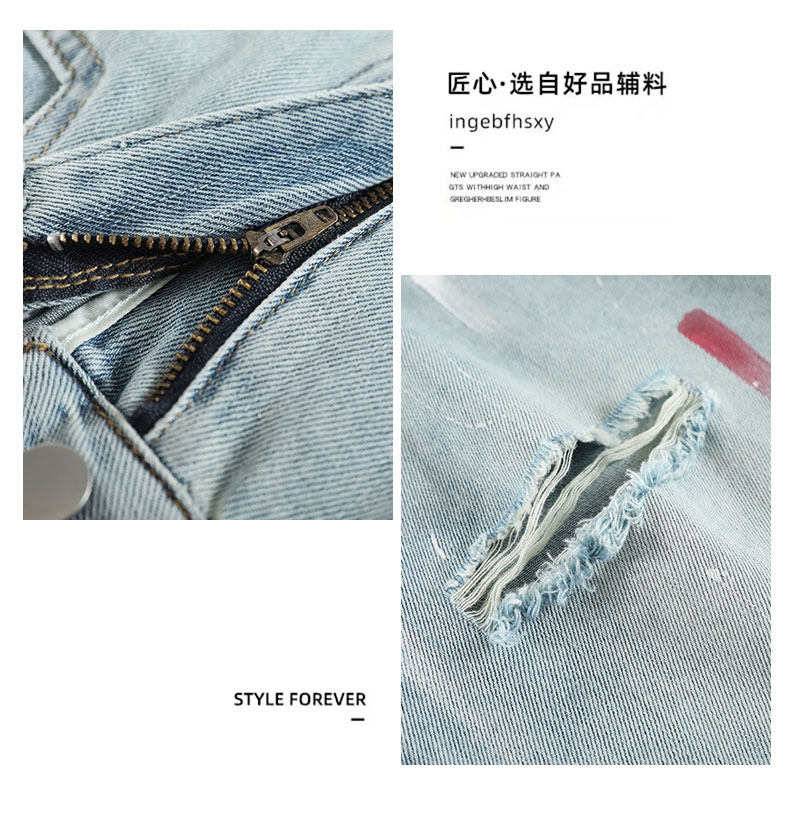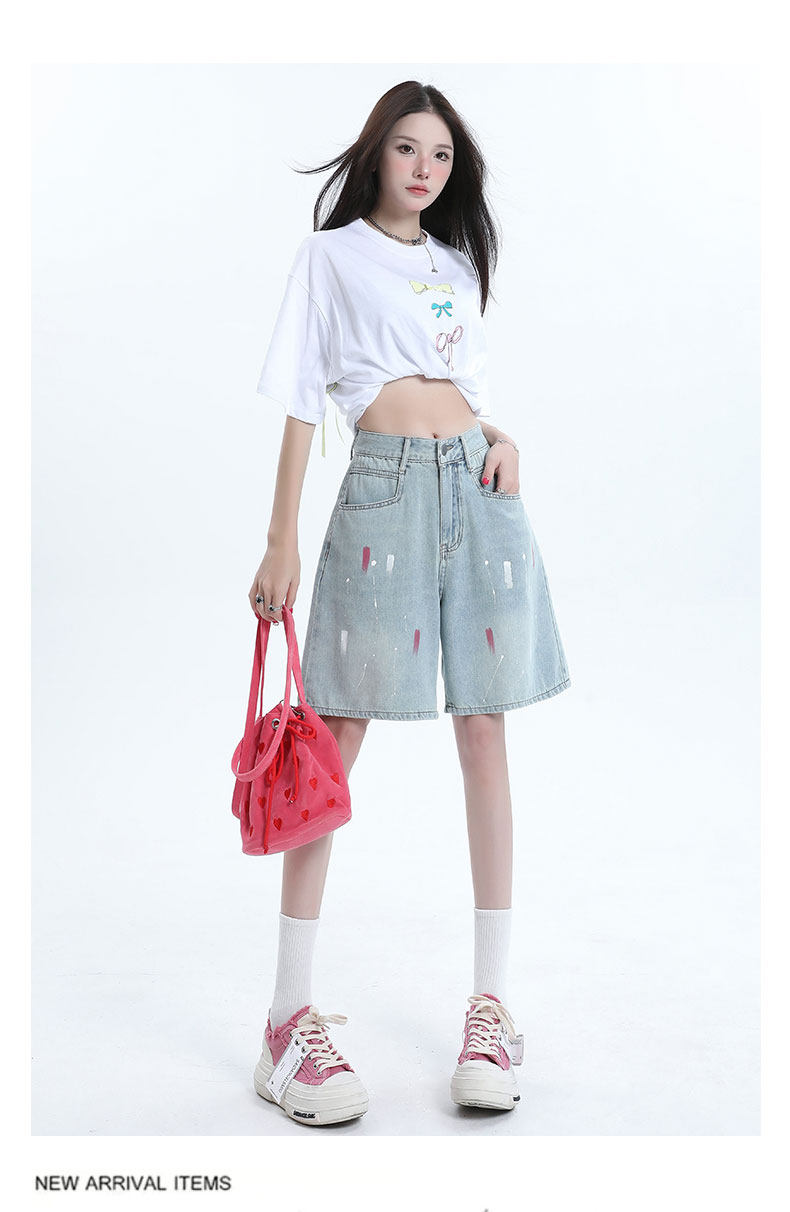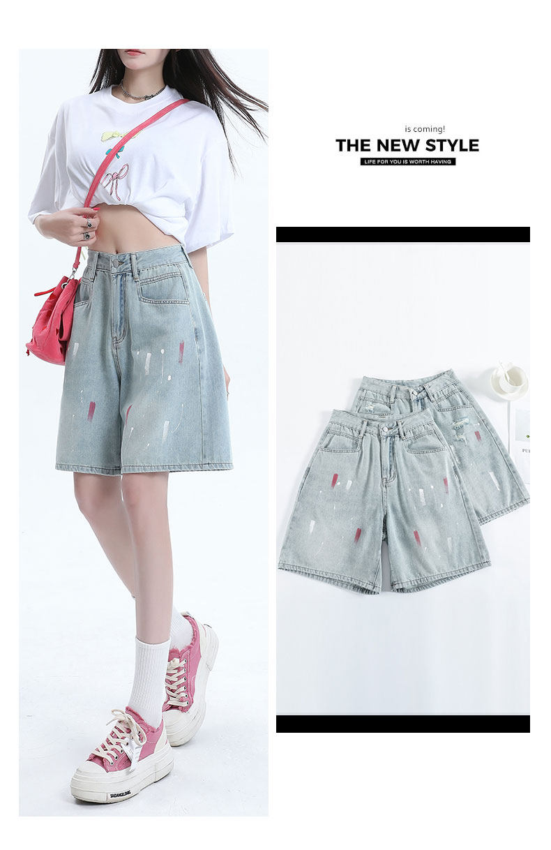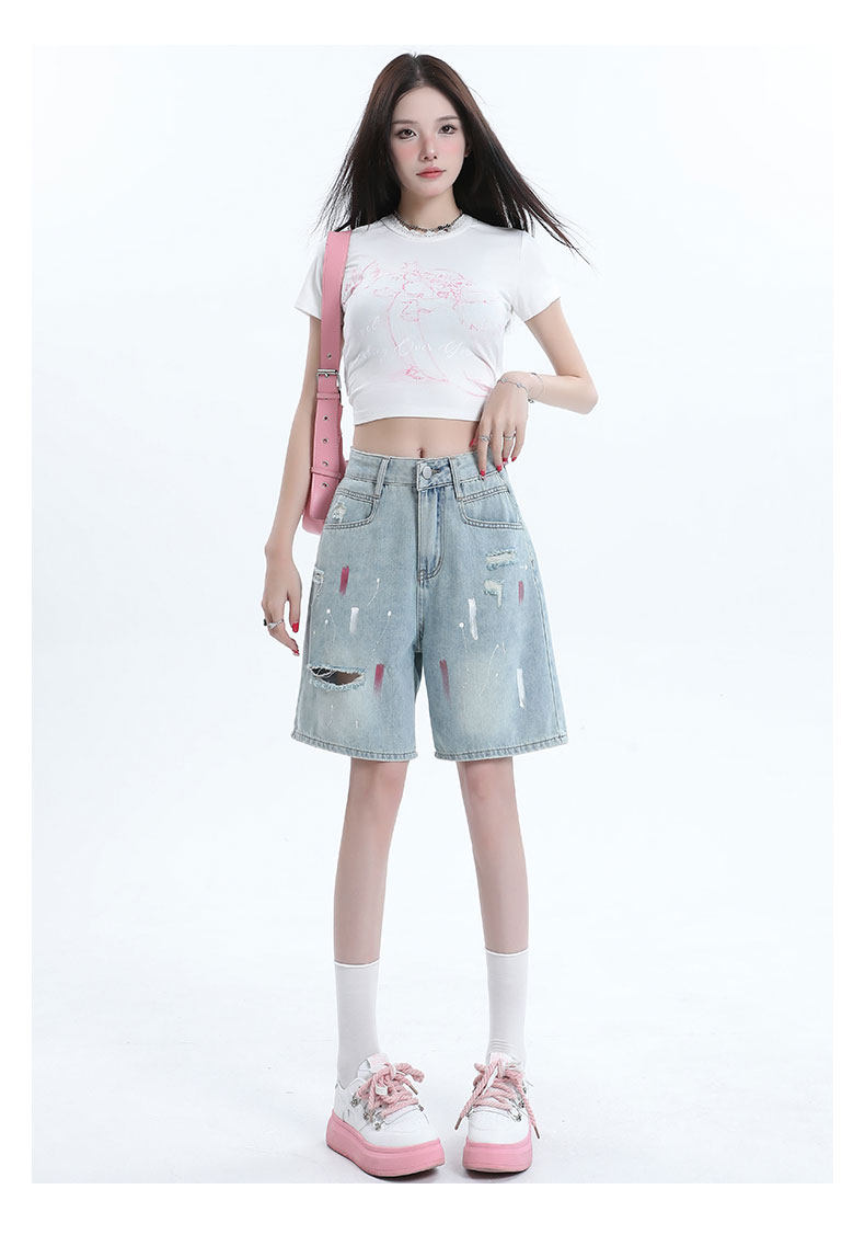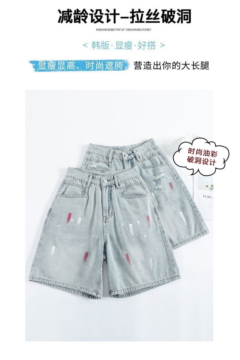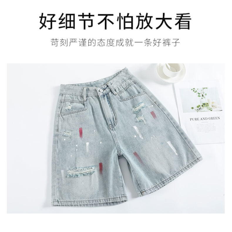 JEANS light-colored ripped denim shorts summer 2025 new oil paint graffiti straight pants