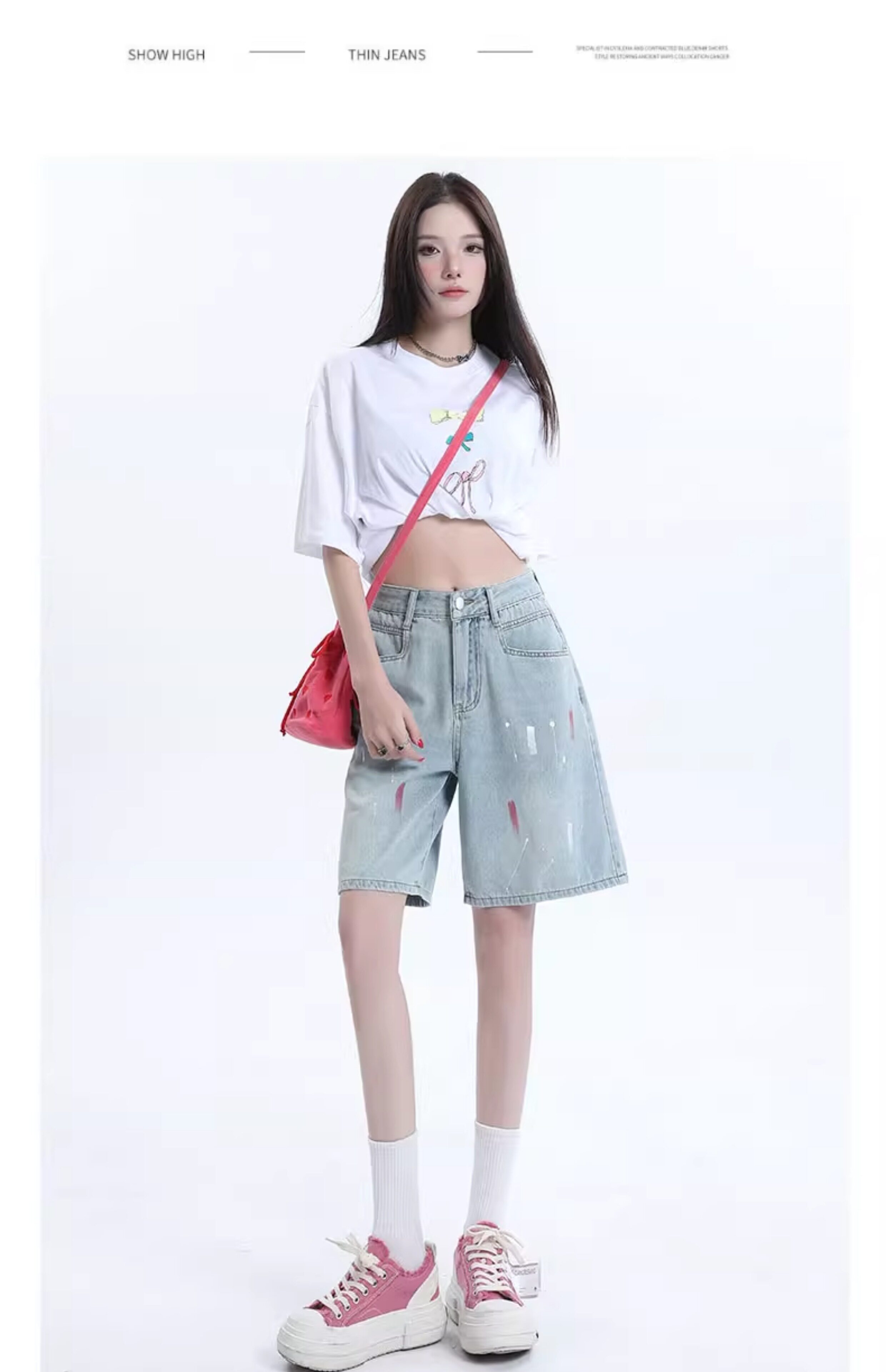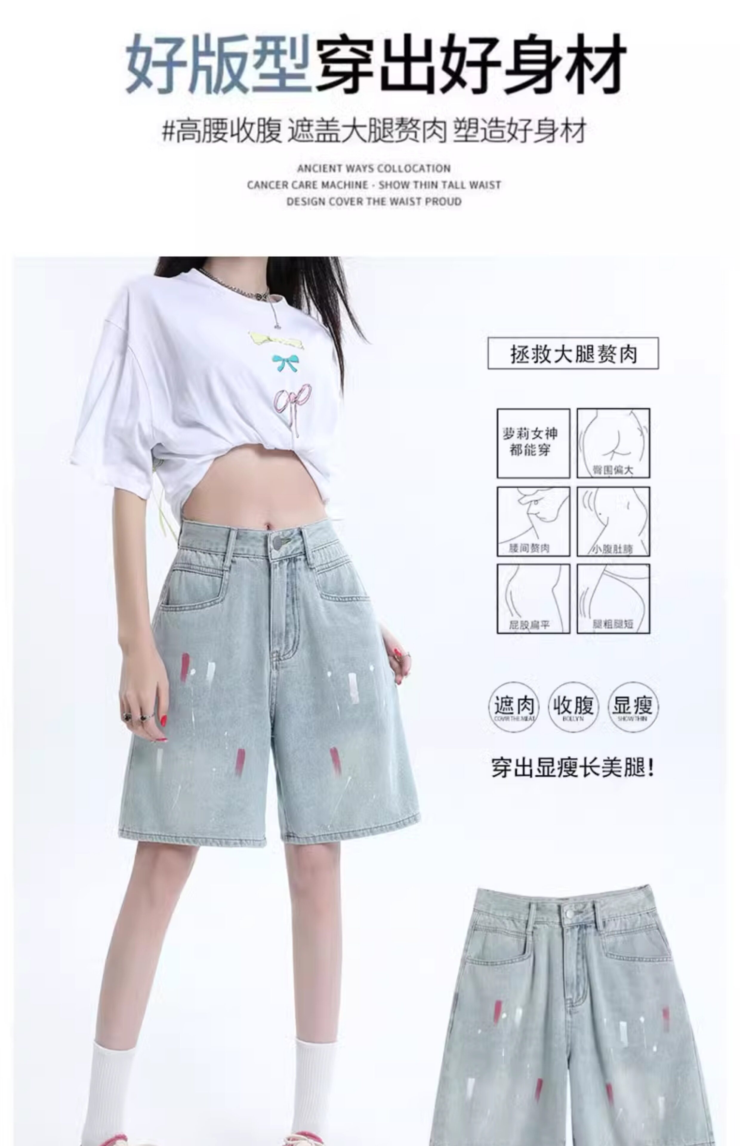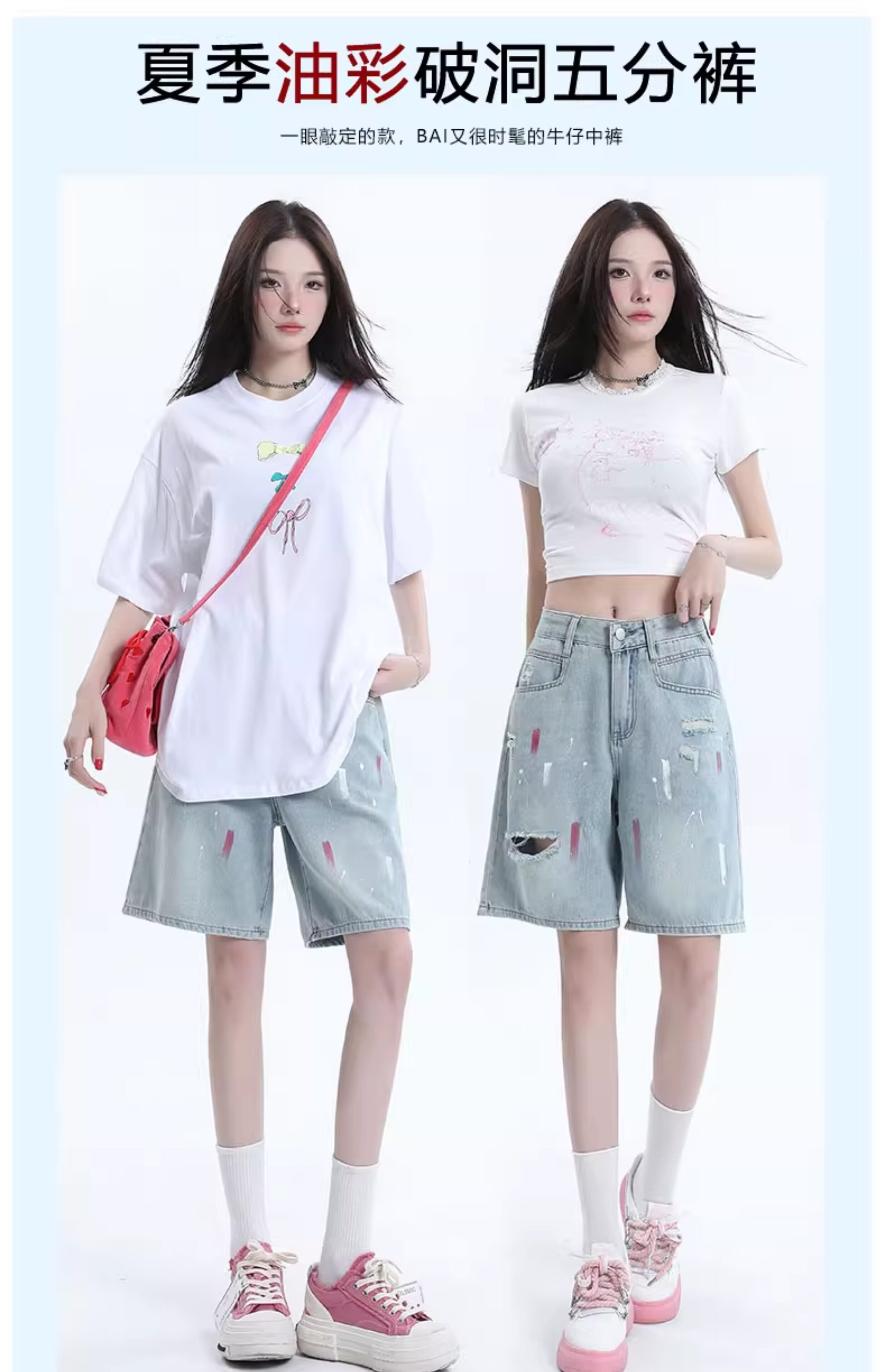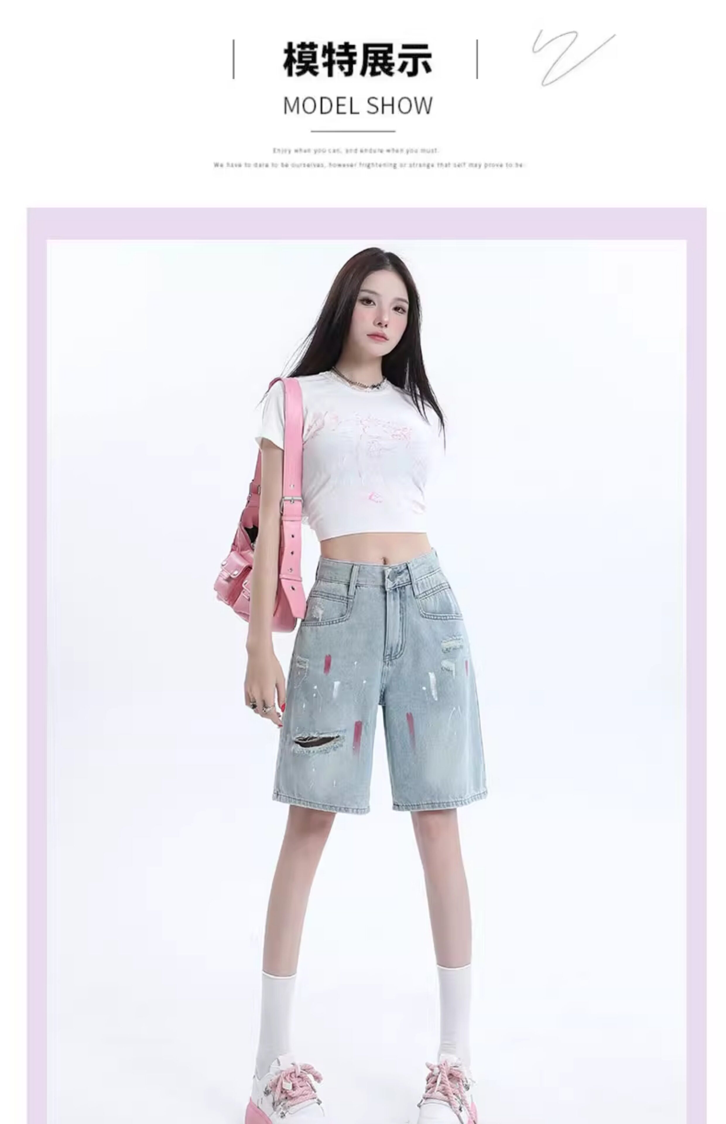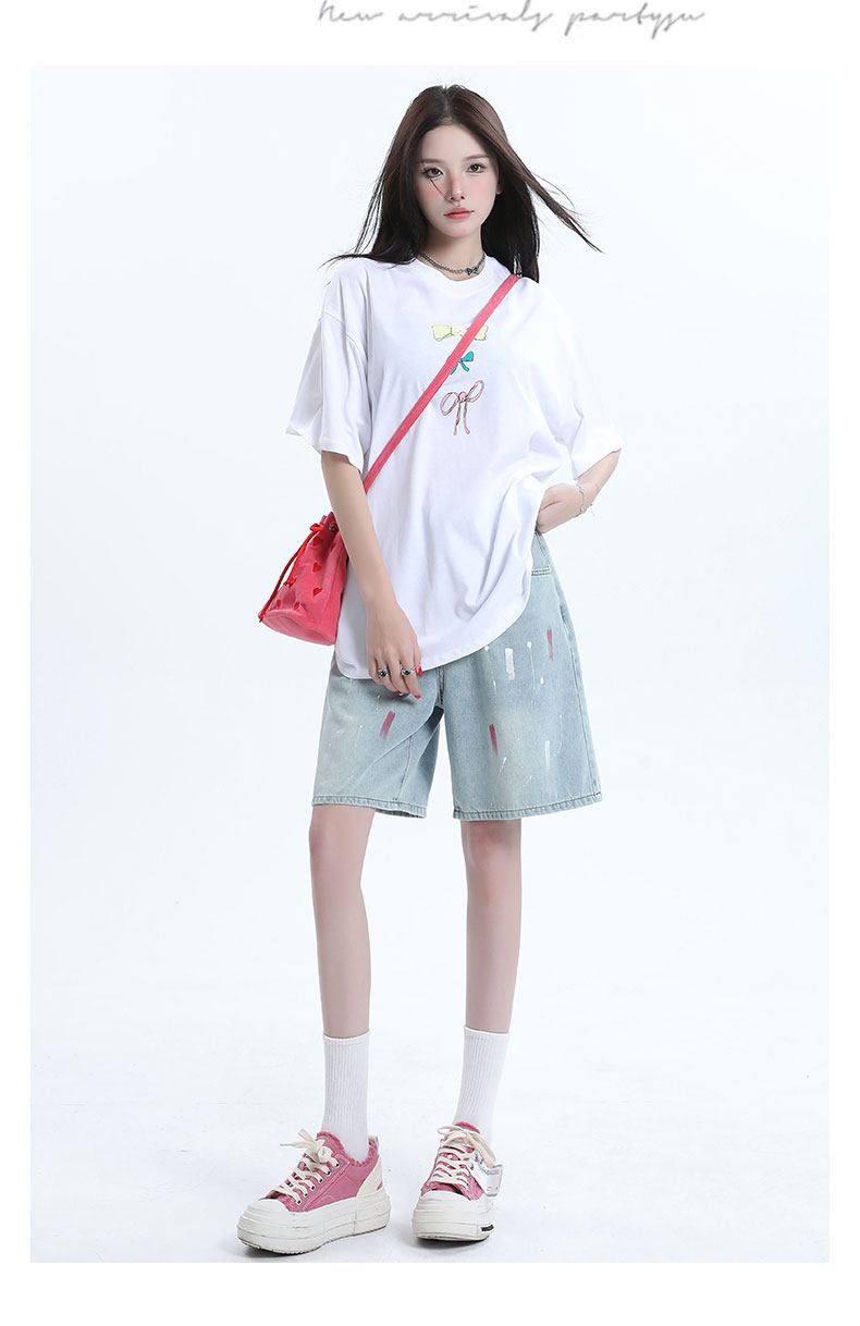 JEANS light-colored ripped denim shorts summer 2025 new oil paint graffiti straight pants