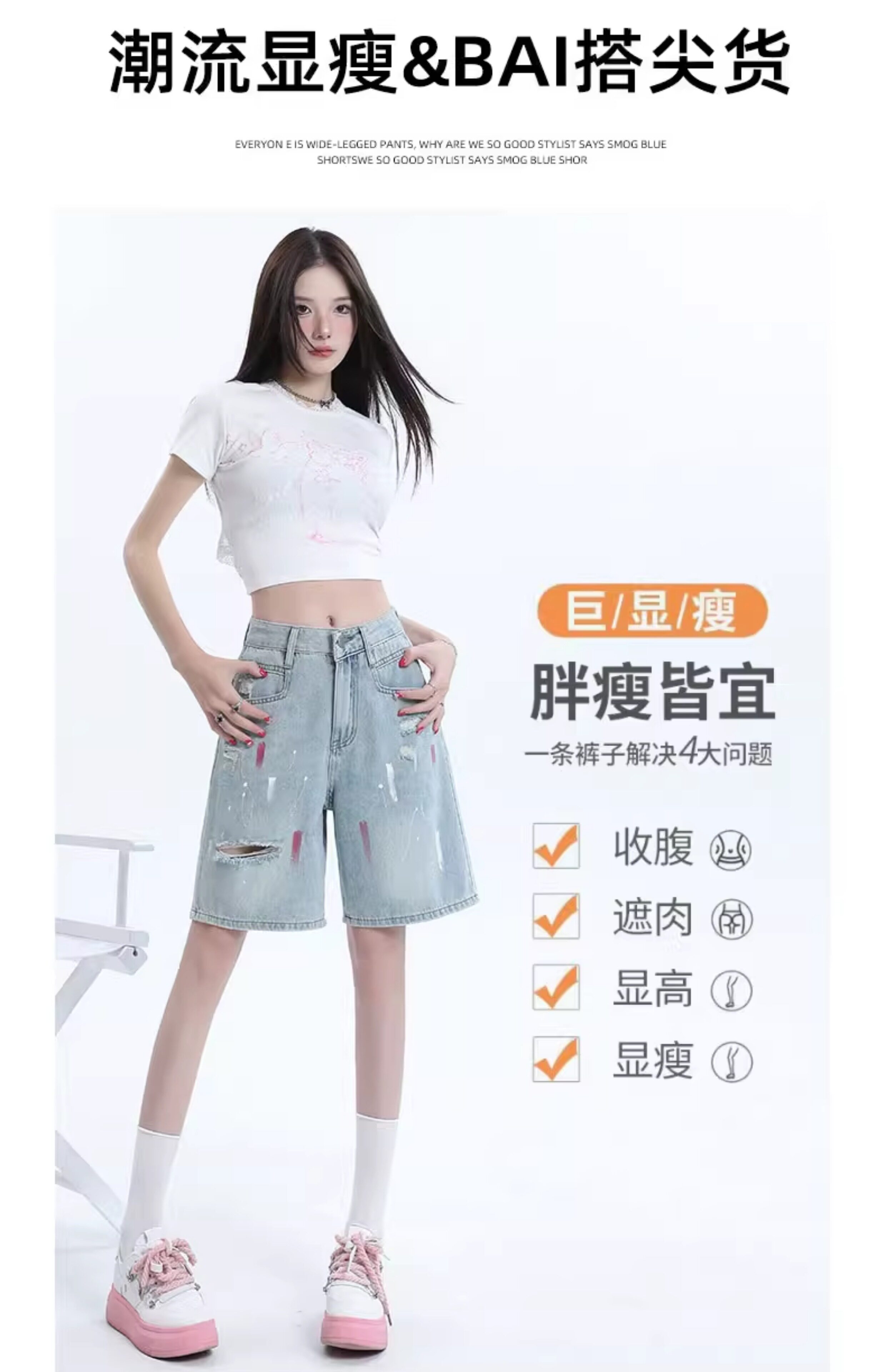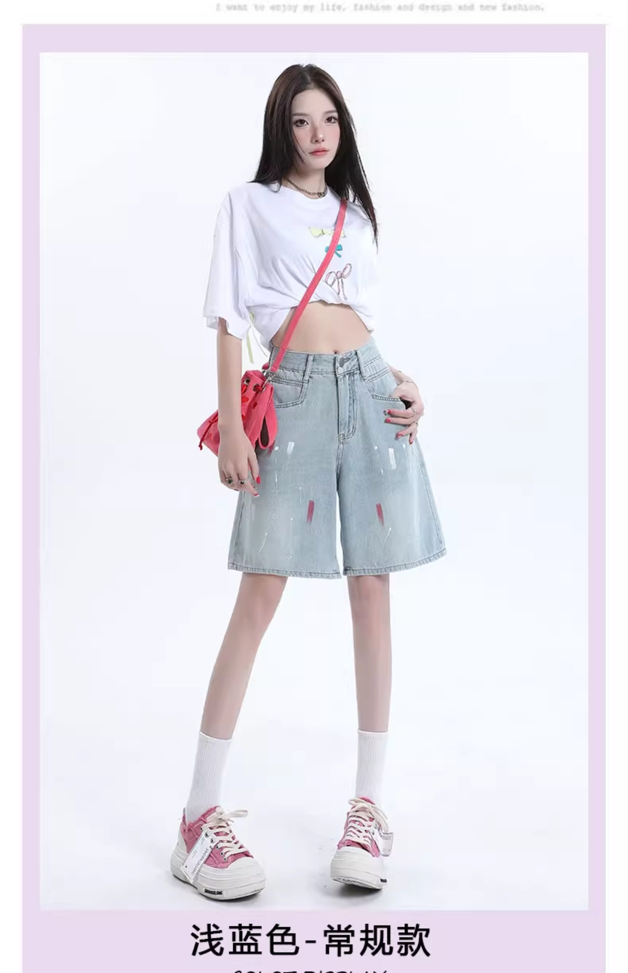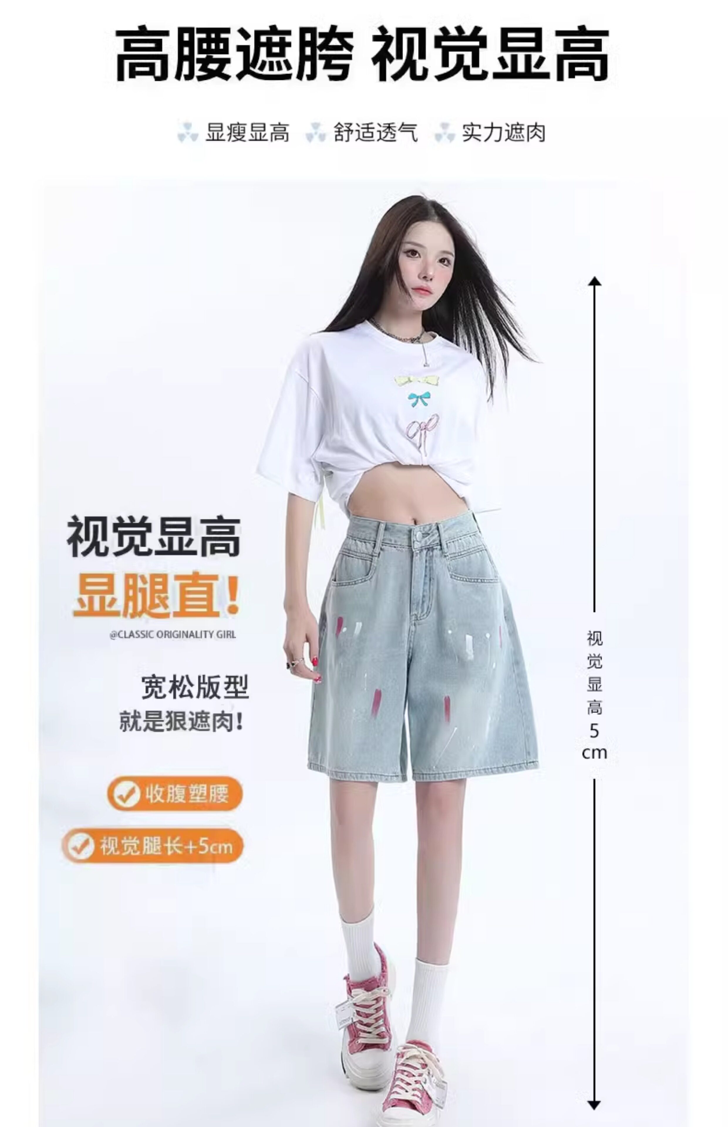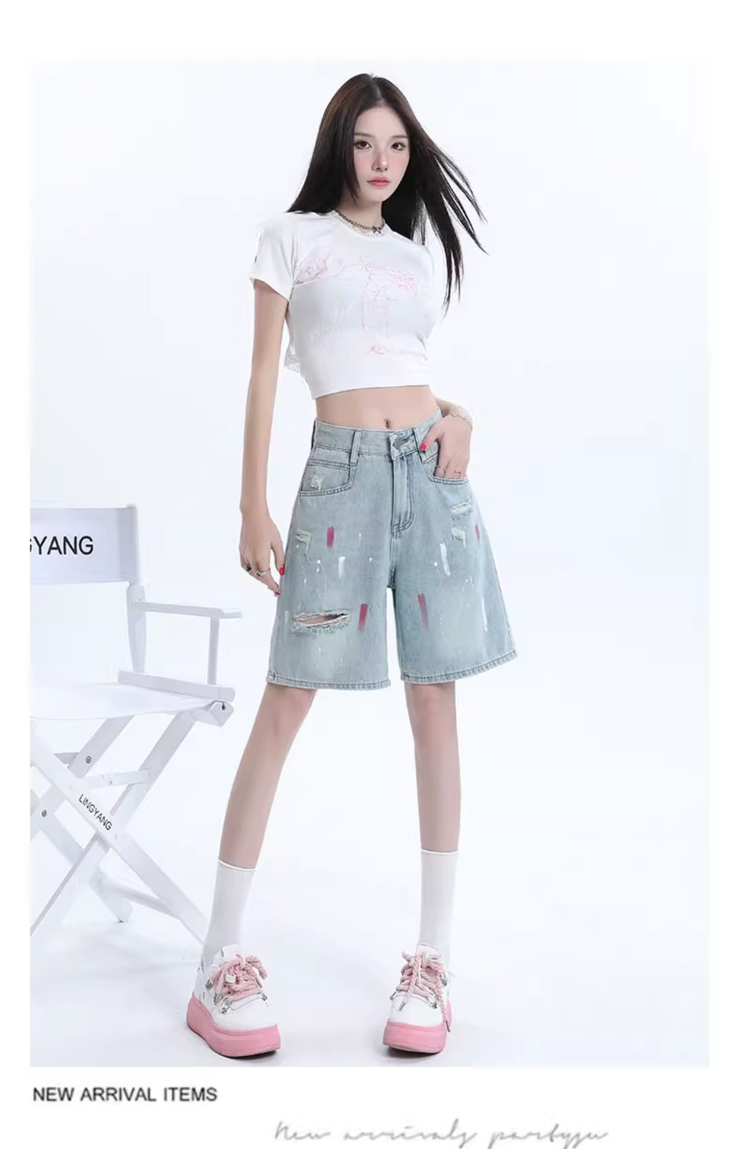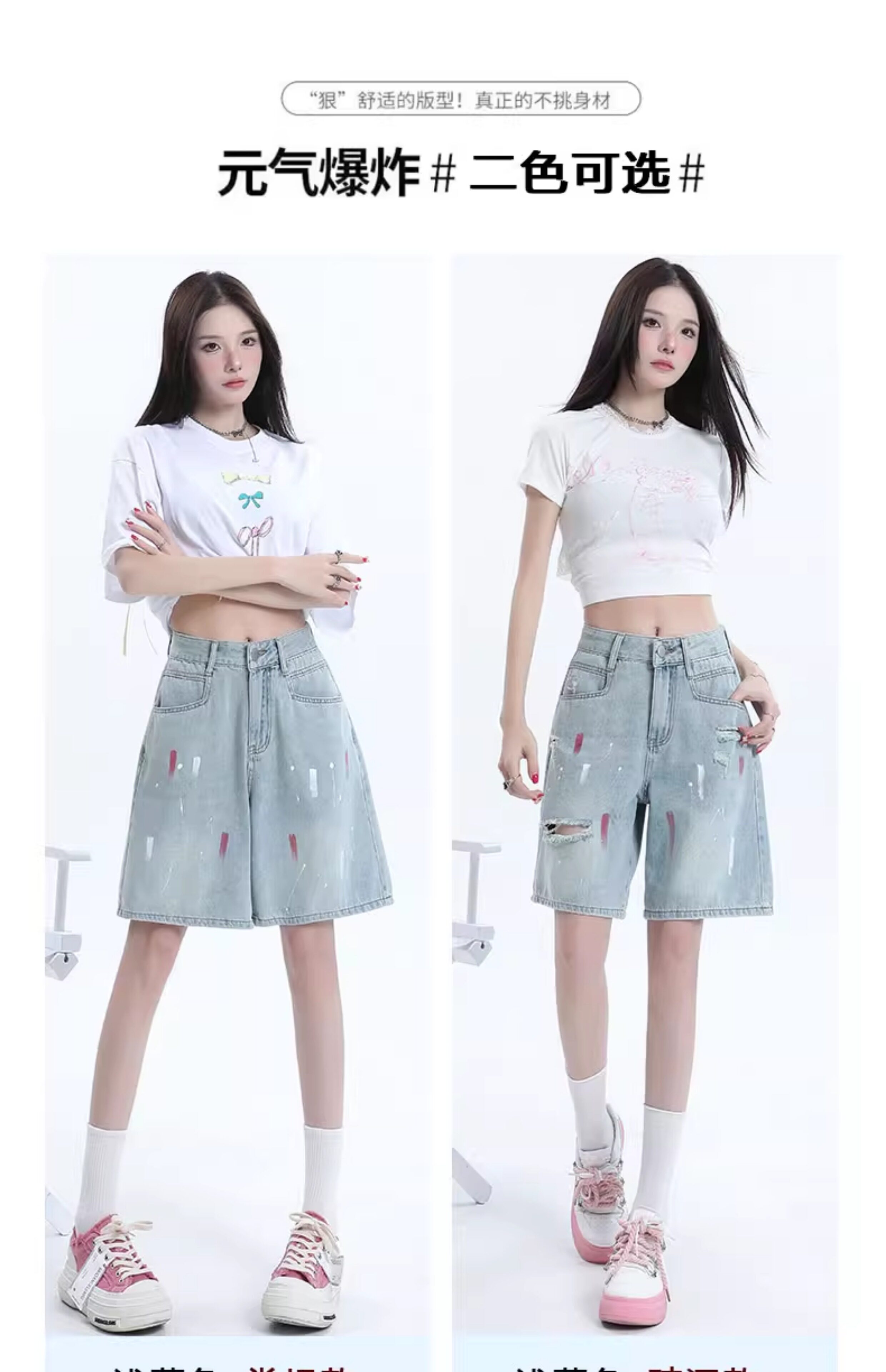 JEANS light-colored ripped denim shorts summer 2025 new oil paint graffiti straight pants
