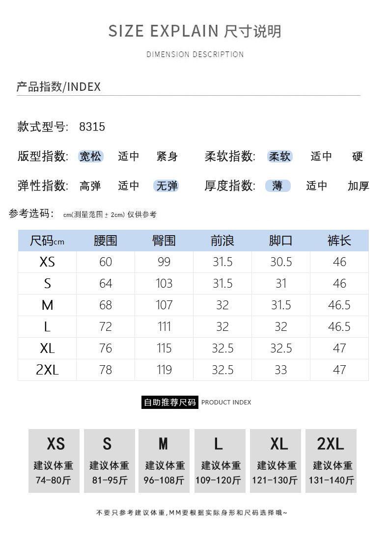 Outseam (cm) 99 cm 101.5 cm 104 cm 106.5 cm 109 cm