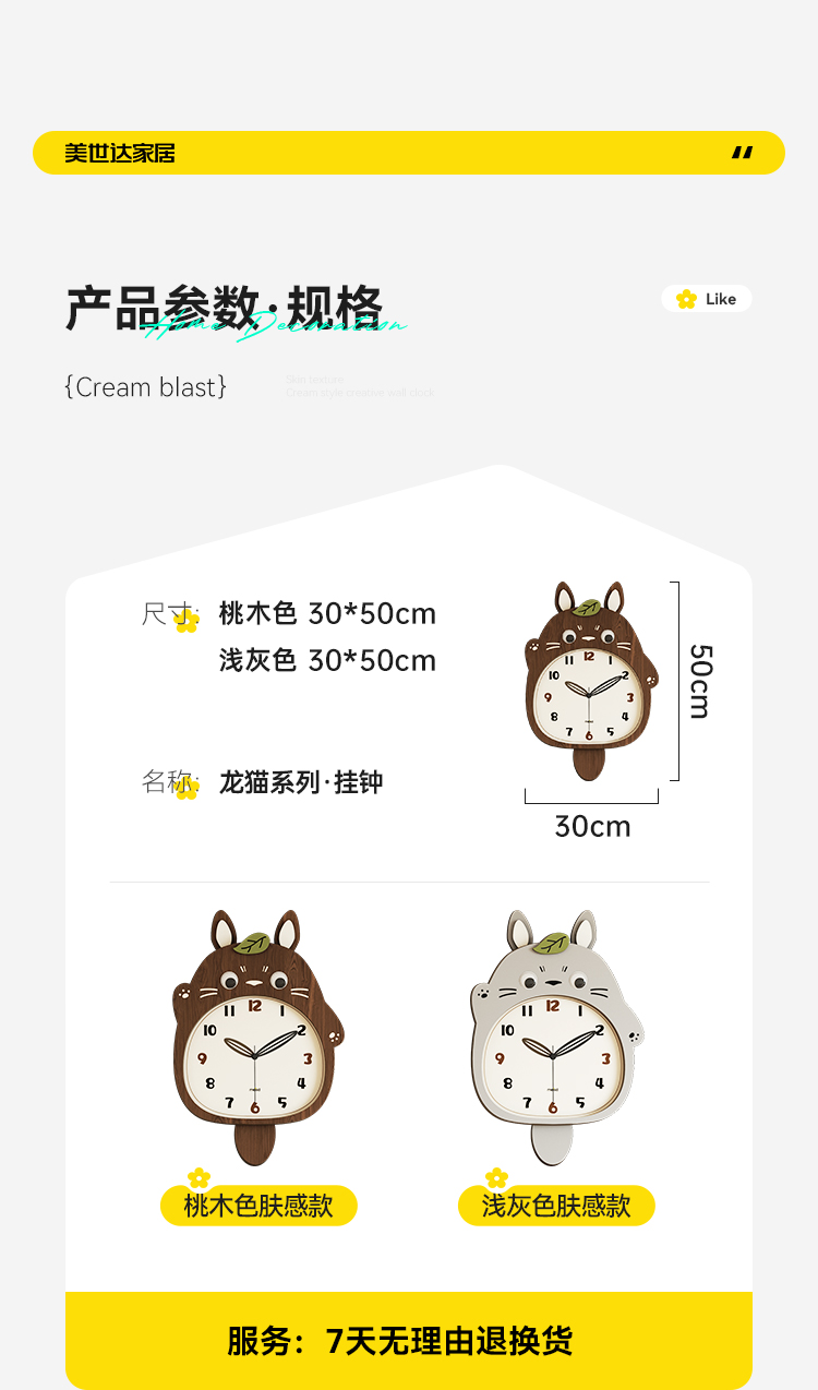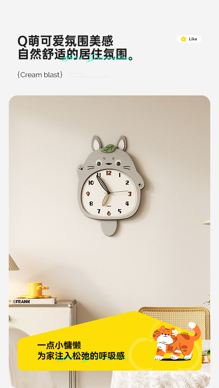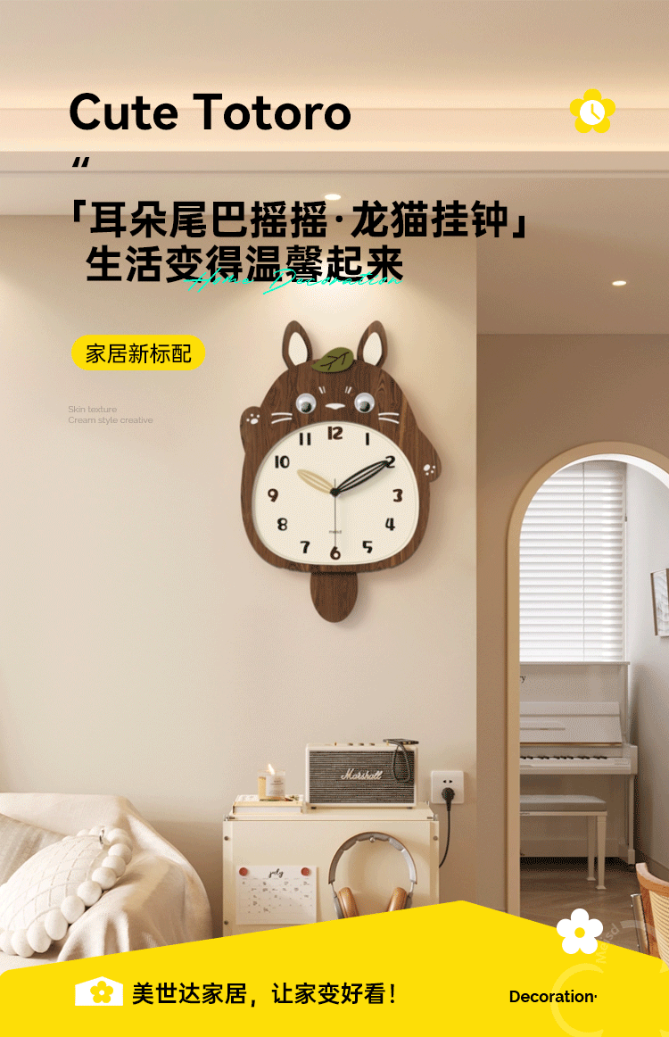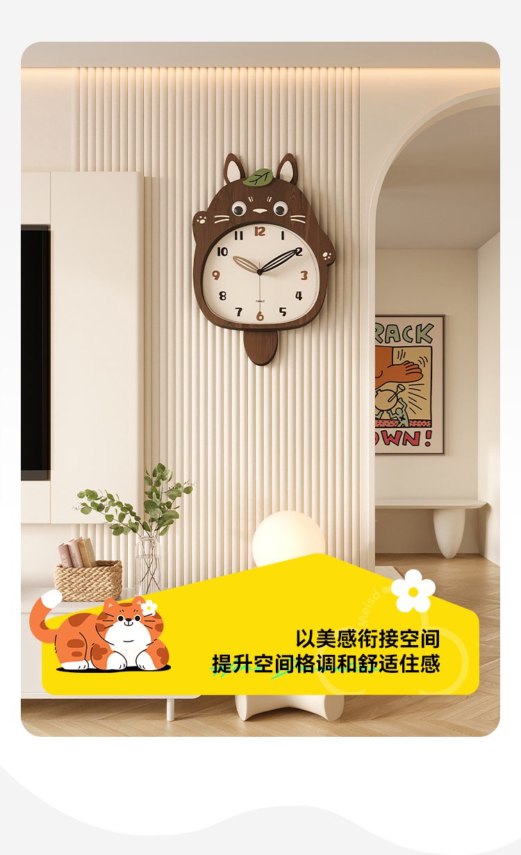 Meishida 2025 New Model Living Room Wall Clock, Natural Wood Creative Totoro Clock, Decorative Silent Home Wall Clock