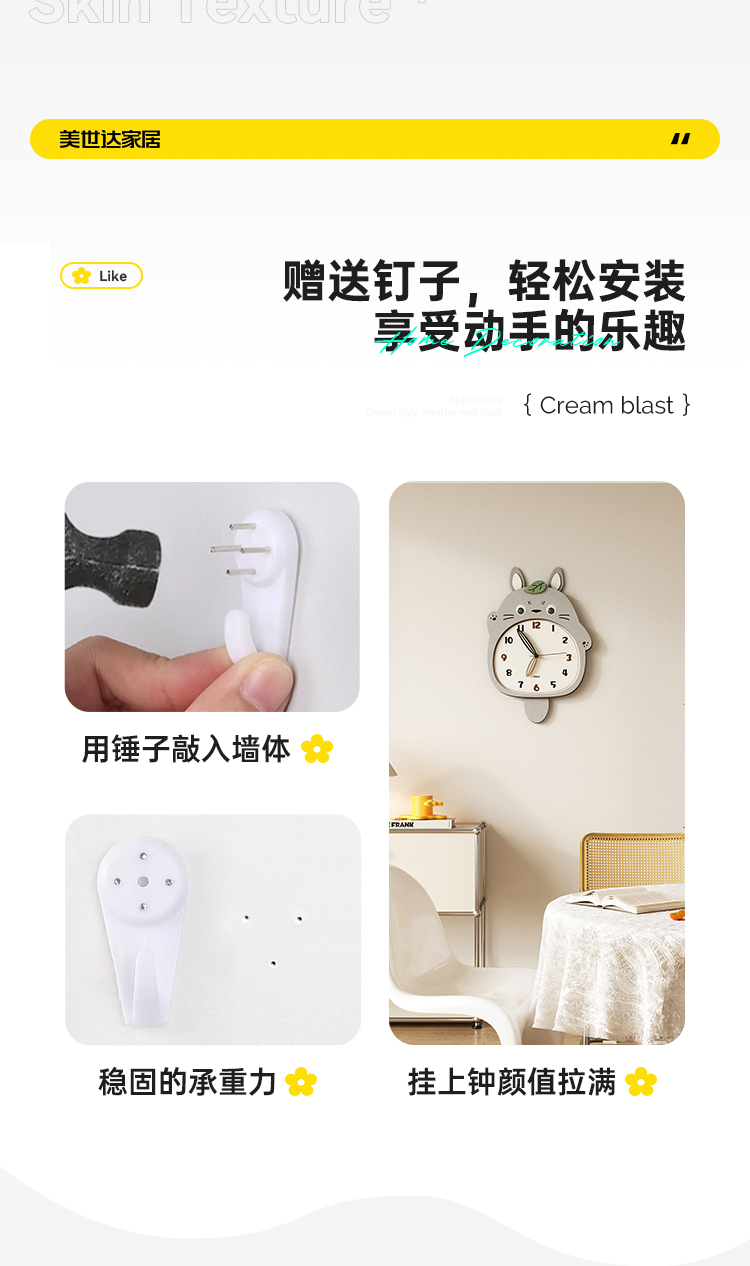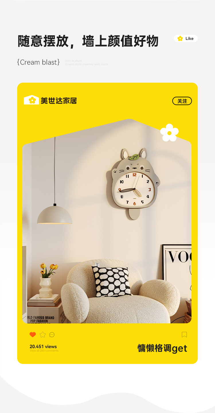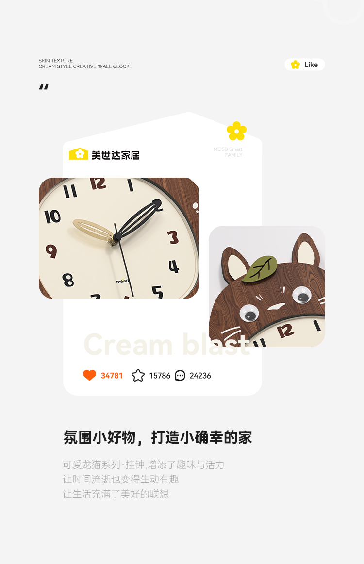Meishida 2025 New Model Living Room Wall Clock, Natural Wood Creative Totoro Clock, Decorative Silent Home Wall Clock