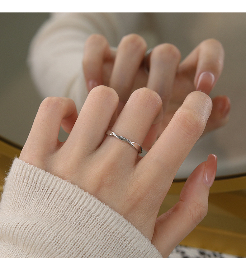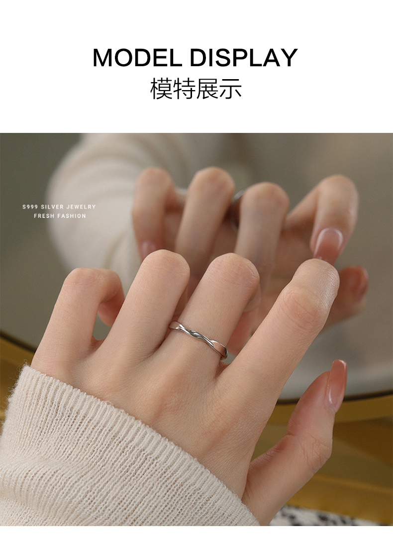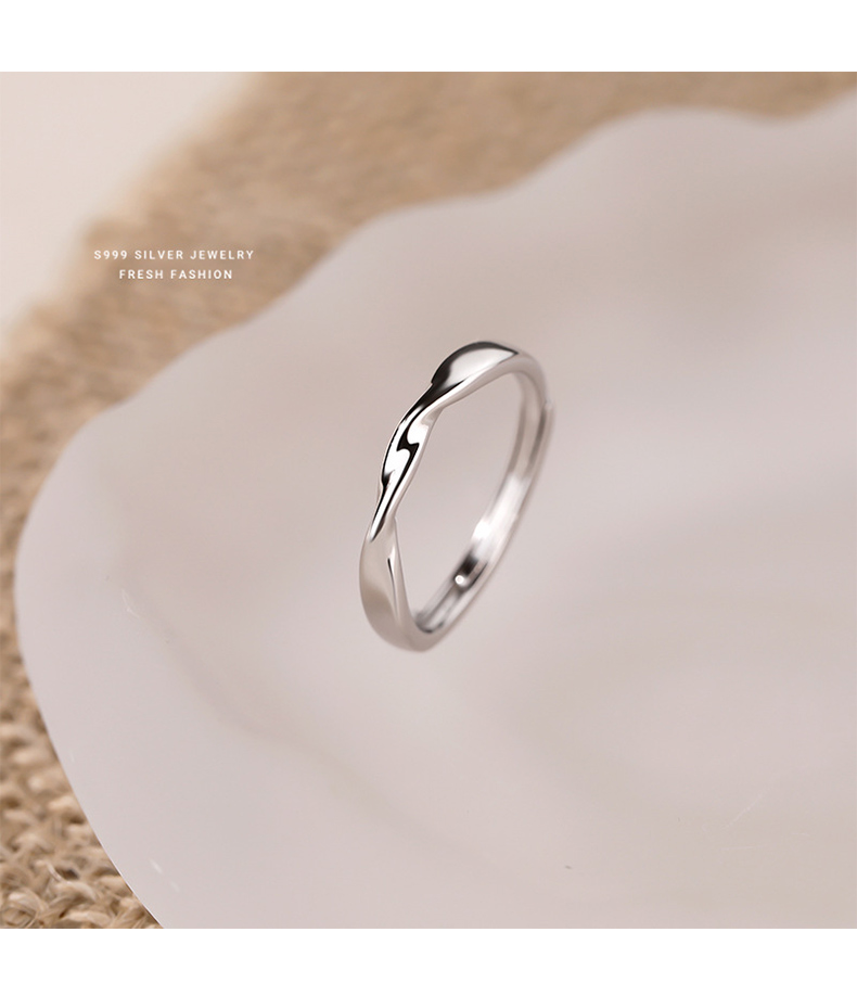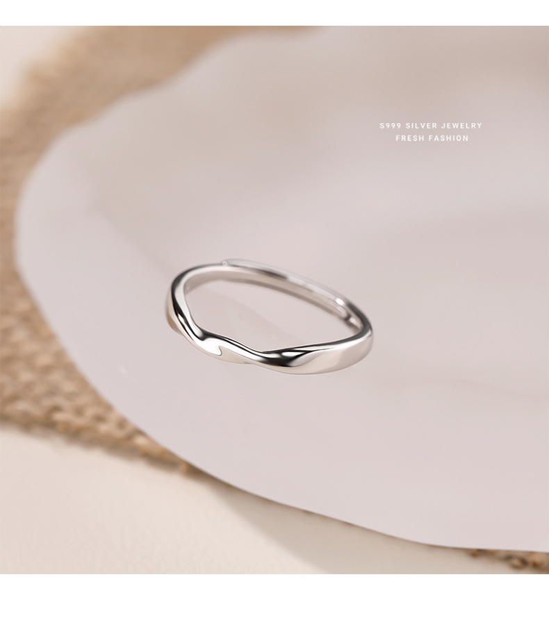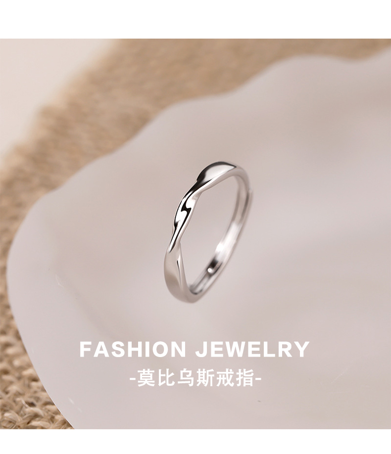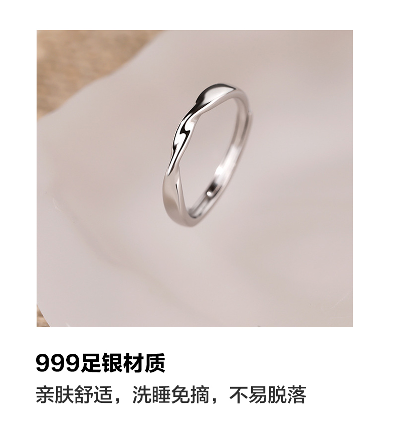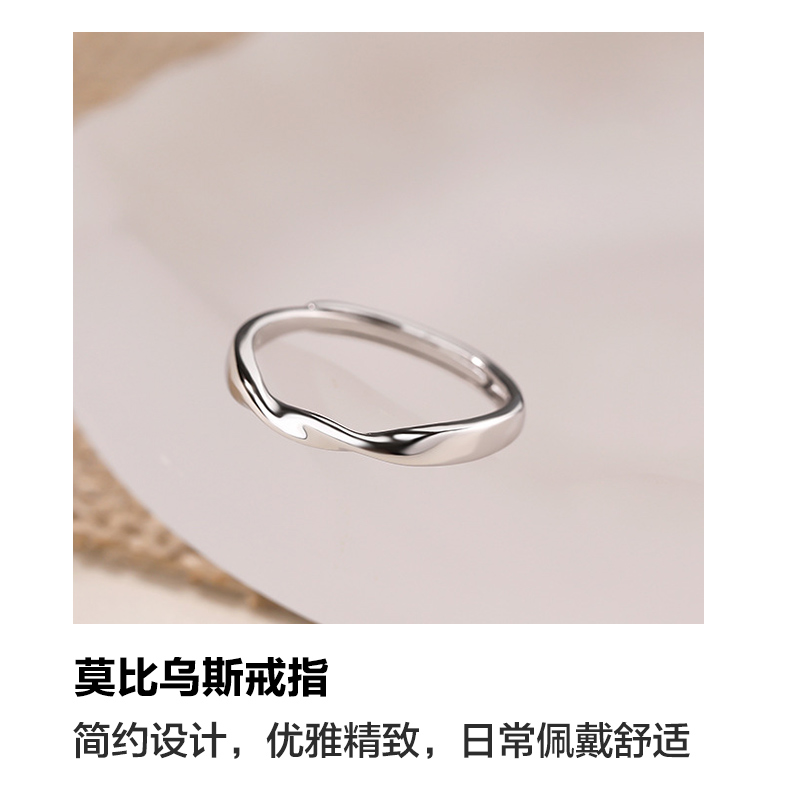 S999足银莫比乌斯戒指女素圈简约开口可调节指环男纯银食指戒尾戒
