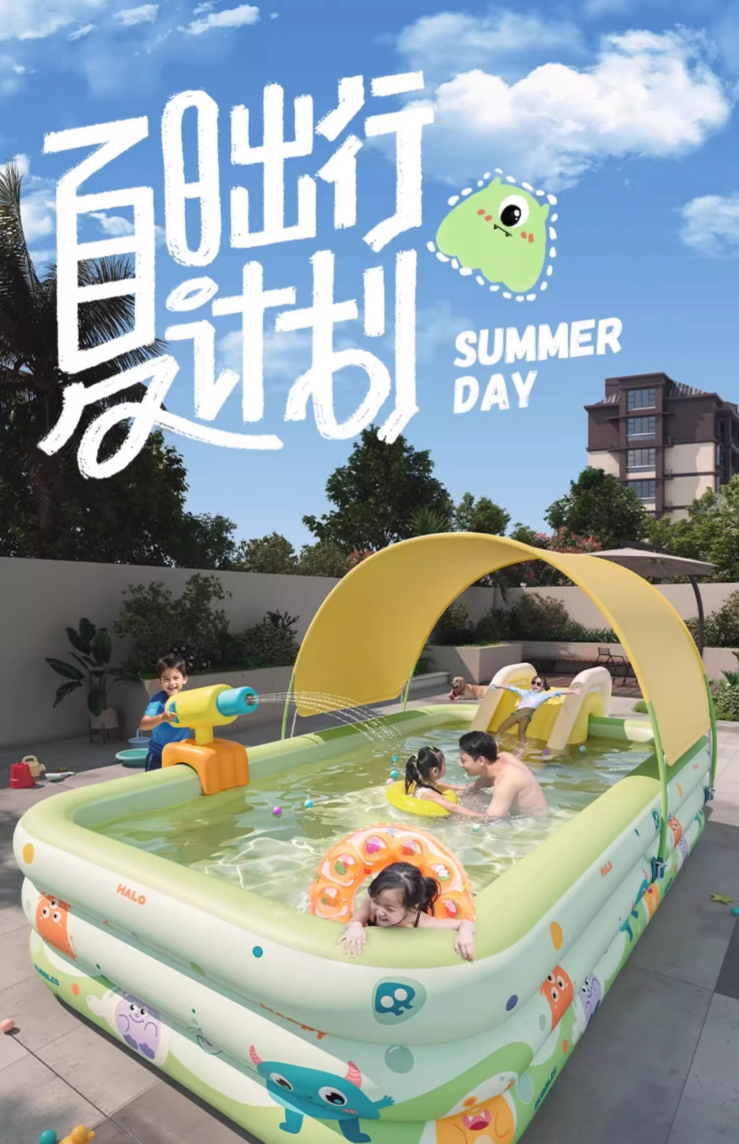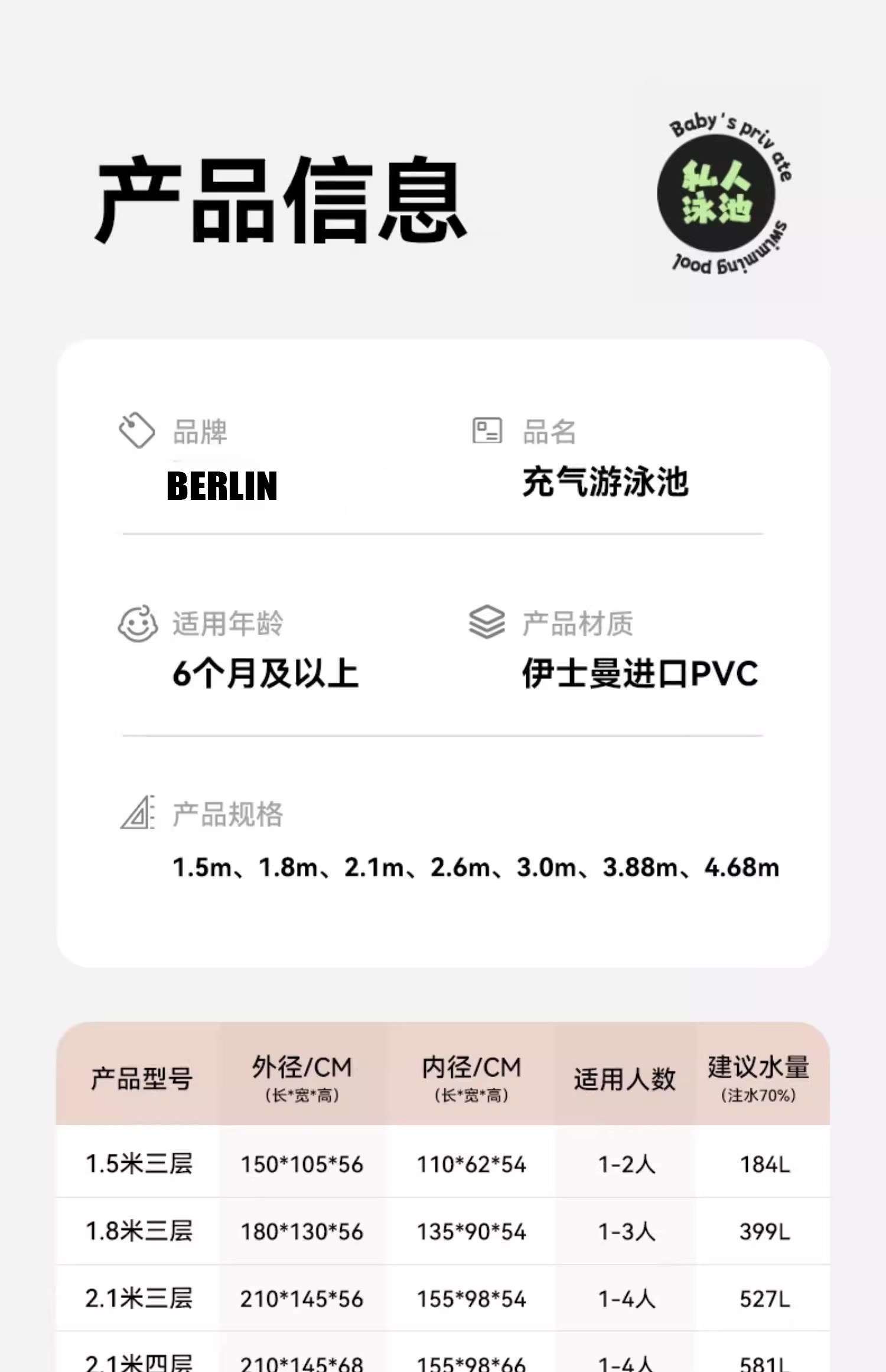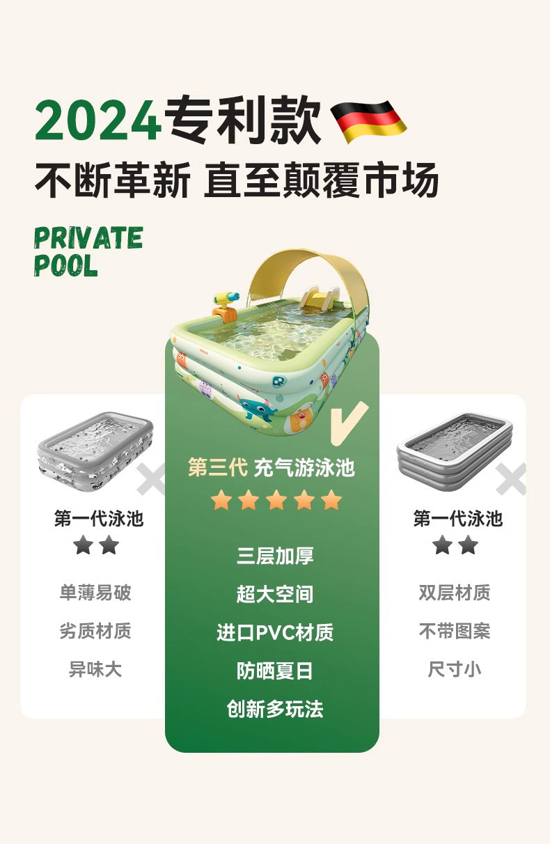 德国儿童充气加厚游泳池宝宝婴儿家庭大人折叠超大号充气水池