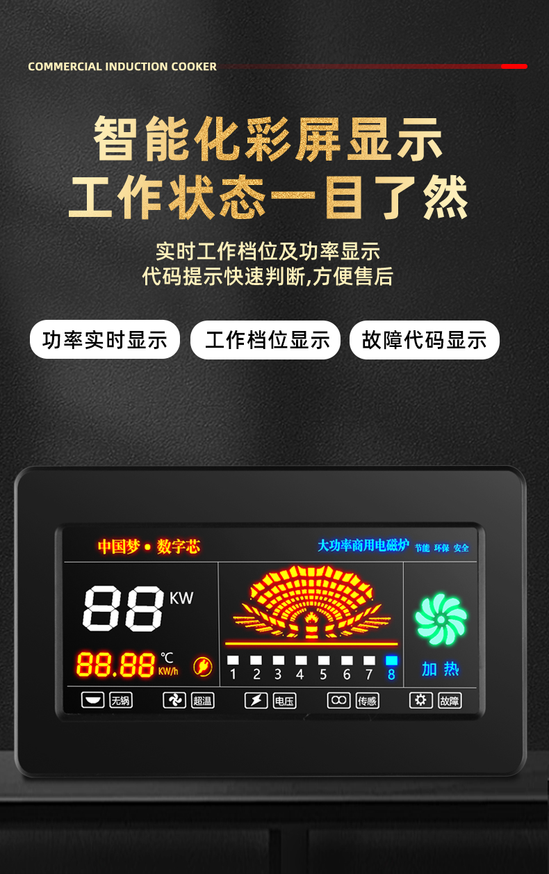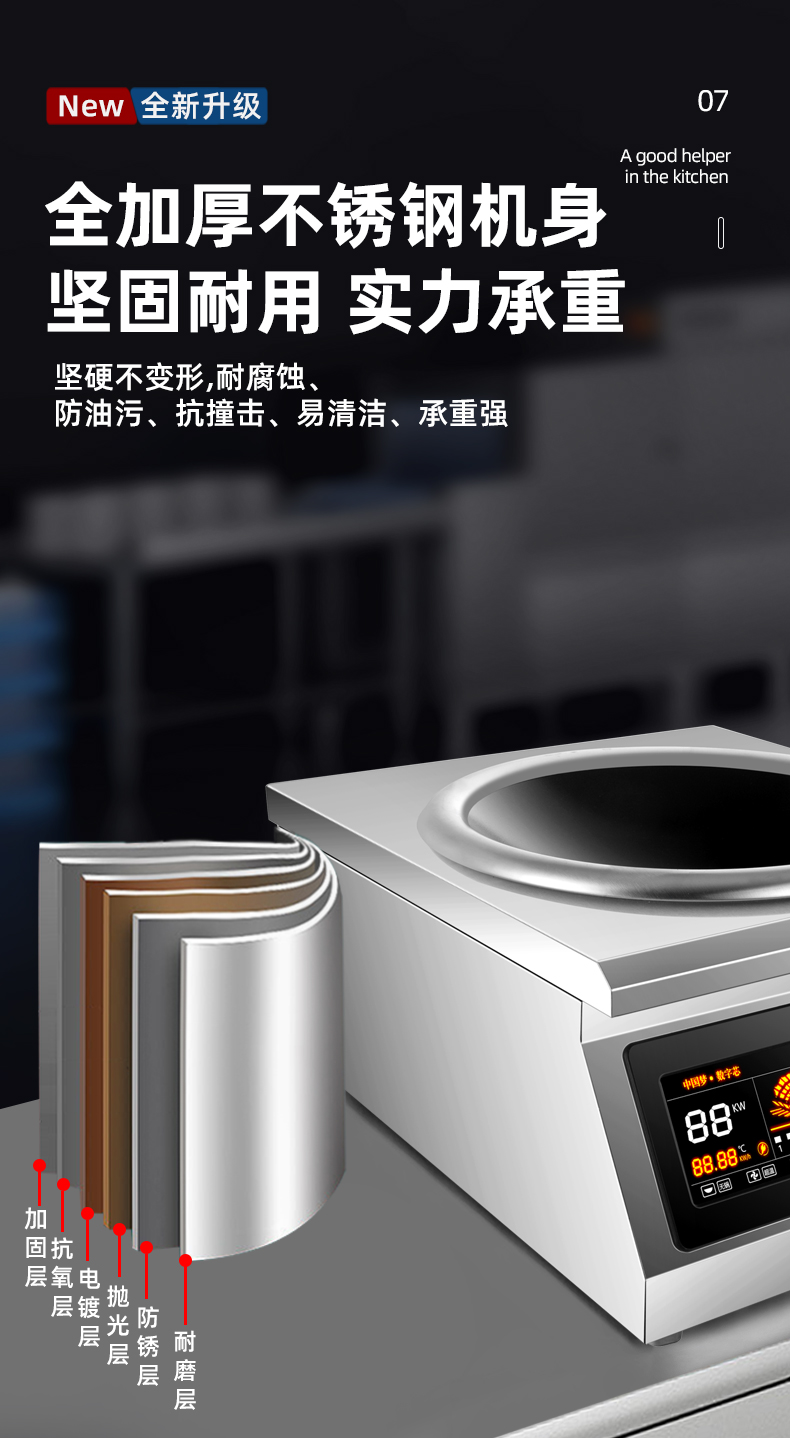 Guangyue Mingchu Commercial High-Power Induction Cooker 8000W Restaurant Canteen 15Kw Concave Surface High-Heat Stir-Fry Induction Cooker