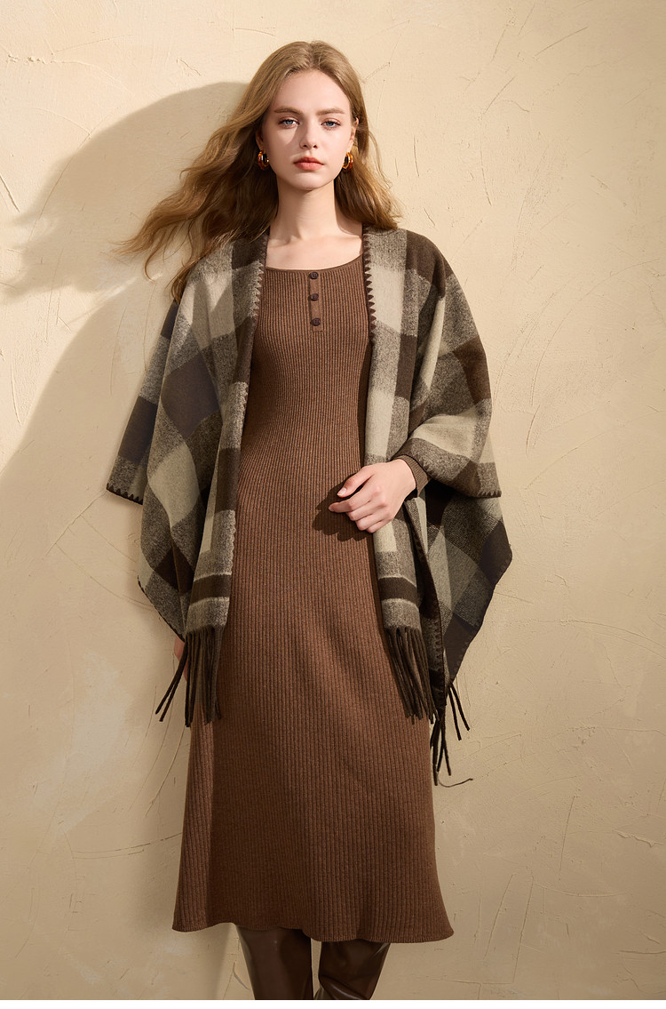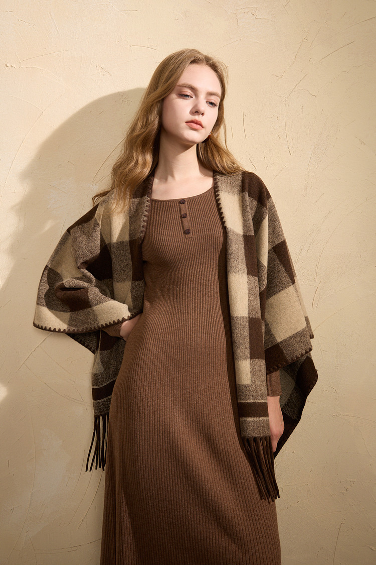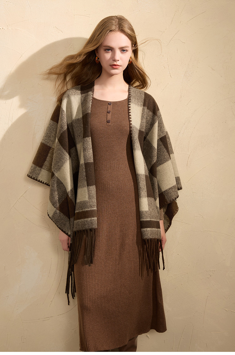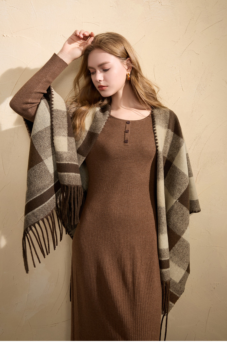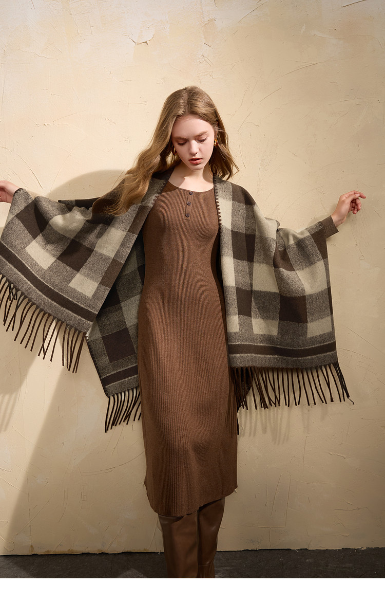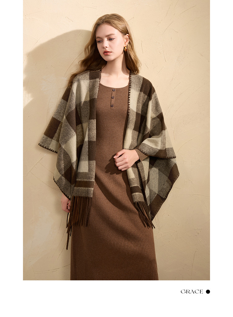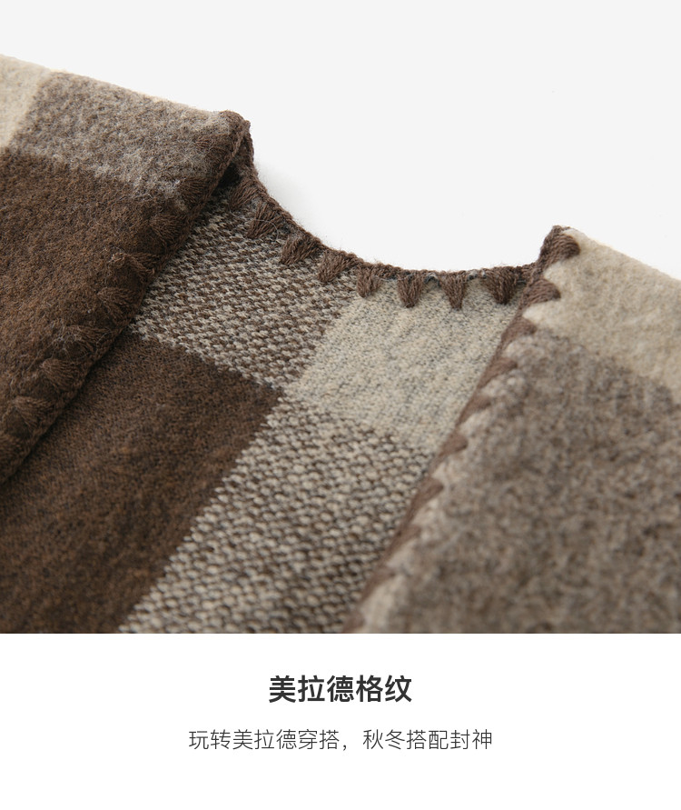 Sancai 2025 new maillard plaid contrasting color shawl retro tassel long widened scarf travel cloak