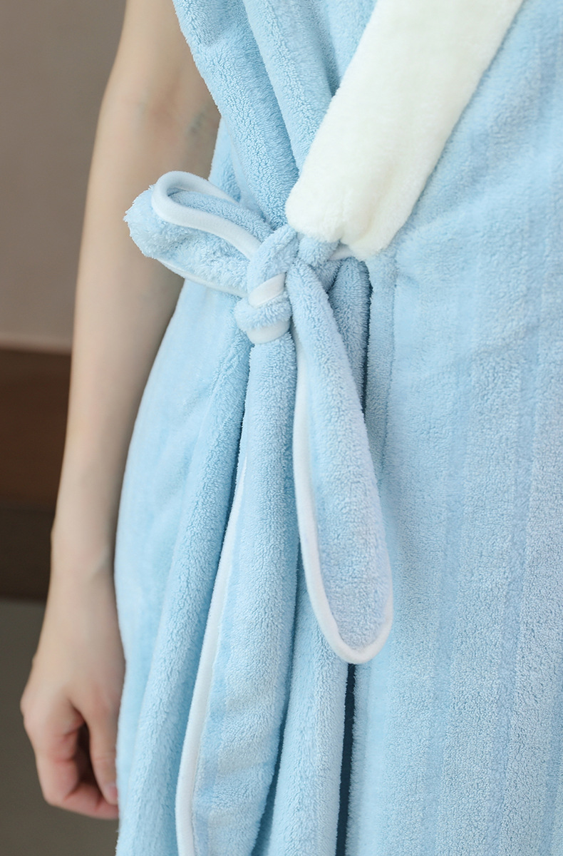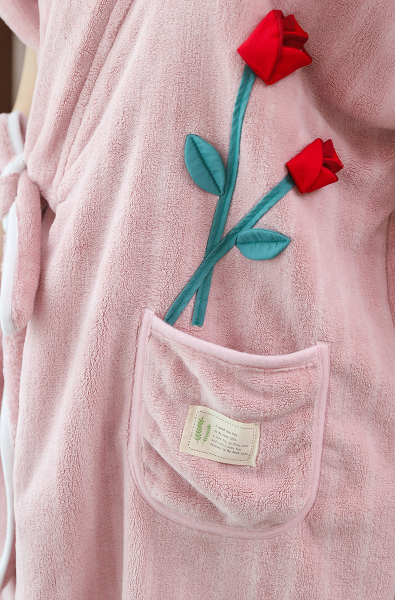 新款日本进口珊瑚绒浴袍刺绣女睡袍浴裙加厚柔软吸水可裹家居浴袍