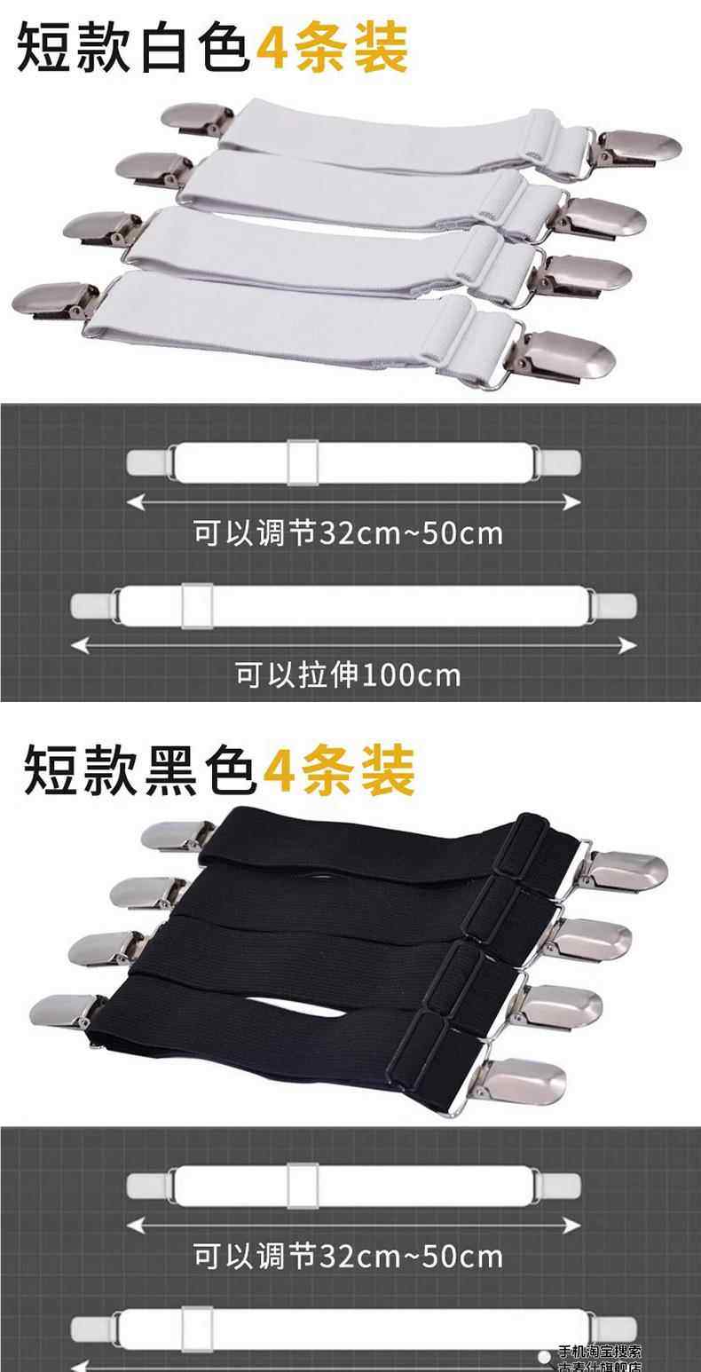 颜色分类 固定夹短款-白色【4条装】,固定夹短款-黑色【4条装】,固定夹长款-白色【4条装】,固定夹长款-黑色【4条装】