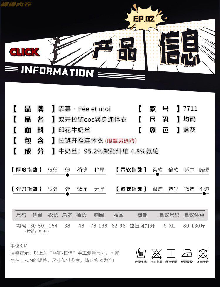 Color Classification Women's Blue Gray [Zipper Crotch Jumpsuit] Recommended 40-65kg,Female ◆ Blue Gray [Zipper Crotch Jumpsuit] 7650 Black Eye Mask