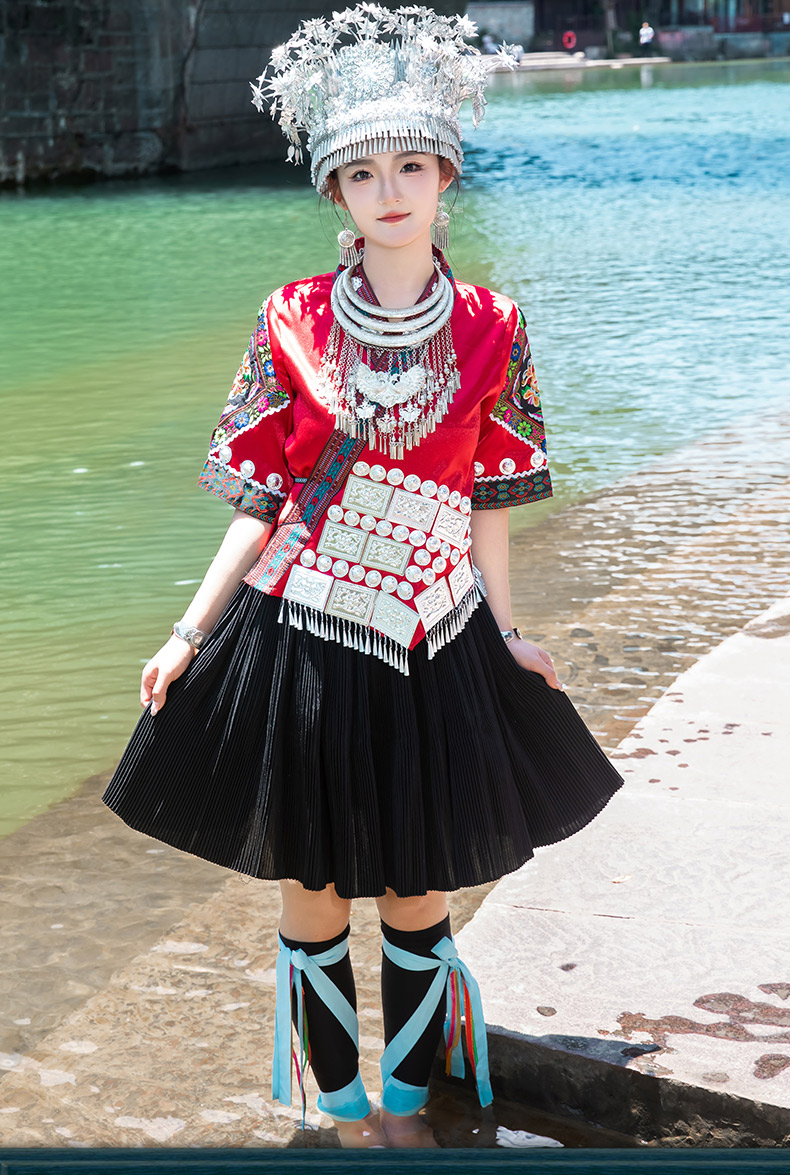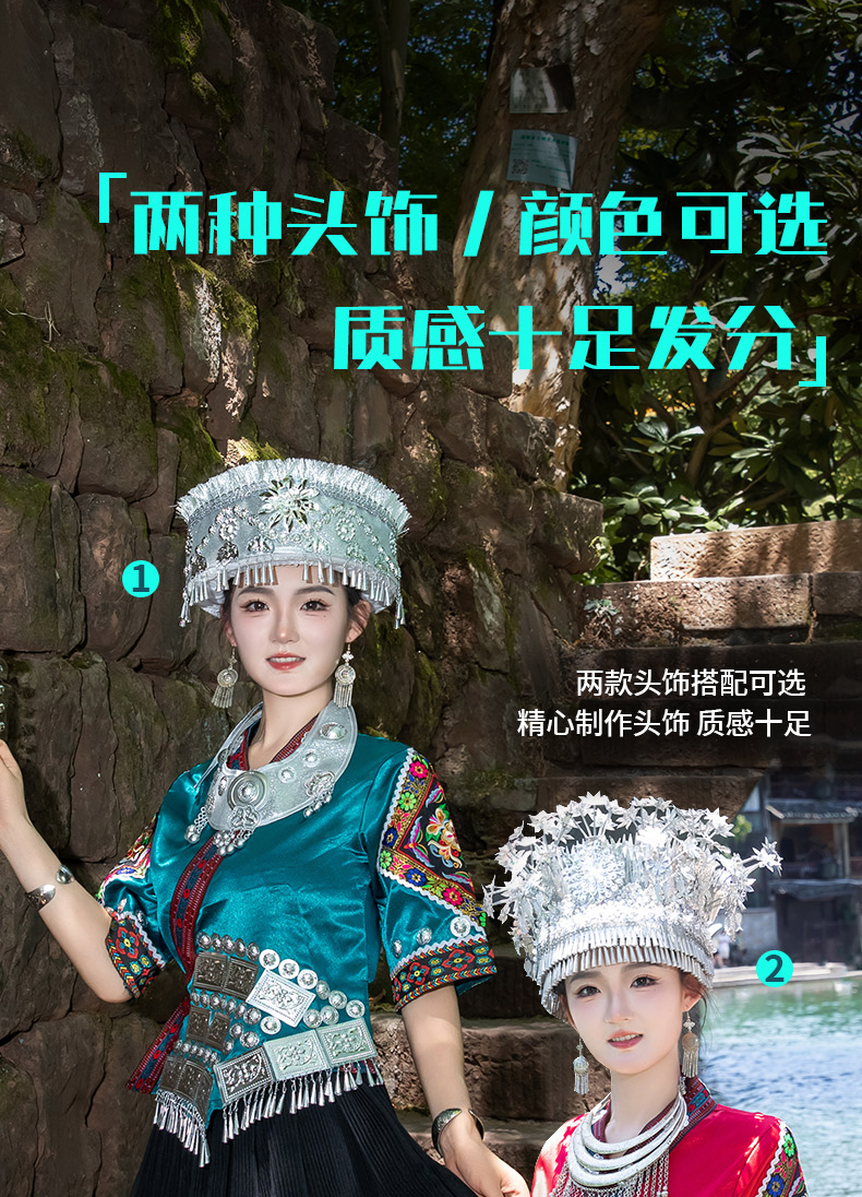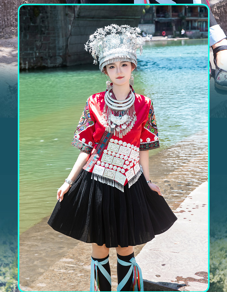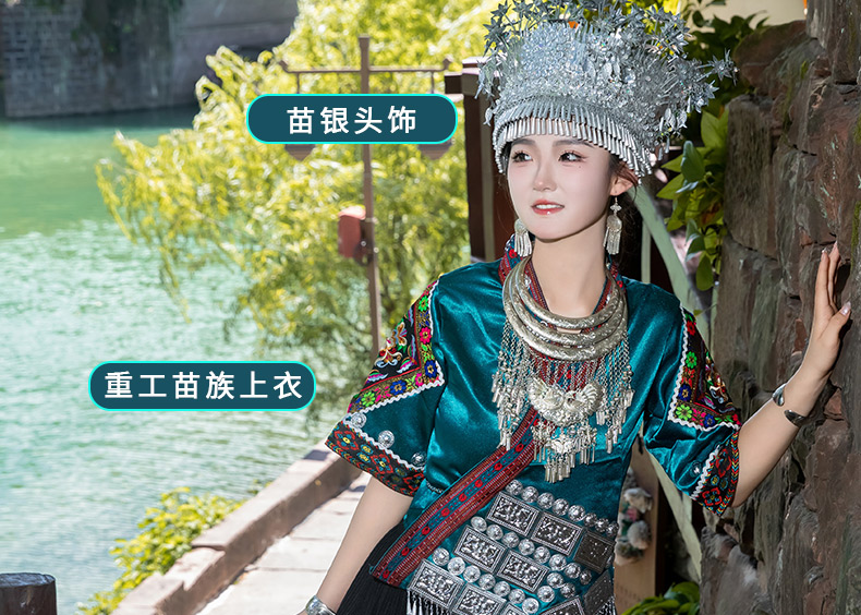 苗族服装女少数民族传统服饰成人贵州苗寨旅拍写真舞蹈演出服套装