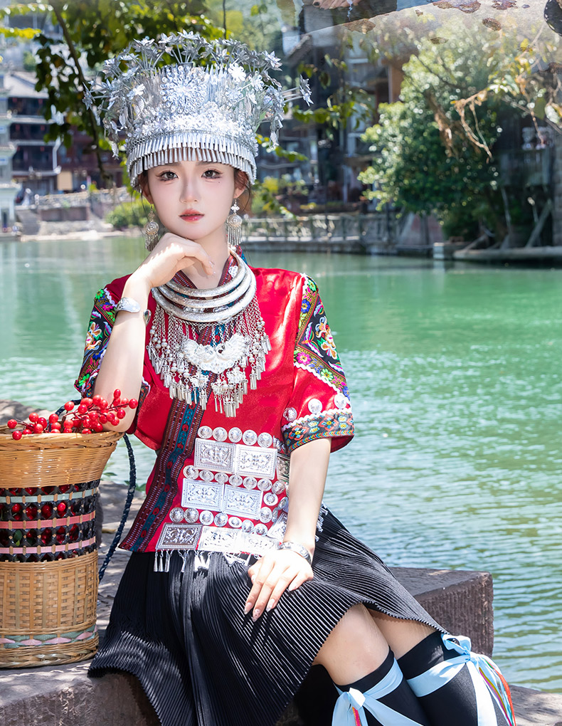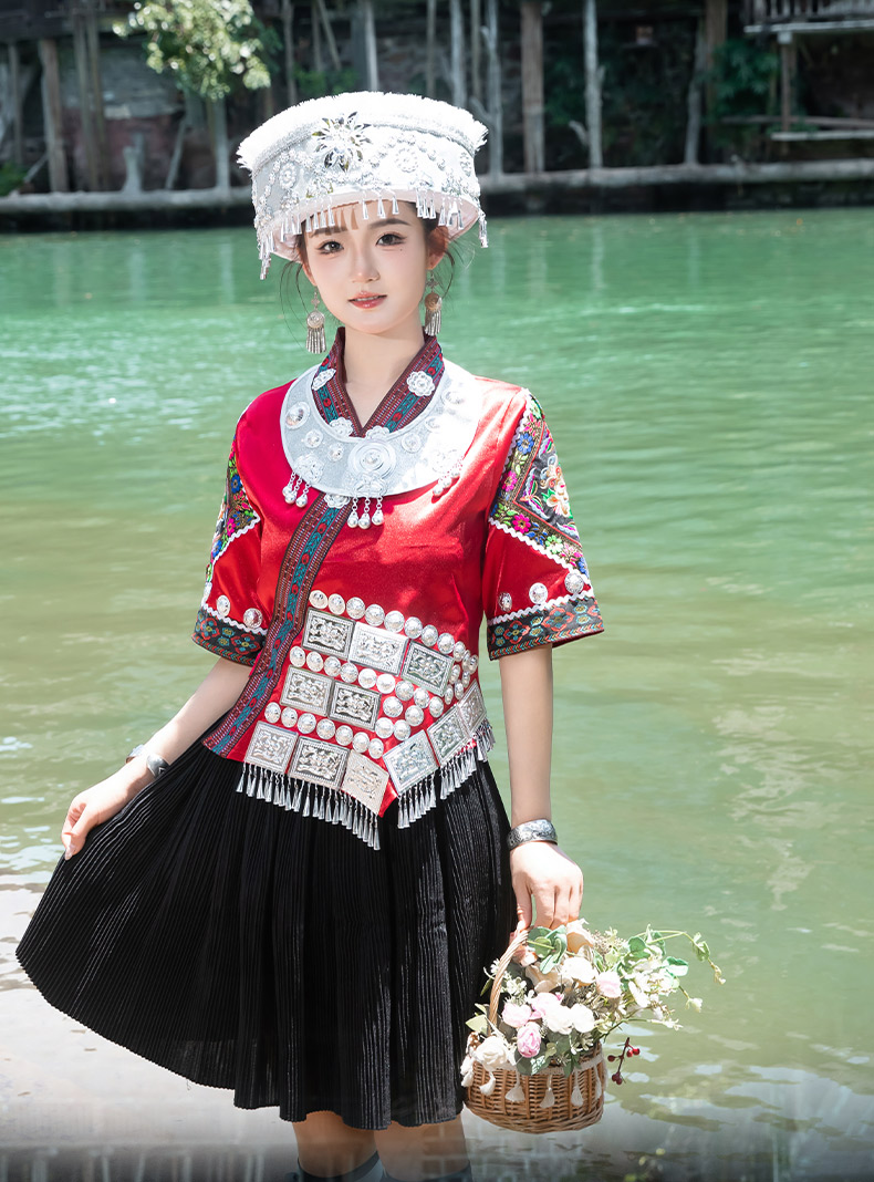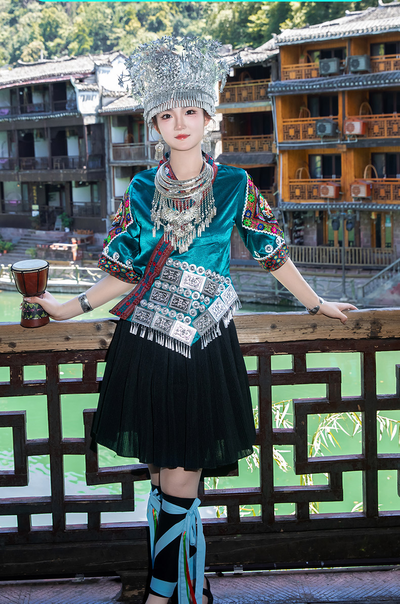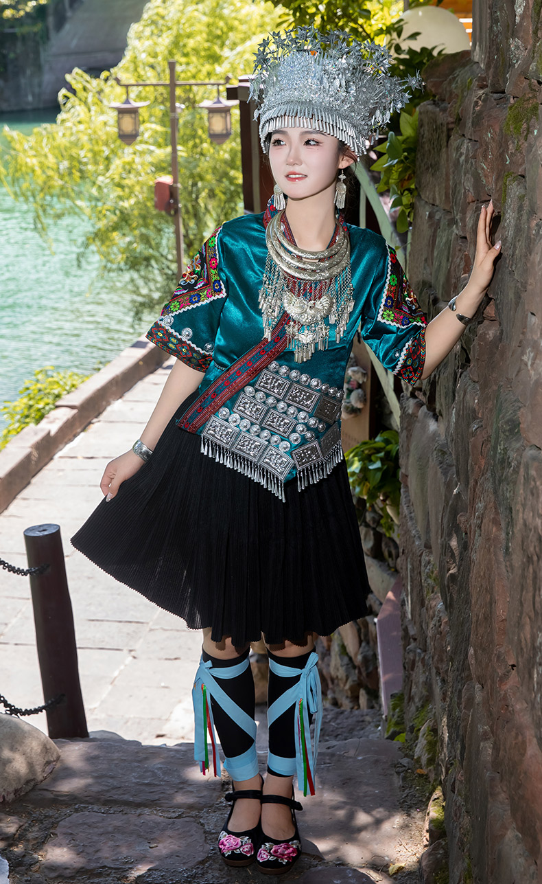 苗族服装女少数民族传统服饰成人贵州苗寨旅拍写真舞蹈演出服套装