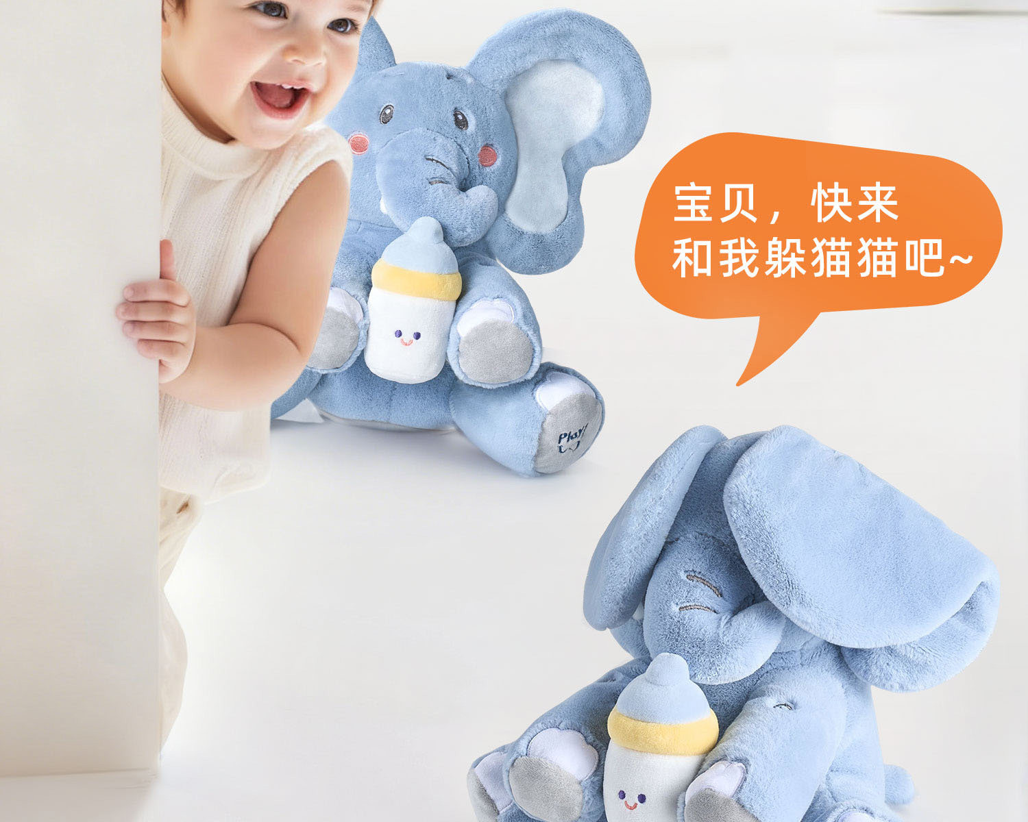 Hide-And-Seek Elephant Can Learn to Speak, Infant Toy for 0-1 Year Old, Baby Doll, Children's First Birthday Gift