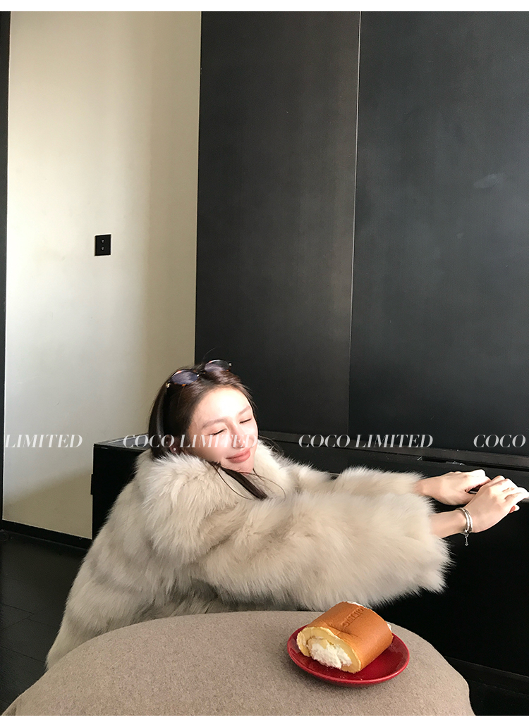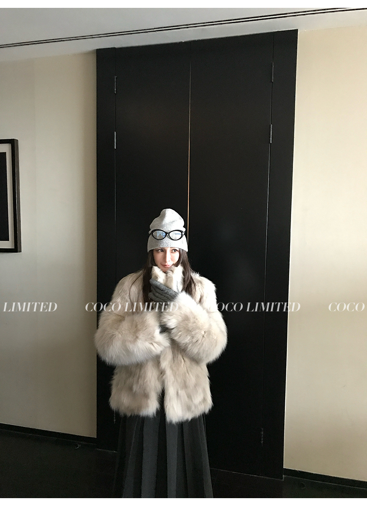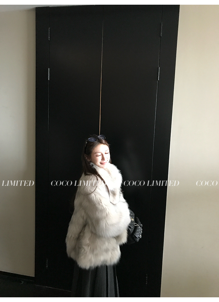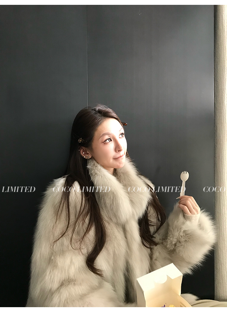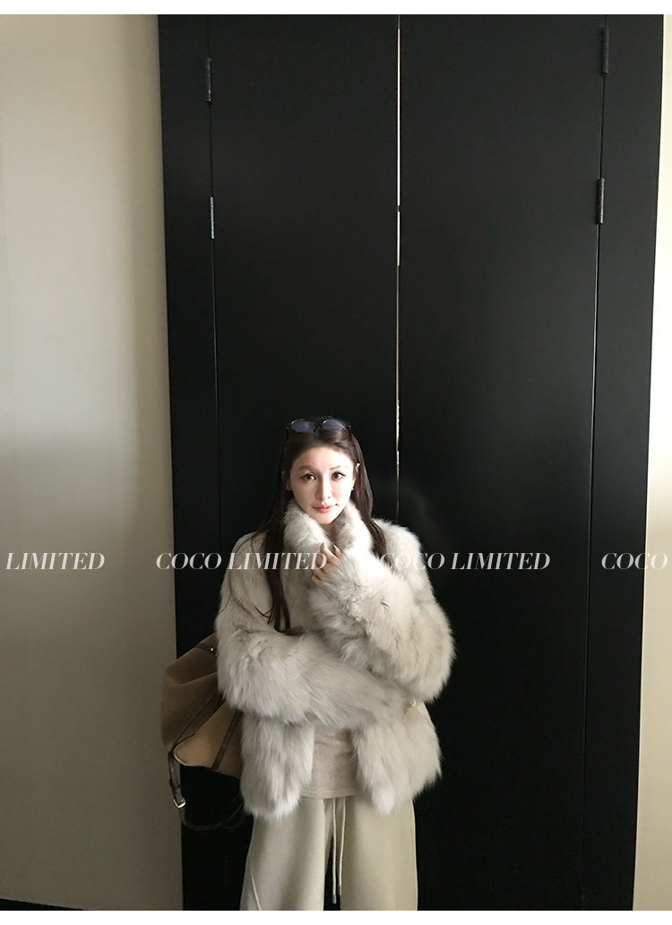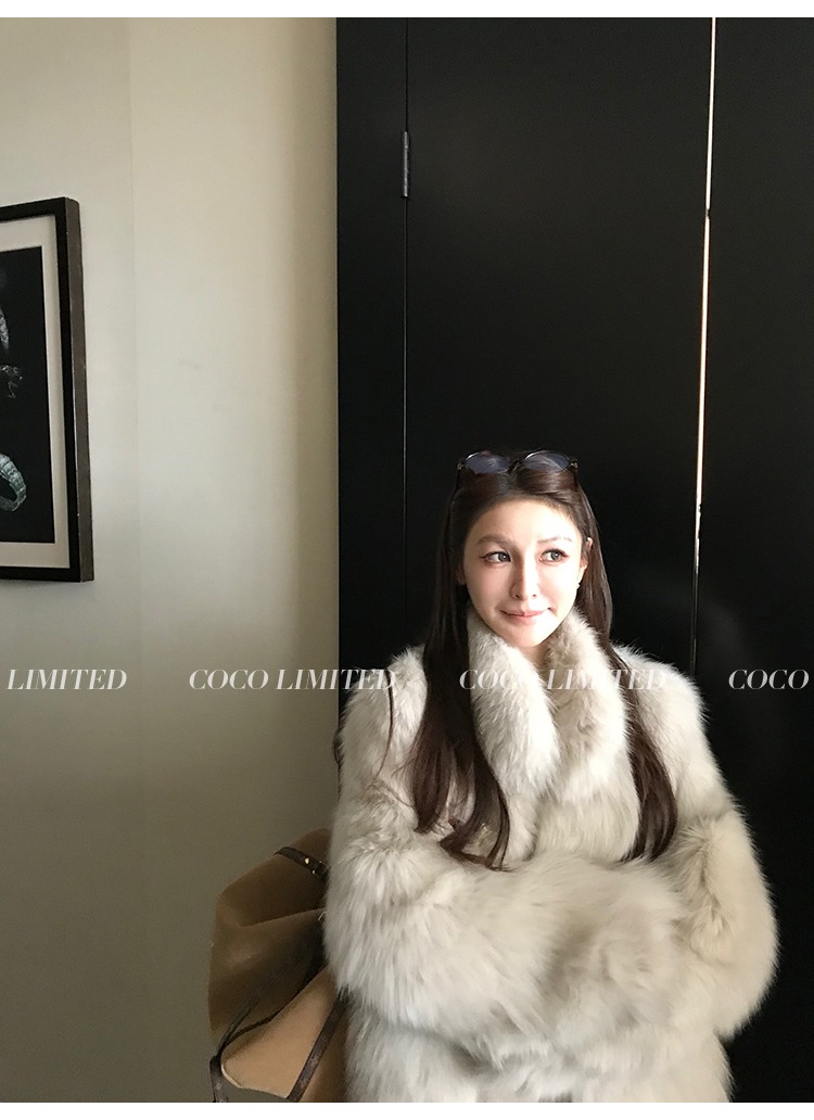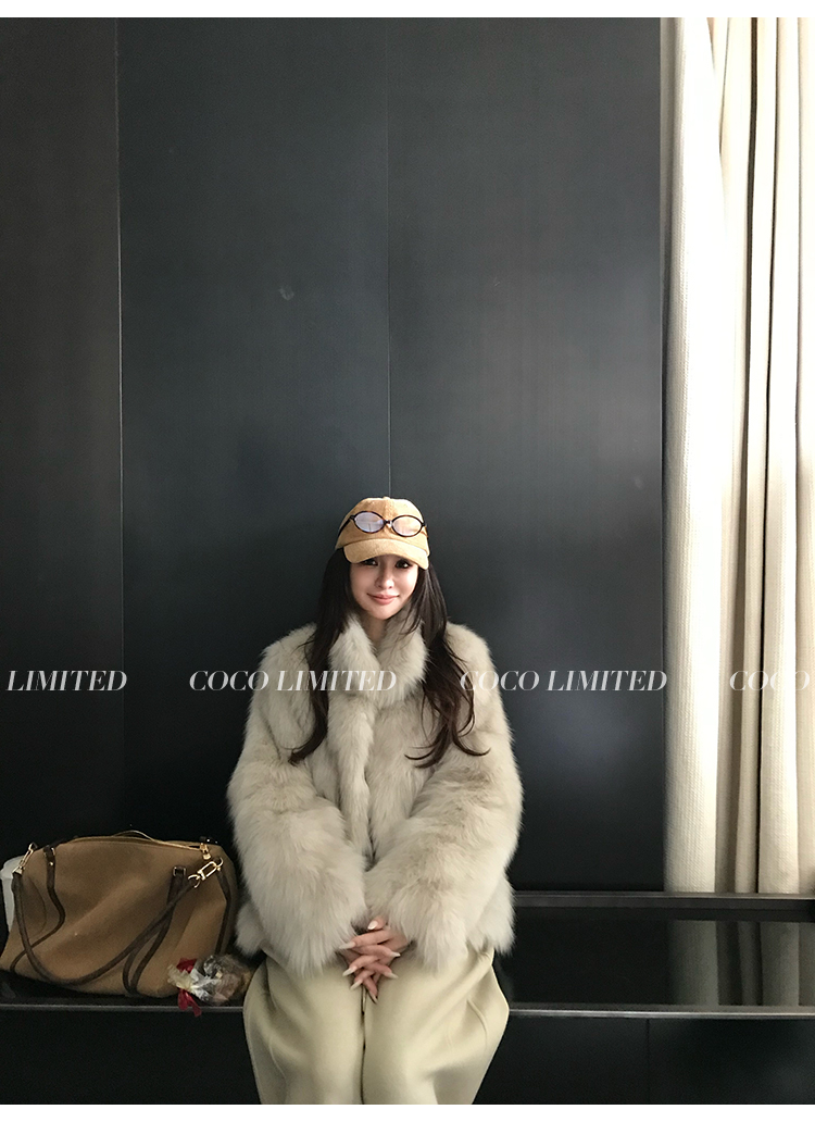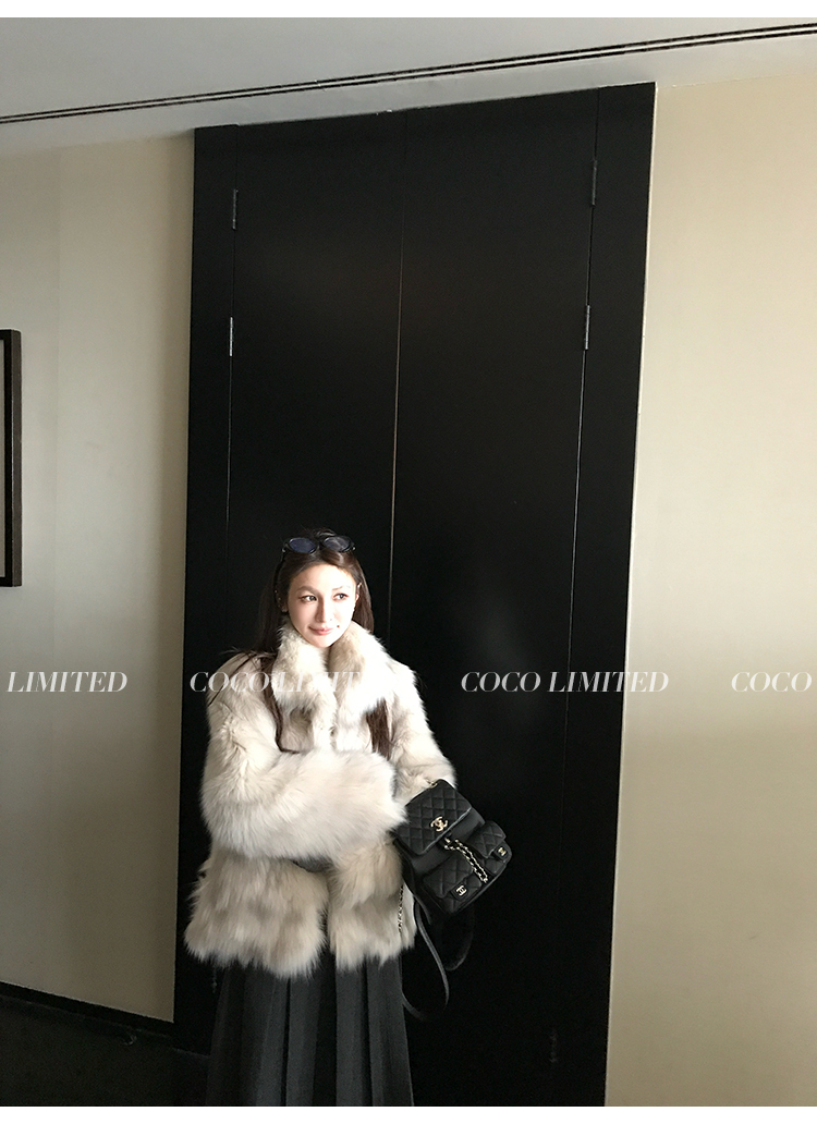 Coco Fur "Minuet" Reversible Stand-Up Collar Finnish Saga Imported Fox Fur Belly Fur Coat