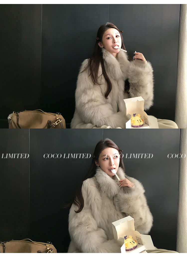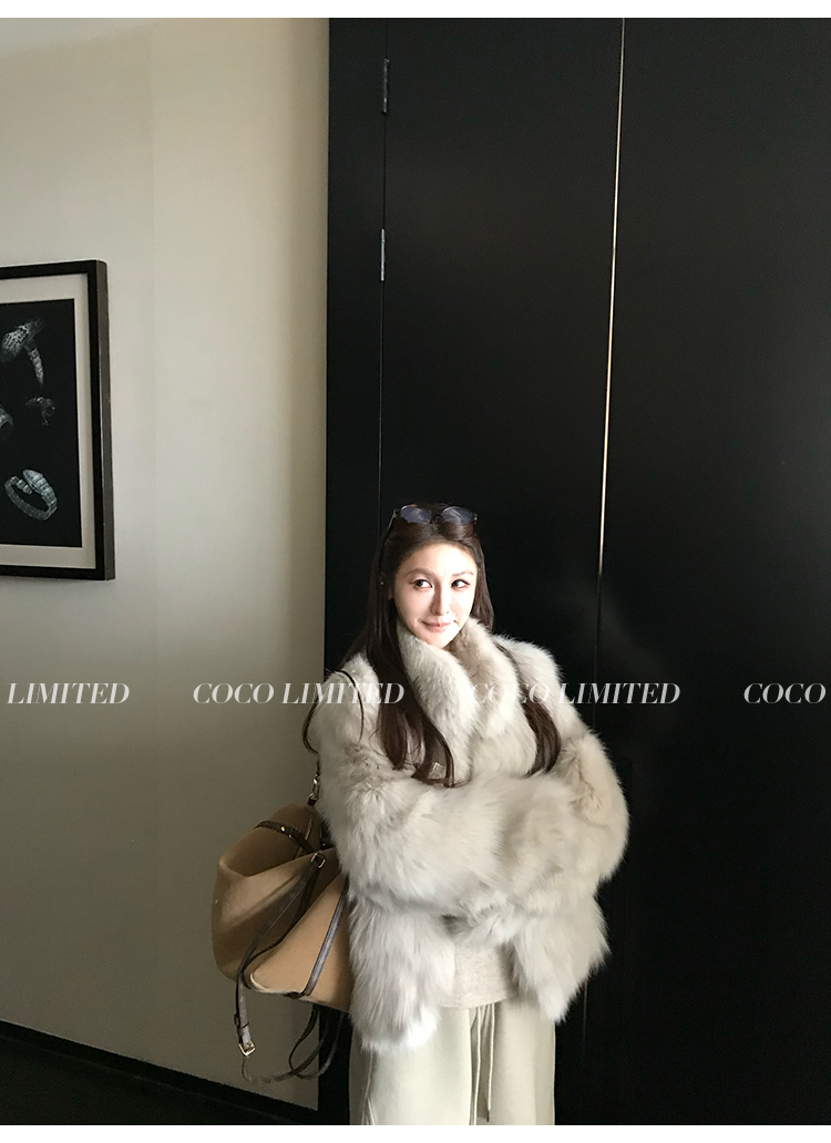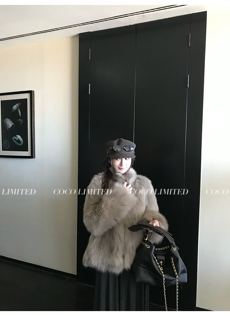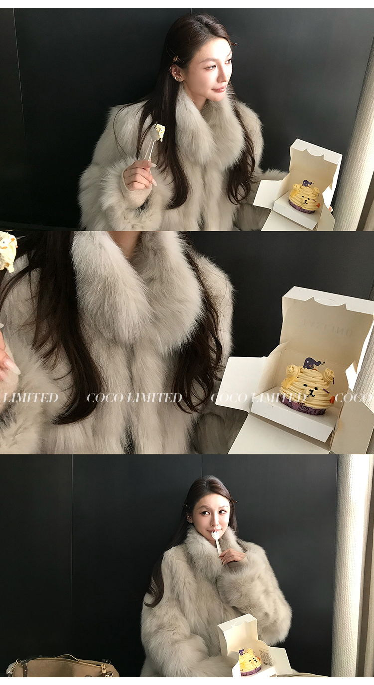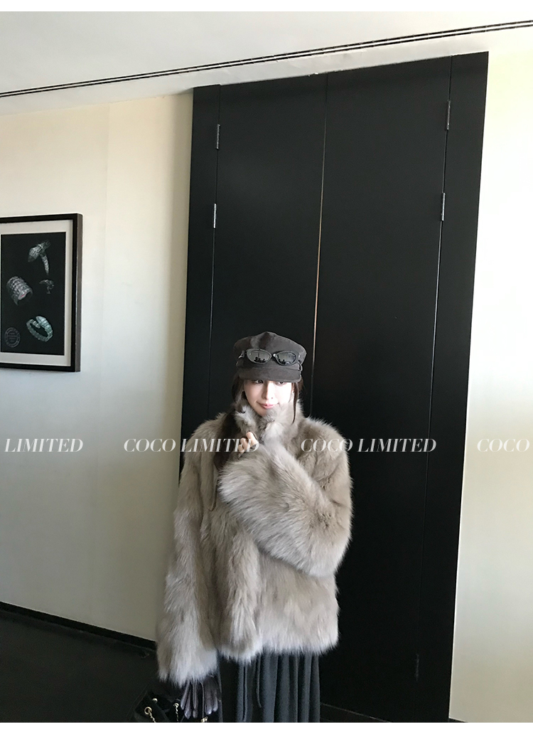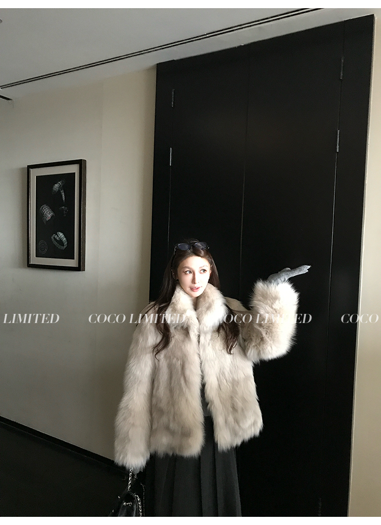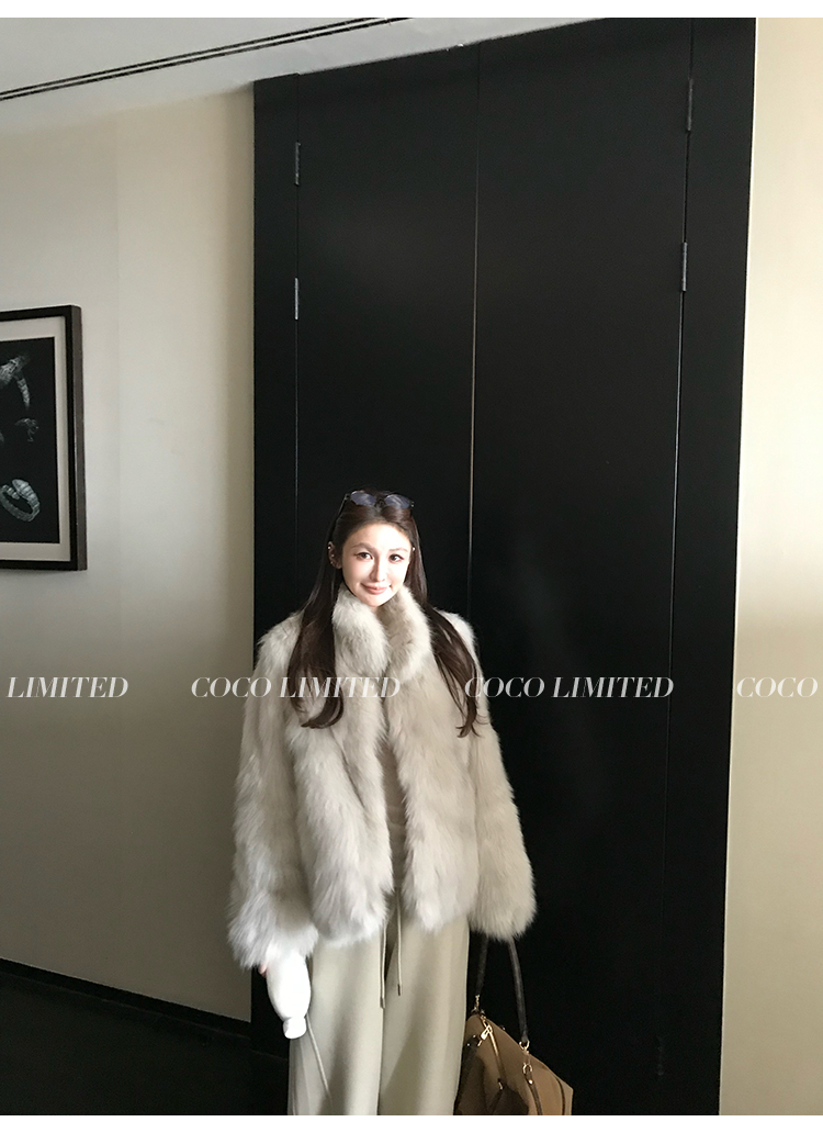 Coco Fur "Minuet" Reversible Stand-Up Collar Finnish Saga Imported Fox Fur Belly Fur Coat
