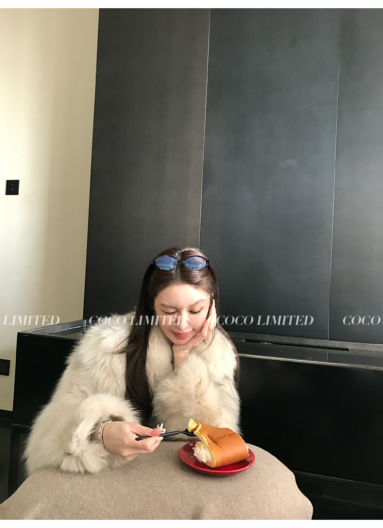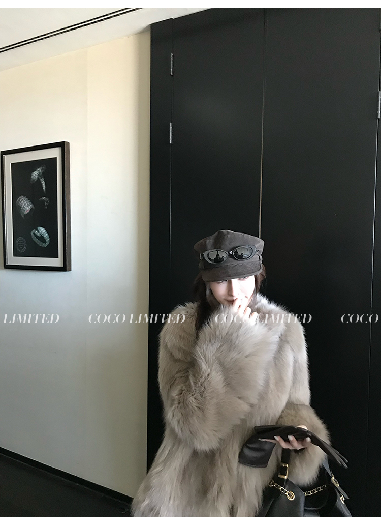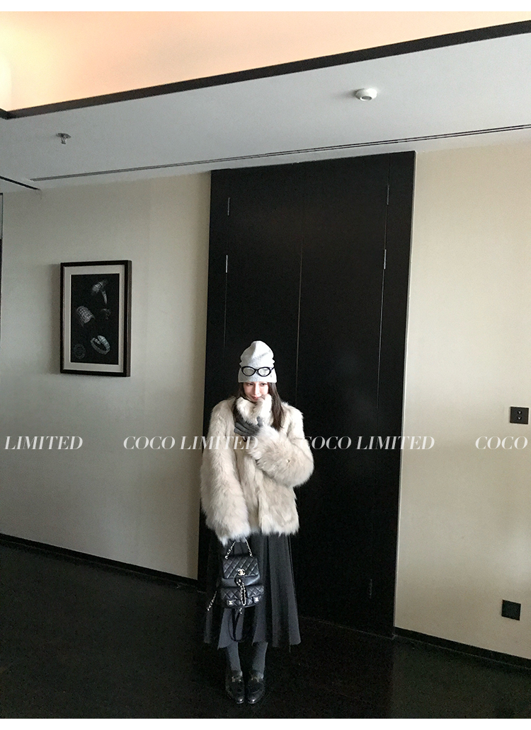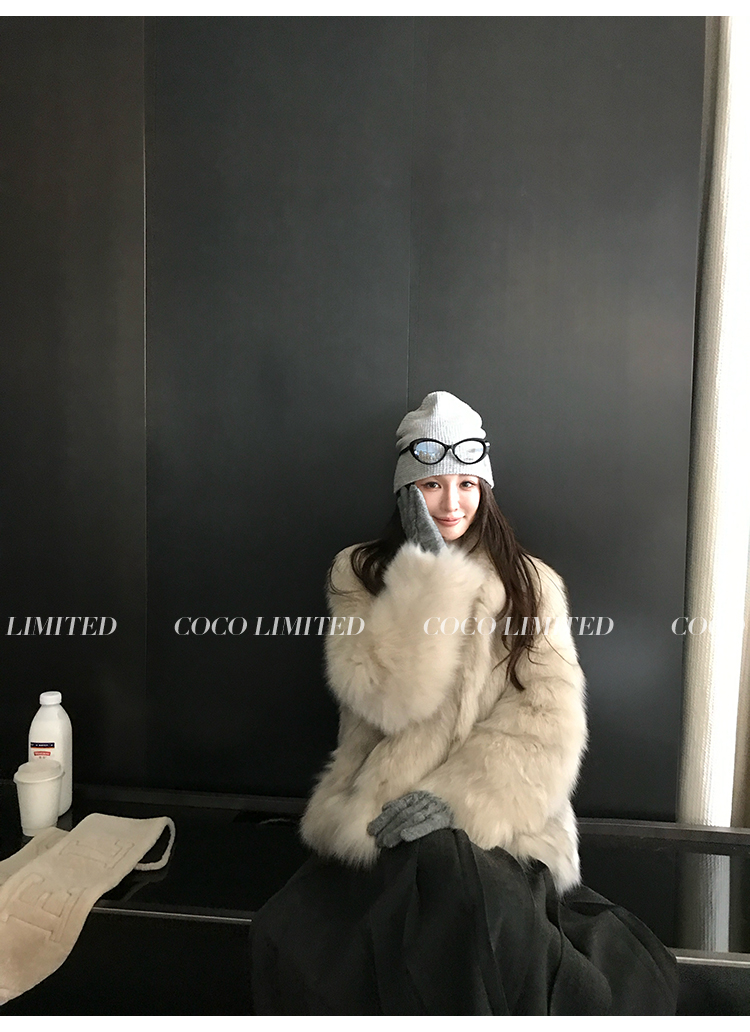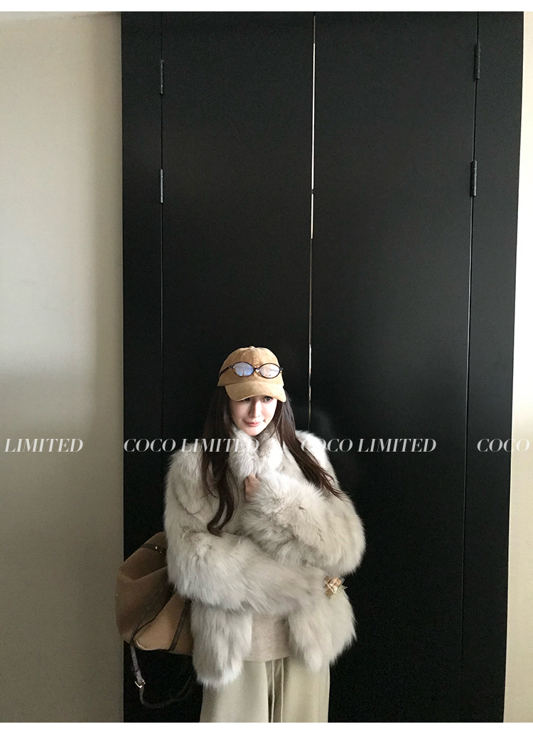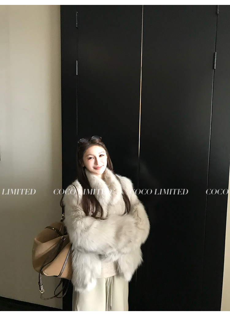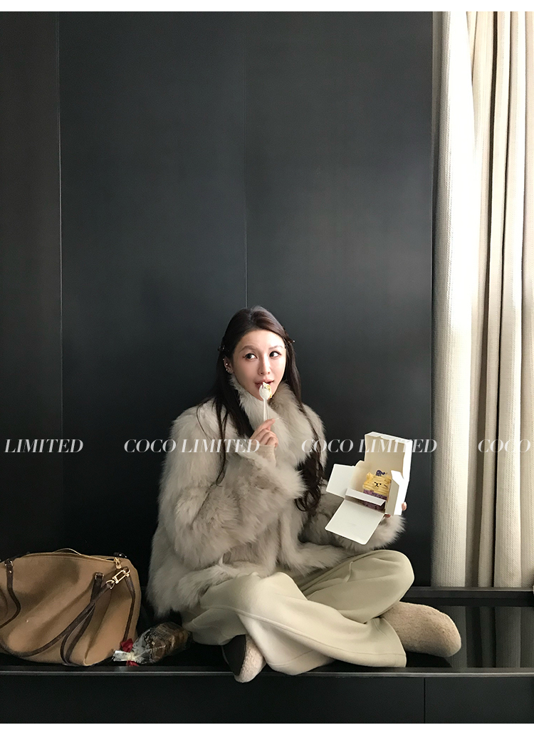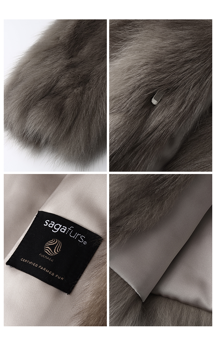 Coco Fur "Minuet" Reversible Stand-Up Collar Finnish Saga Imported Fox Fur Belly Fur Coat