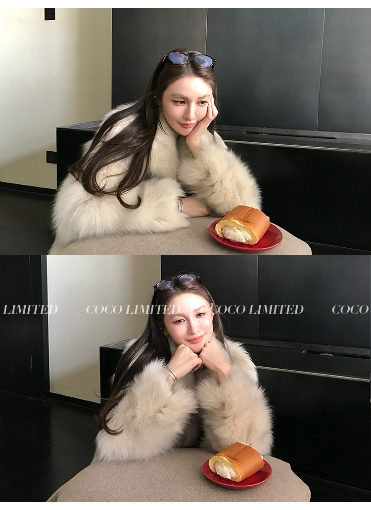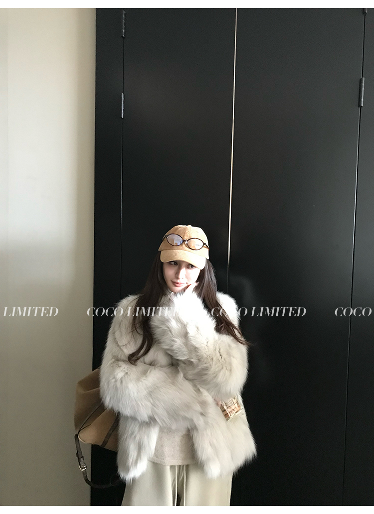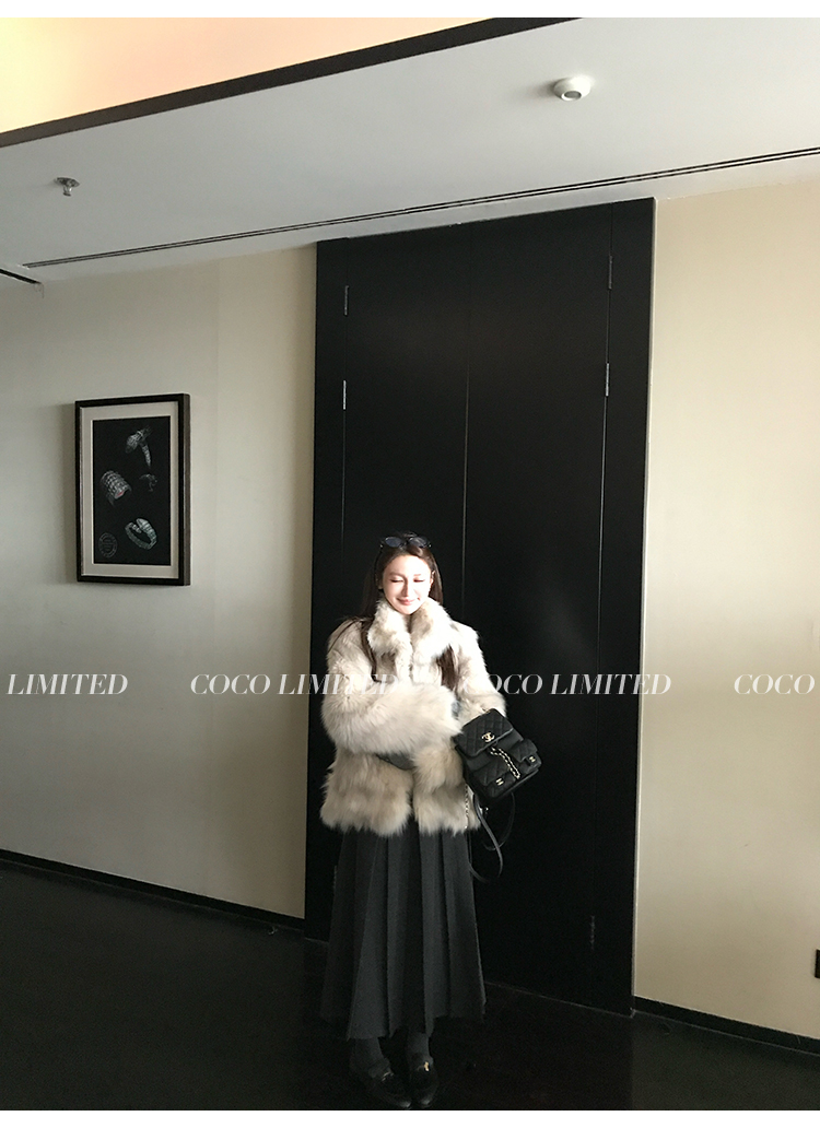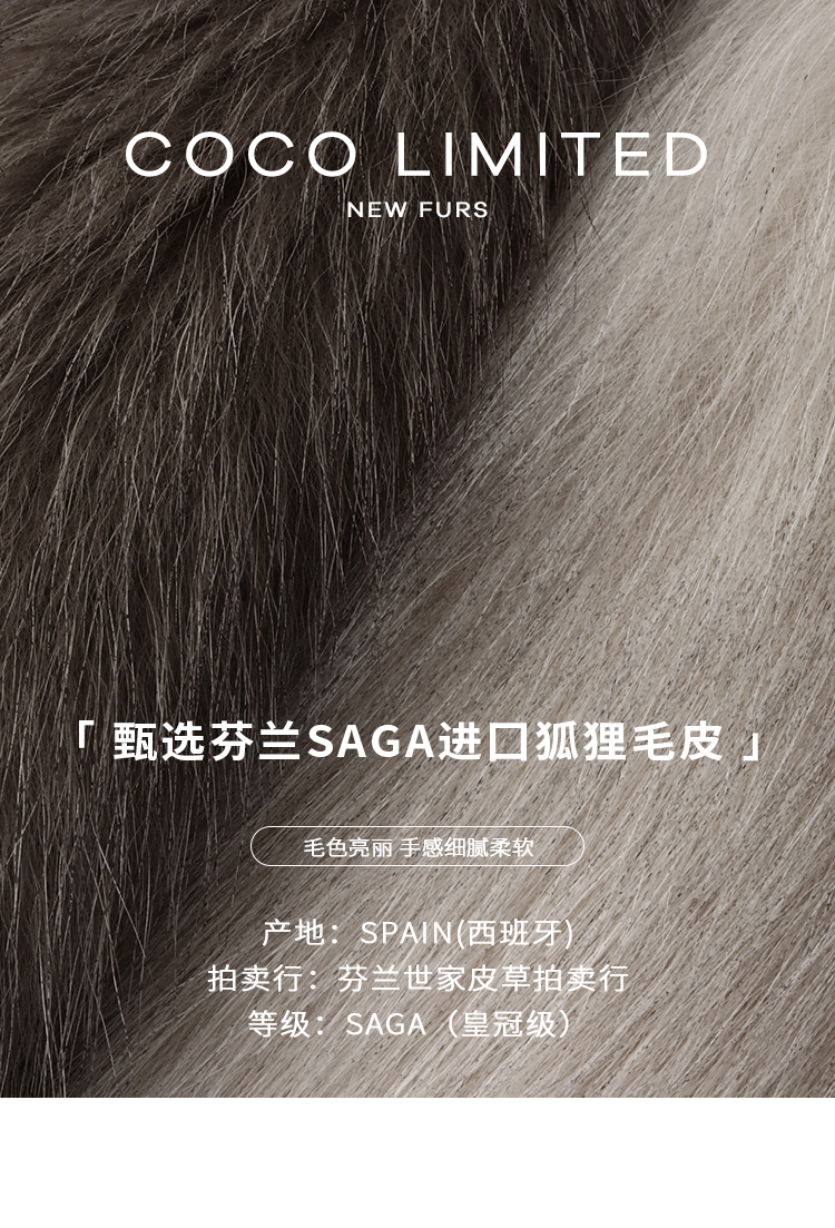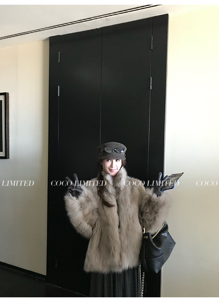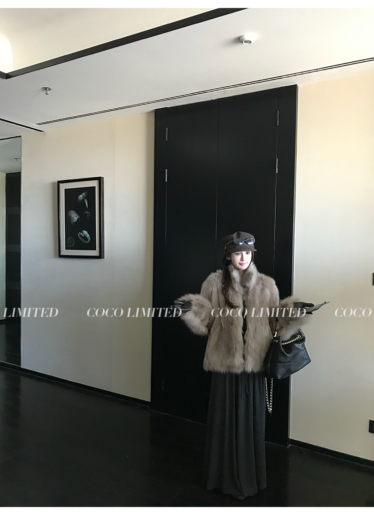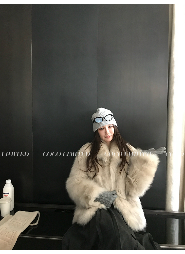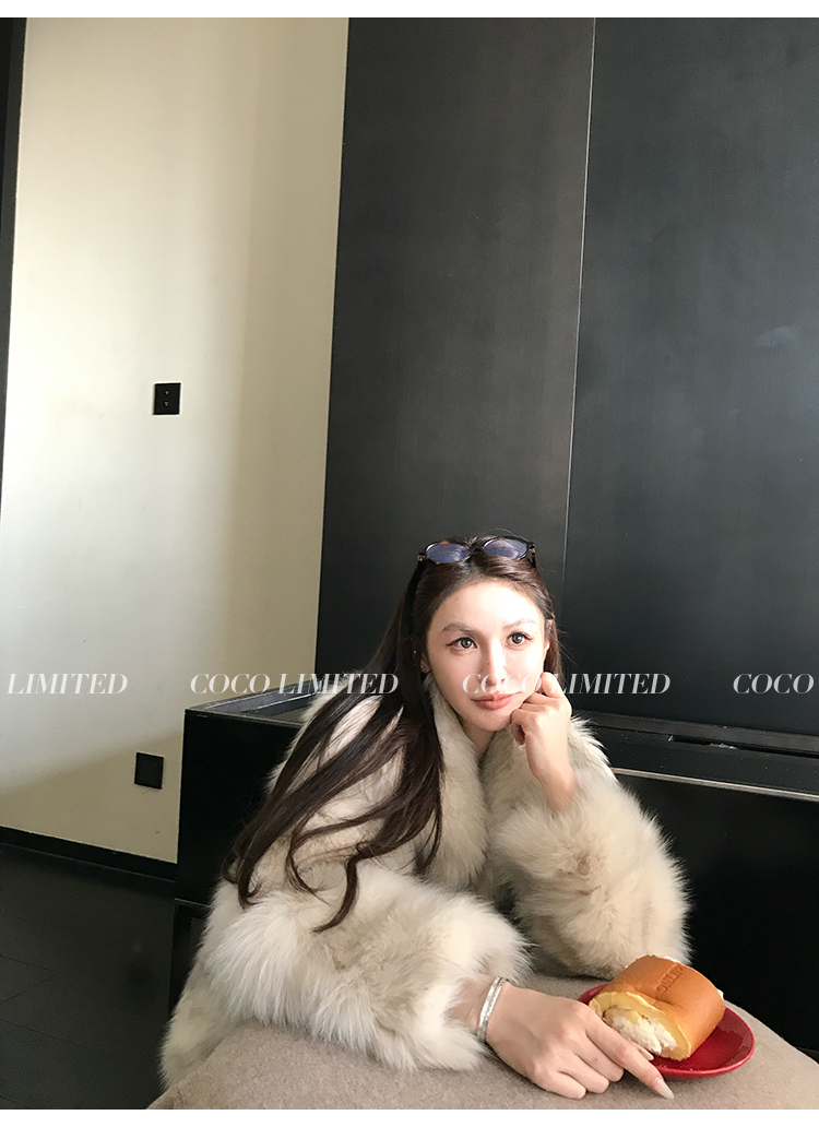 Coco Fur "Minuet" Reversible Stand-Up Collar Finnish Saga Imported Fox Fur Belly Fur Coat